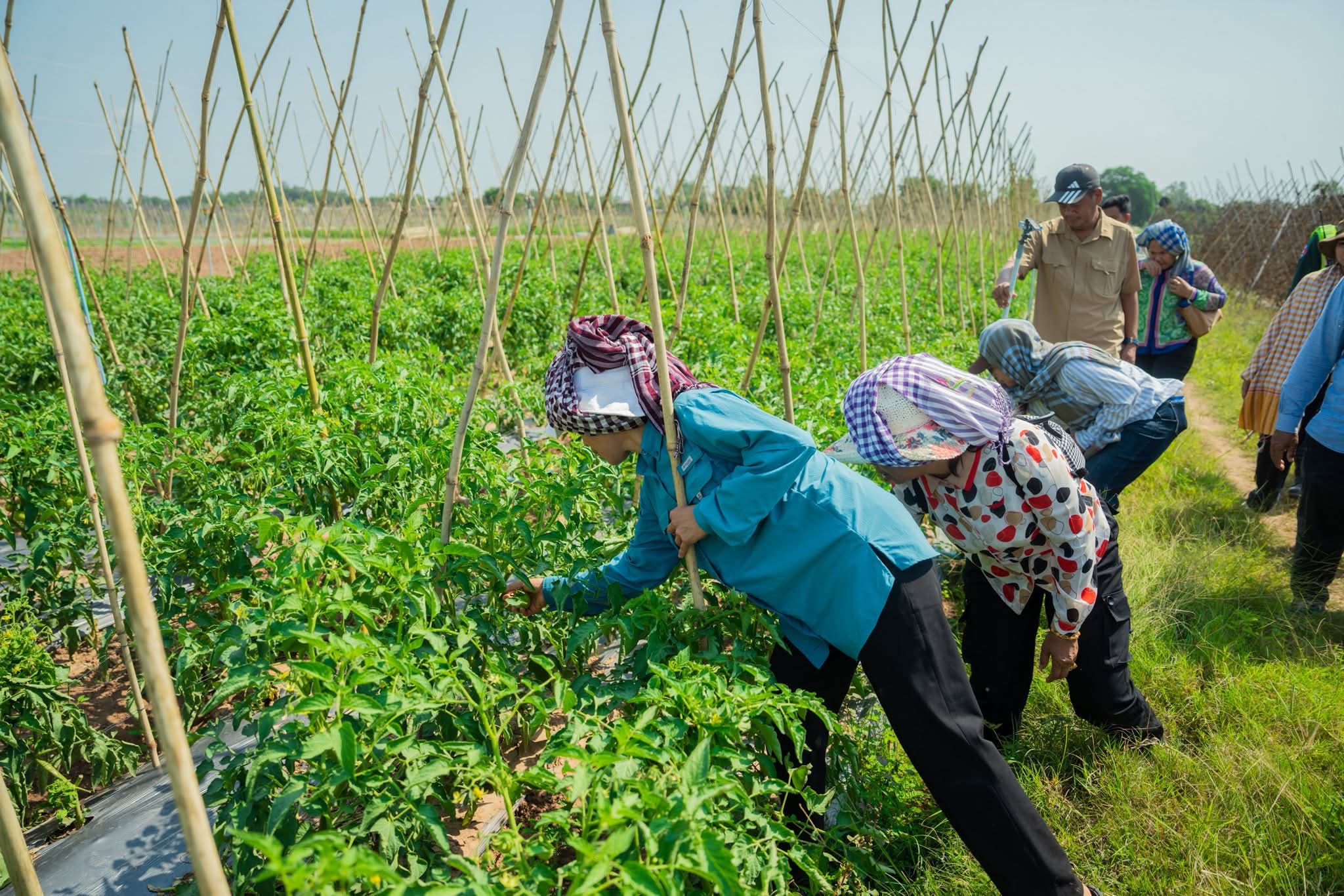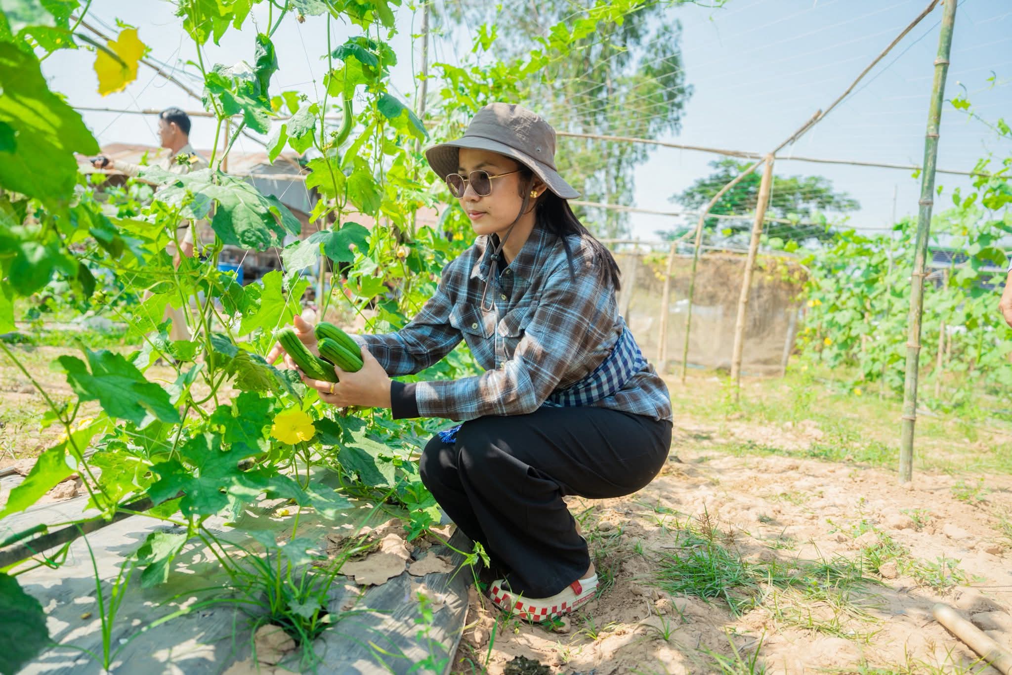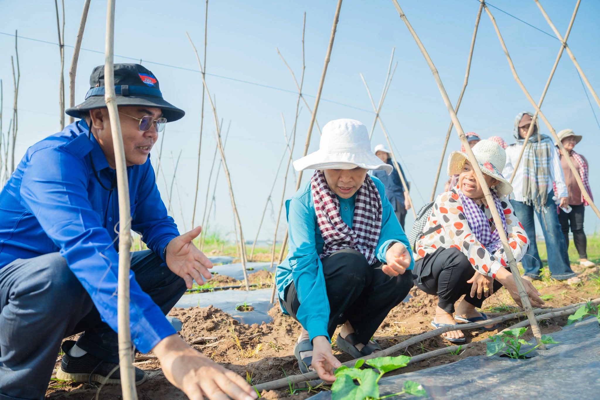ក្នុងឱកាសនោះផងដែរ លោកជំទាវ និងក្រុមការងារបានពិនិត្យយ៉ាងយកចិត្តទុកដាក់លើការដាំដុះដំណាំរួមផ្សំជាច្រើនប្រភេទរួមមាន÷ ដំណាំល្ពៅ ល្លុង ត្រសក់ ម្រះ ប៉េងប៉ោះ ម្ទេស ខាត់ណា និងននោង ។ល។ លោកជំទាវបានកោតសរសើរចំពោះការខិតខំប្រឹងប្រែងរបស់បងប្អូនកសិករ ដែលចេះច្នៃប្រឌិតផ្ទៃដីទំនេរមកបង្កើតជាប្រភពចំណូល និងធានាបាននូវការផ្គត់ផ្គង់បន្លែសុវត្ថិភាពសម្រាប់គ្រួសារ ក៏ដូចជាទីផ្សារផងដែរ។ ជាមួយគ្នានោះ លោកជំទាវ ក៏បានលើកទឹកចិត្តឱ្យកសិករ បន្តពង្រីកការដាំដុះបន្ថែមទៀត ដោយប្រើប្រាស់បច្ចេកទេសកសិកម្មឱ្យបានត្រឹមត្រូវ ដើម្បីបង្កើនទិន្នផល គុណភាពដំណាំសម្រាប់រក្សាសន្តិសុខស្បៀង និងអាជីវកម្មបង្កើតចំណូលក្រៅប្រព័ន្ធ សំដៅលើកកម្ពស់ជីវភាពរស់នៅប្រចាំថ្ងៃឱ្យកាន់តែមានភាពប្រសើរឡើង។