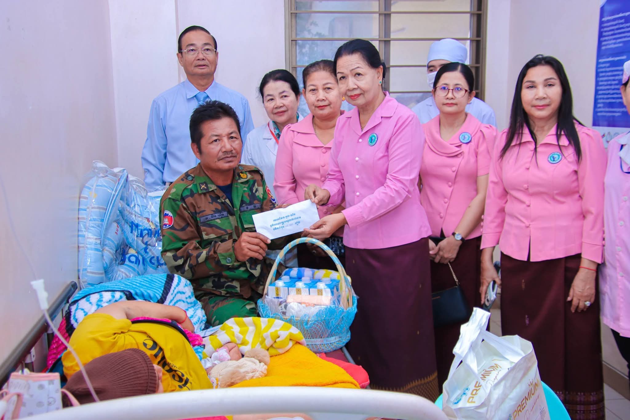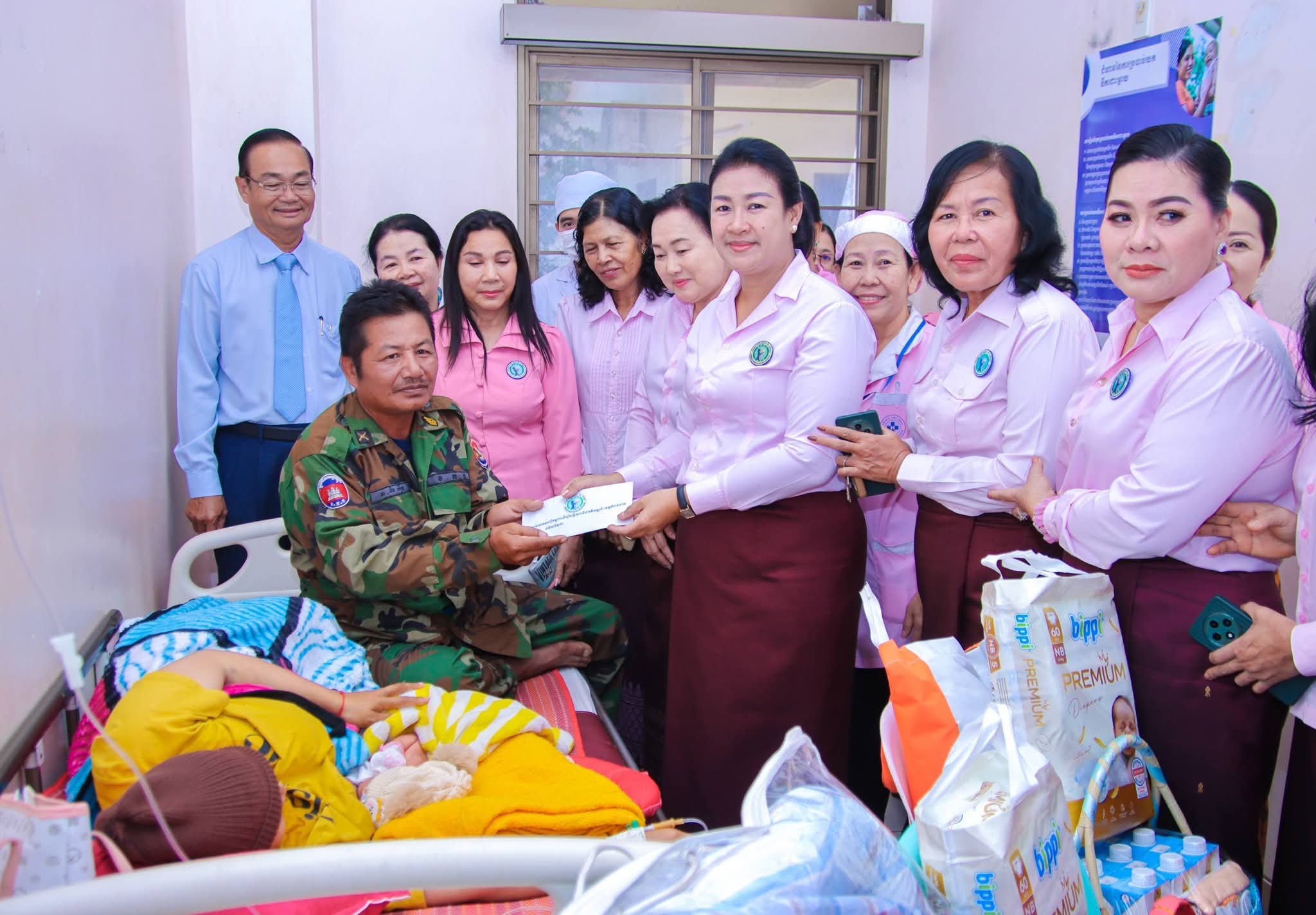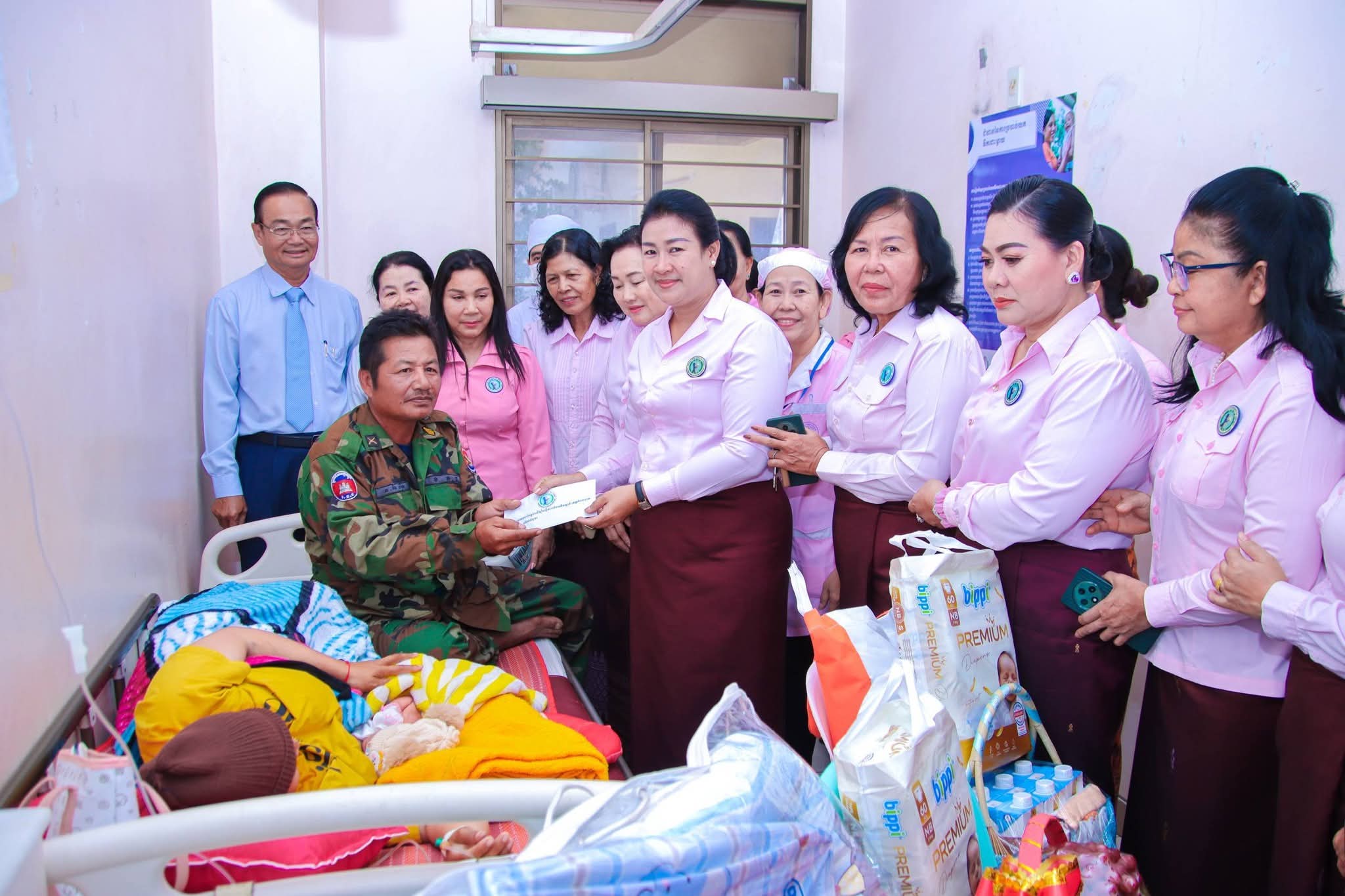 (កំពង់ចាម) :នៅព្រឹកថ្ងៃទី២៨ ខែ មករា ឆ្នាំ ២០២៦នេះ លោកជំទាវ ញូង ចរិយា អ៊ុន ចាន់ដា ប្រធានកិត្តិយសសាខាសមាគមនារីកម្ពុជា ដើម្បីសន្តិភាព និងអភិវឌ្ឍន៍ ខេត្តកំពង់ចាម អមដំណើរដោយលោកជំទាវ ប៉ាង ដានី អភិបាលរងខេត្ត និងជាប្រធានប្រតិតបត្តិសាខា រួមជាមួយលោកជំទាវអនុប្រធានកិត្តិយស និងប្រតិតបត្តិ និងសមាជិការ អញ្ជើញចុះសួរសុខទុក្ខ ភរិយាវីរៈកងទ័ពជួរមុខ ឈ្មោះ ស៊ាន ហឿន ឈរជើងនៅប្រាសាទខ្នារ ខេត្តឧត្តរមានជ័យ មានភរិយាឈ្មោះ កាន ស្រីមុំ អាយុ ៣១ឆ្នាំ រស់នៅភូមិតាត្រាវ ឃុំជីរោ២ ស្រុកត្បូងឃ្មុំ ខេត្តត្បងឃ្មុំ ដែលបានឆ្លងទន្លេដោយវះកាត់បានកូនស្រី ១នាក់ នៅក្នុងមន្ទីរពេទ្យបង្អែកខេត្តកំពង់ចាម ដោយសេវាព្យាបាល និងសម្រាលជាបន្ទុកមន្ទីរពេទ្យ។