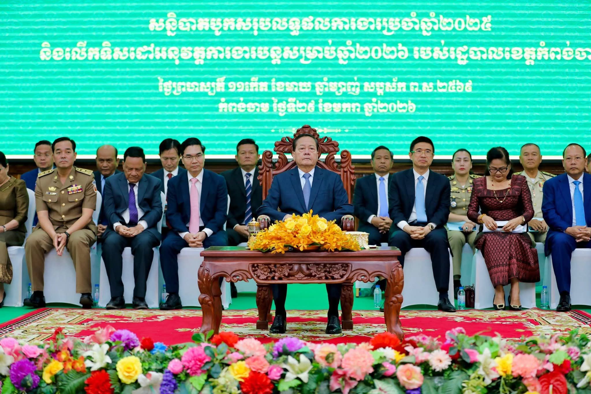 (កំពង់ចាម) :នៅព្រឹកថ្ងៃទី២៩ ខែមករា ឆ្នាំ២០២៦ នេះ ឯកឧត្តម អ៊ុន ចាន់ដា អភិបាលនៃគណៈអភិបាលខេត្តកំពង់ចាម និង ឯកឧត្តម ខ្លូត ផន ប្រធានក្រុមប្រឹក្សាខេត្ត បានអញ្ជើញចូលរួមក្នុងពិធី អបអរសាទរ ពិធីបិទសន្និបាតបូកសរុបលទ្ធផលការងារប្រចាំឆ្នាំ២០២៥ និង លើកទិសដៅបន្តរបស់រដ្ឋបាលខេត្តកំពង់ចាម ឆ្នាំ២០២៦ ក្រោមអធិបតីភាពដ៏ខ្ពង់ខ្ពស់ ឯកឧត្តមសន្តិបណ្ឌិត នេត សាវឿន ឧបនាយករដ្ឋមន្ត្រី ទទួលបន្ទុកប្រធាន អាជ្ញាធរជា តិប្រយុទ្ធប្រឆាំងគ្រឿងញៀន និងជាប្រធានក្រុមការងាររាជរដ្ឋាភិបាល ចុះមូលដ្ឋានខេត្តកំពង់ចាម ដែលប្រព្រឹតទៅ នៅសាសាខេត្តកំពង់ចាម។
