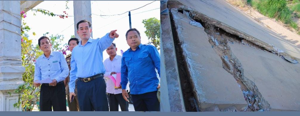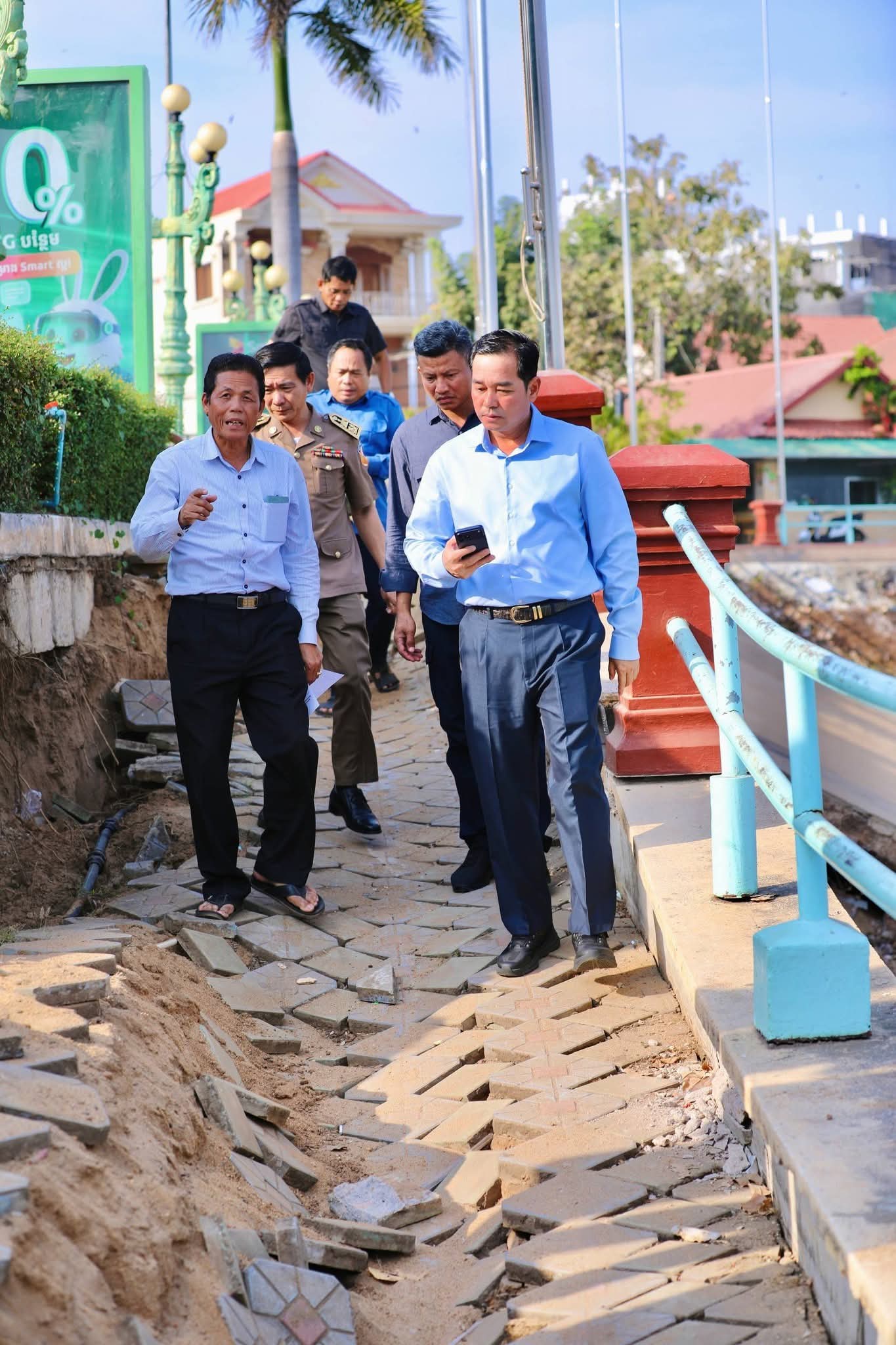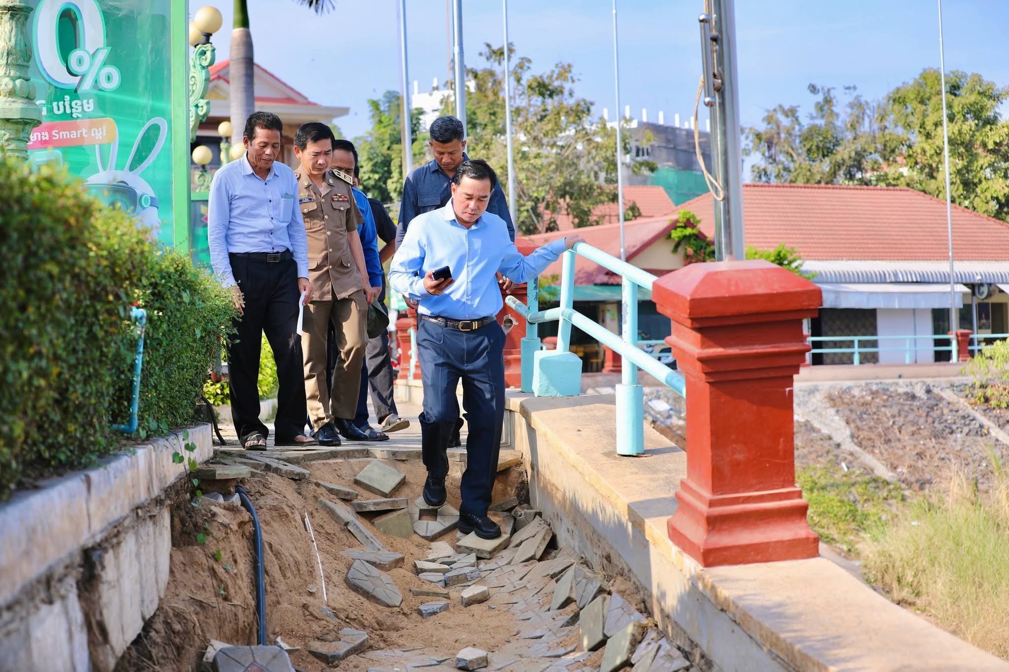 នាឱកាសនោះ ឯកឧត្តម អភិបាលខេត្ត បានណែនាំដល់អាជ្ញាធរសង្កាត់/ក្រុង ឲ្យរៀបចំដាក់ស្លាកសញ្ញាគ្រោះថ្នាក់ នៅកន្លែងដែលប្រេះស្រុត ដើម្បីជៀសវាងធ្វើអ្នកដំណើរ ដើរធ្លាក់នៅពេលយប់។