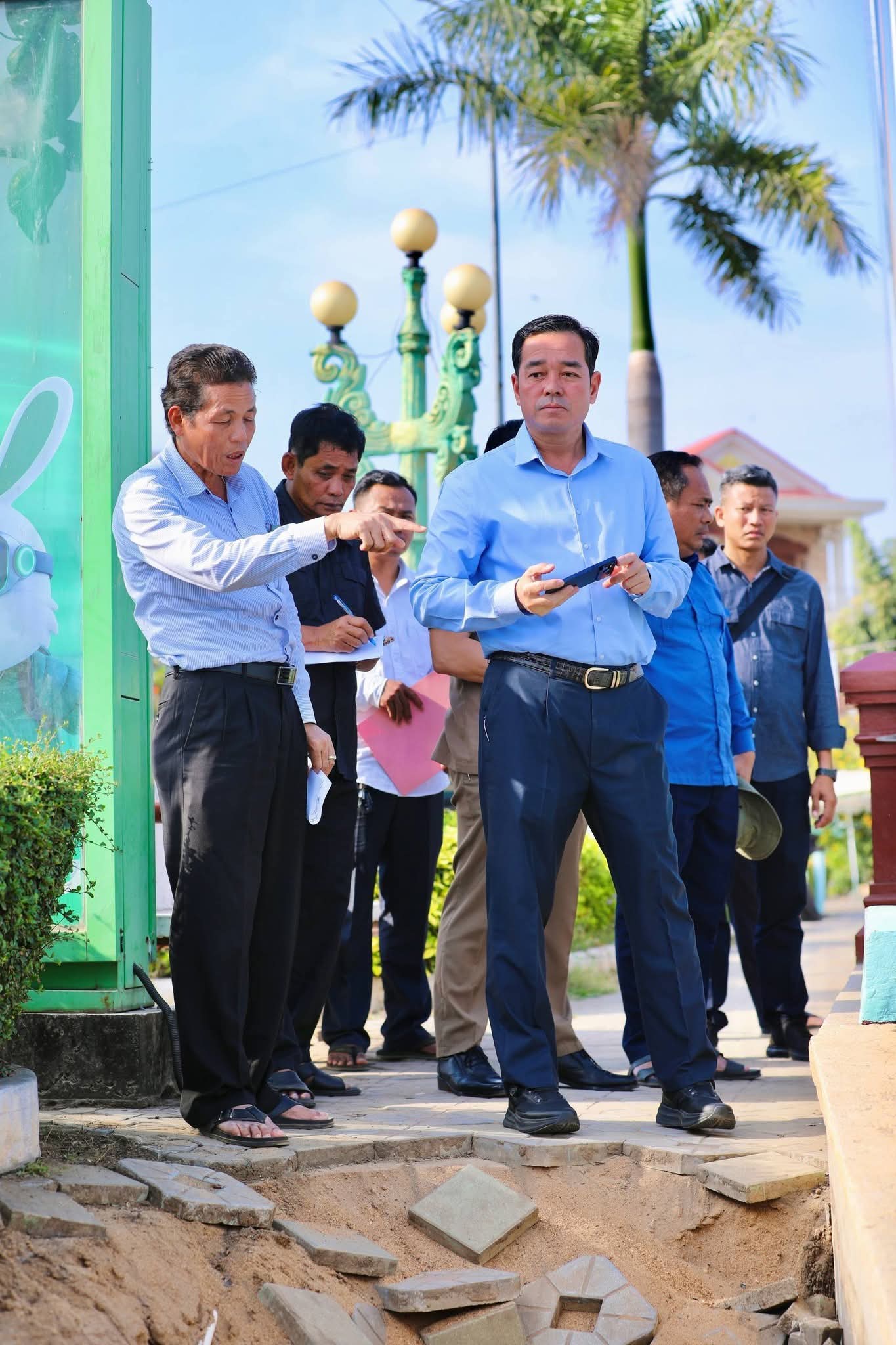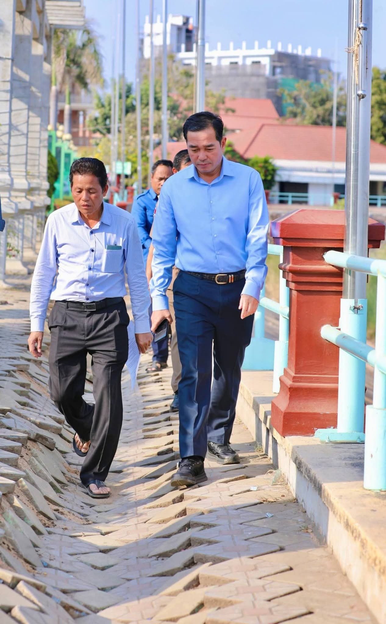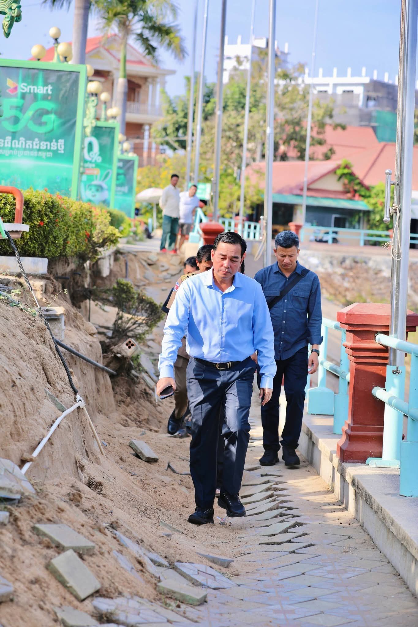 នាឱកាសនោះ ឯកឧត្តម អភិបាលខេត្ត បានណែនាំដល់អាជ្ញាធរសង្កាត់/ក្រុង ឲ្យរៀបចំដាក់ស្លាកសញ្ញាគ្រោះថ្នាក់ នៅកន្លែងដែលប្រេះស្រុត ដើម្បីជៀសវាងធ្វើអ្នកដំណើរ ដើរធ្លាក់នៅពេលយប់។