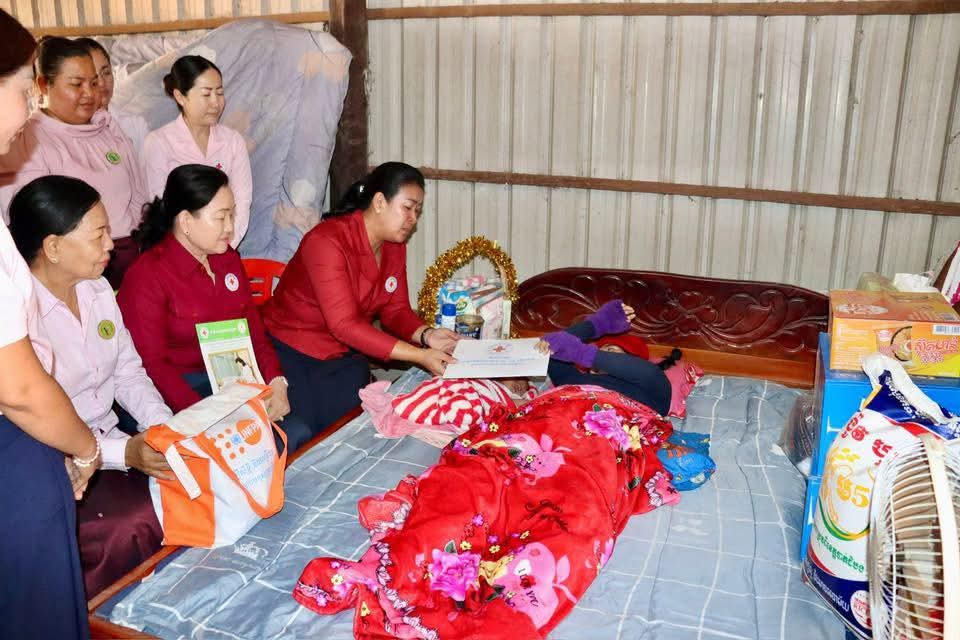 (កំពង់ចាម) : នៅព្រឹកថ្ងៃទី៣១ ខែ មករា ឆ្នាំ ២០២៦នេះ លោកជំទាវ ញូង ចរិយា អ៊ុនចាន់ដា អមដំណើរដោយលោកជំទាវ ប៉ាង ដានី អនុប្រធានអចិន្ត្រៃយ៍សាខា និងជាប្រធានក្រុមការងារឥស្សរជនឆ្នើមថ្នាក់ជាតិថ្នាក់សាខា និងឯកឧត្តម ទូច ឆៃ នាយកសាខា រួមជាមួយសហការីបា៤អញ្ជើញចុះសួរសុខទុក្ខដោយផ្ទាល់ដល់លំនៅដ្ឋាន និង នាំយកអំណោយរបស់ សម្តេចកិត្តិព្រឹទ្ធបណ្ឌិត ប៊ុន រ៉ានី ហ៊ុនសែន ប្រធានកាកបាទក្រហមកម្ពុជា ជូនភរិយាវីរៈកងទ័ពជួរមុខ ២គ្រួសារ និងជនភៀសសឹក ២គ្រួសារ រួមមាន :