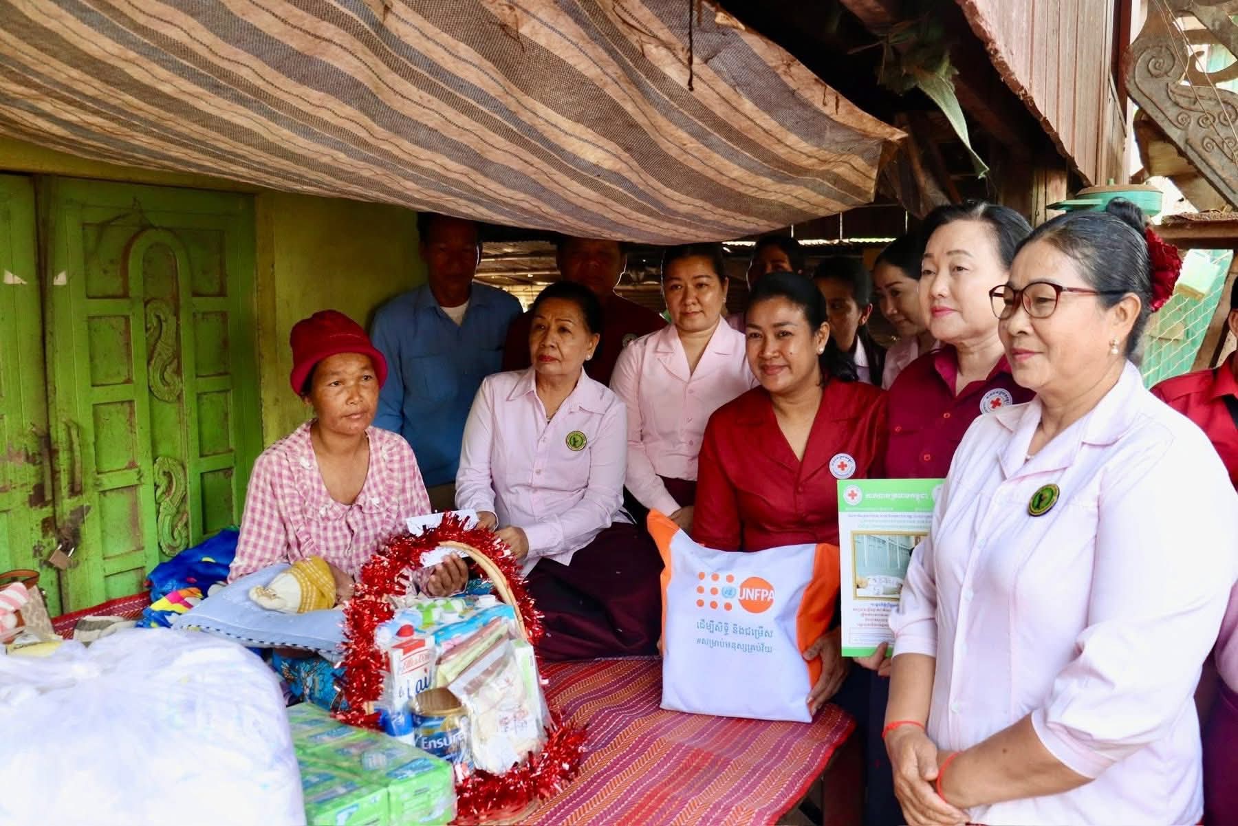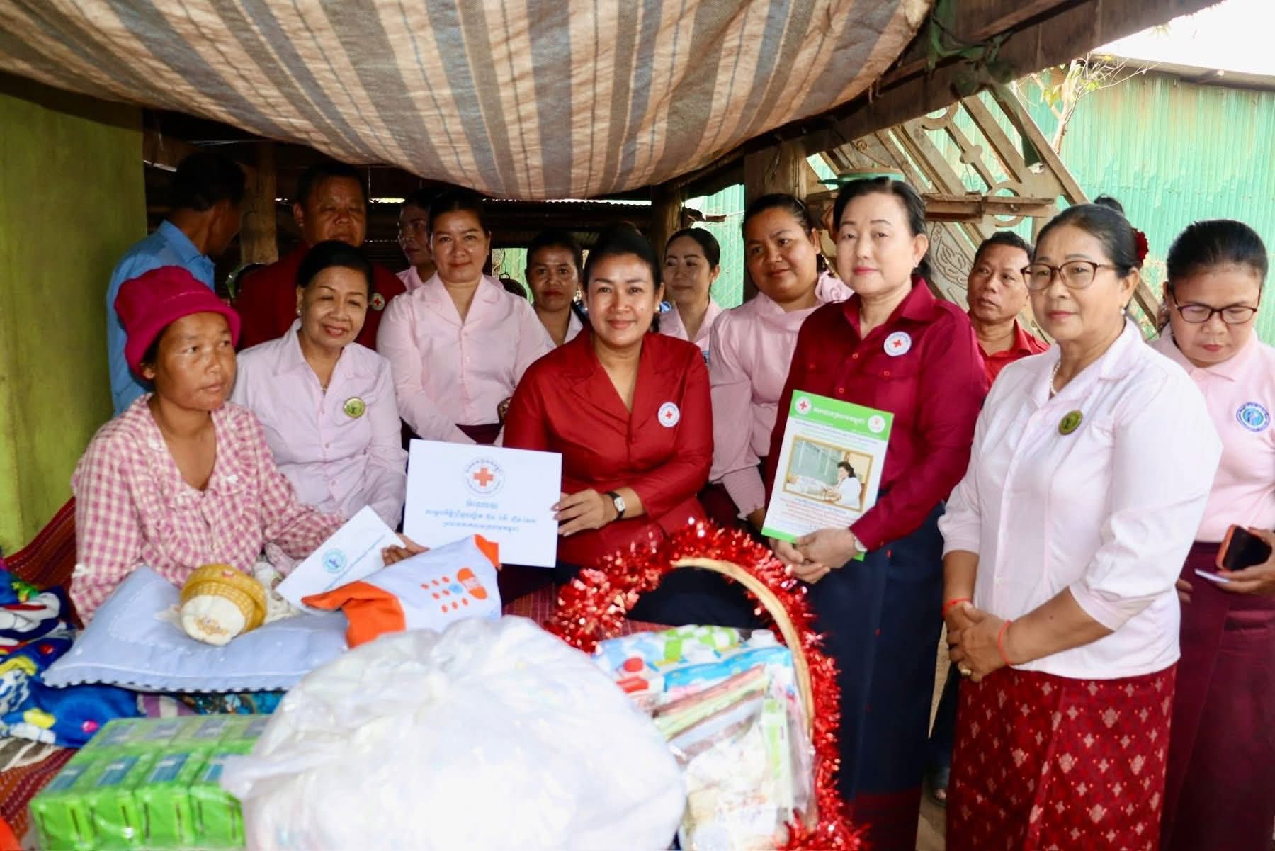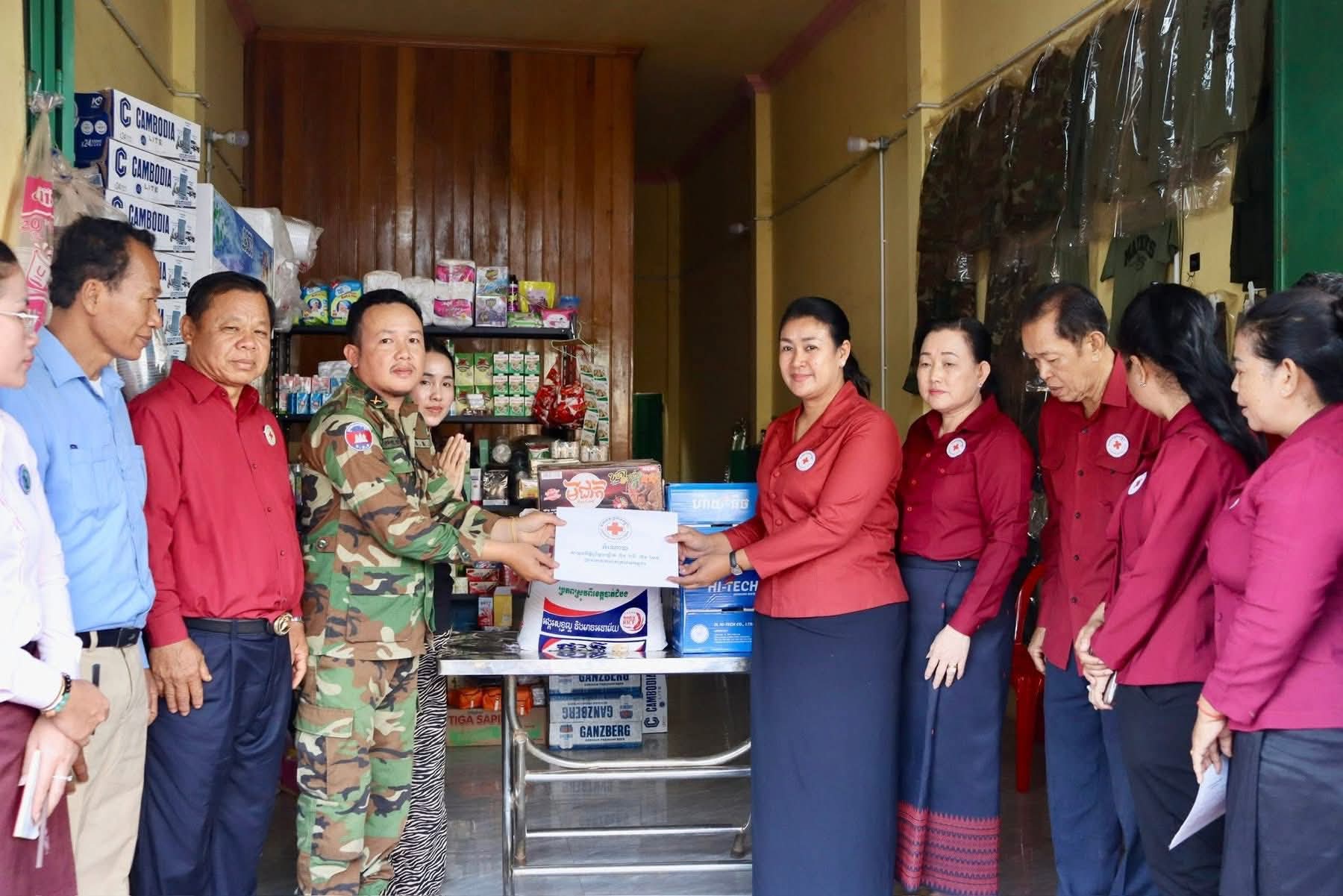 លោកជំទាវ បានផ្តល់អំណោយរបស់សម្តេចកិត្តិព្រឹទ្ធបណ្ឌិត ប្រធានកាកបាទក្រហមកម្ពុជា ជូន គ្រួសារវីរយោធិនជួរមុខ ក្នុង ម្នាក់ ៗ មាន អង្ករ ២៥គក្រ មី១កេស ទឹកពិសា ២កេសម្សៅទឹកដោះគោ សម្ភារខោអាវទារក ឃីត ស្ត្រី ១ឈុត និង ថវិកាចំនួន ៥០០,០០០រៀល សម្រាប់ជនភៀសសឹក និង ១,០០០,០០០រៀលសម្រាប់ភរិយាវីរ:កងទ័ពជួរមុខ រួមនឹងថវិកាសមាគមនារីដើម្បីអភិវឌ្ឍន៍ខេត្តកំពង់ចាម ឧបត្ថម្ភជូន ថវិកា ១គ្រួសារចំនួន ៥០០.០០០រៀល ។ជាមួយនោះ លោកជំទាវនិងសហការីក៏បានចូលជួបសួរសុខទុក្ខយោធិនជួរមុខ ១នាក់ ដែលមានជំងឺបានច្បាប់សម្រាកព្យាបាលនៅផ្ទះ ក្នុងឃុំមេសរជ្រៃ ដោយបានឧបត្ថម្ភអង្ករ ២៥គក្រ ទឹកពិសារ ២កេស មី១កេស និងថវិកា ៥០០,០០០រៀល ផងដែរ។