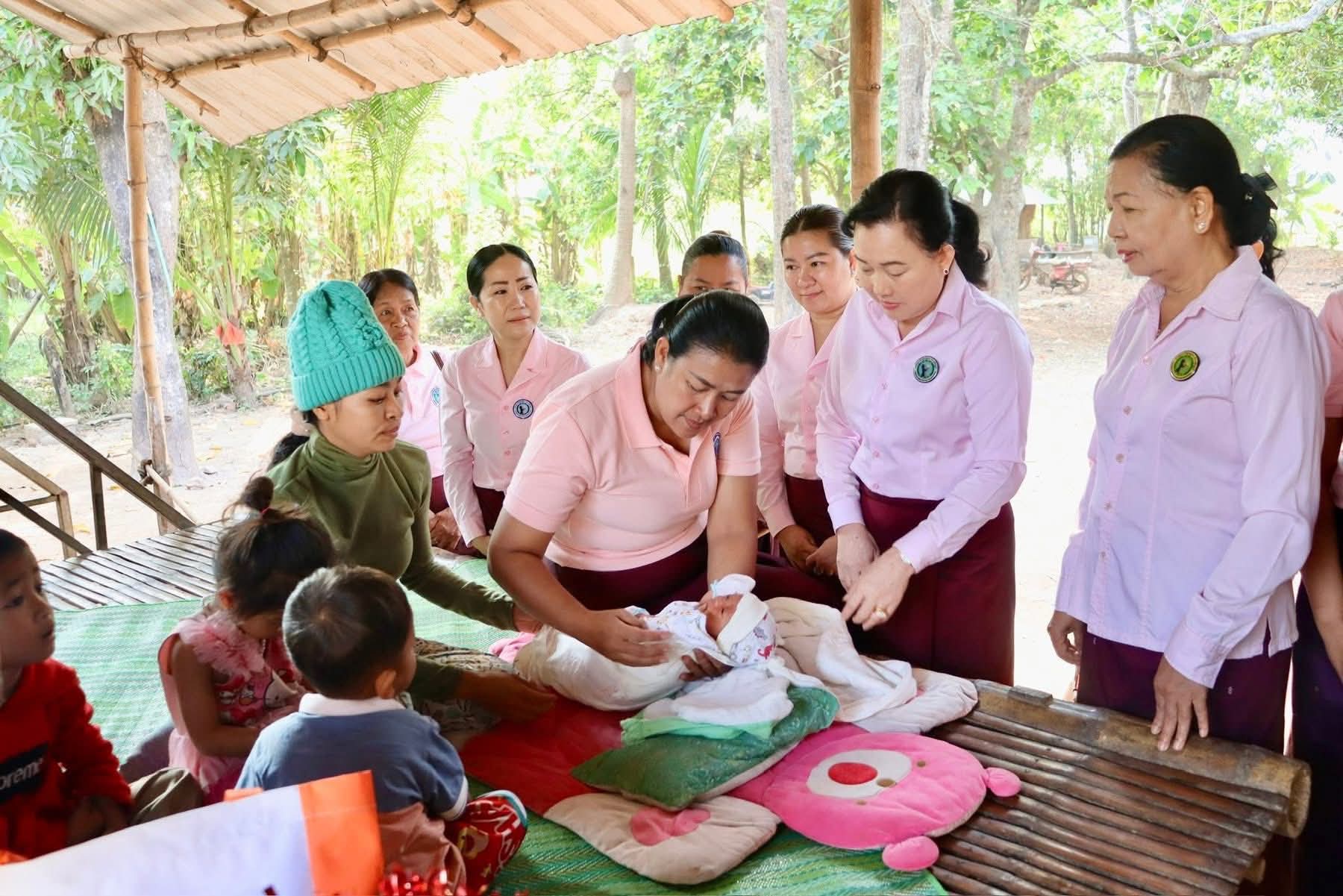 ក្នុងឱកាសនោះដែរ លោកជំទាវ ញូង ចរិយា អ៊ុនចាន់ថា បាននាំយកនូវបណ្តាំផ្ញើសាកសួរសុខដោយក្តីនឹករលឹក និងអាណិតអាសូរបំផុត ពីឯកឧត្តម អ៊ុន ចាន់ដា ប្រធានគណ:កម្មាធិការសាខា និងឯកឧត្តមសន្តិបណ្ឌិត នេត សាវឿន ប្រធានកិត្តិយសសាខា ពិសេសពីសម្តេចកិត្តិព្រឹទ្ធបណ្ឌិត ប៊ុន រ៉ានី ហ៊ុនសែន ប្រធានកាកបាទក្រហមកម្ពុជាដែលក្នុងតូនាទីជាឥស្សរជនឆ្នើមថ្នាក់ជាតិ សម្តេចប្រធាន តែងតែបានណែនាំអោយក្រុមការងារ និងបណ្តាញការងារគ្រប់ថ្នាក់ យកចិត្តទុកដាក់ ជួយដោះស្រាយសម្រាលទុក្ខលំបាកដល់ពលរដ្ឋរងគ្រោះ និងងាយរងគ្រោះ ក្នុងនោះ ត្រូវផ្តោតជាសំខាន់ទៅលើគ្រួសារកងទ័ពជួរមុខ និងពលរដ្ឋភៀសសឹក ពិសេស ការគាំពារ សុខភាព មាតា ទារក និងកុមារ ដោយមិនរើសអើង ។ លោកជំទាវ ក៏បានក្រើនរំលឹកបងប្អូនស្រ្តីជាមាតាថា ក្រោយសម្រាលត្រូវយកកូនទៅទទួលវ៉ាក់សាំងបង្ការជំងឺ 11 មុខតាមពេលកំណត់ ហើយបន្តតាមដានសុខភាពនិងការលូតលាស់ របស់កូន រហូតកូនអាយុបានពីរឆ្នាំ ។ សូមស្ត្រីជាមាតាទាំងឡាយ ត្រូវបំបៅកូននិងទឹកដោះម្ដាយតែមួយគត់ ចាប់តាំងពីការកើតភ្លាម រហូតដល់ទារកមានអាយុ 6 ខែដោយត្រូវផ្ដល់អាហារបន្ថែមគ្រប់មុខគ្រប់ជីវជាតិ(បបរខាប់ទ្រង់់គ្រឿង) រួមជាមួយការបន្តបំបៅទឹកដោះម្ដាយរហូតដល់កុមារមានអាយុយ៉ាងតិច ២ឆ្នាំ ។ គួរជ្រើសរើសយកការពន្យារកំណើត ដើម្បីសុខភាព មាតានិងទារក ។