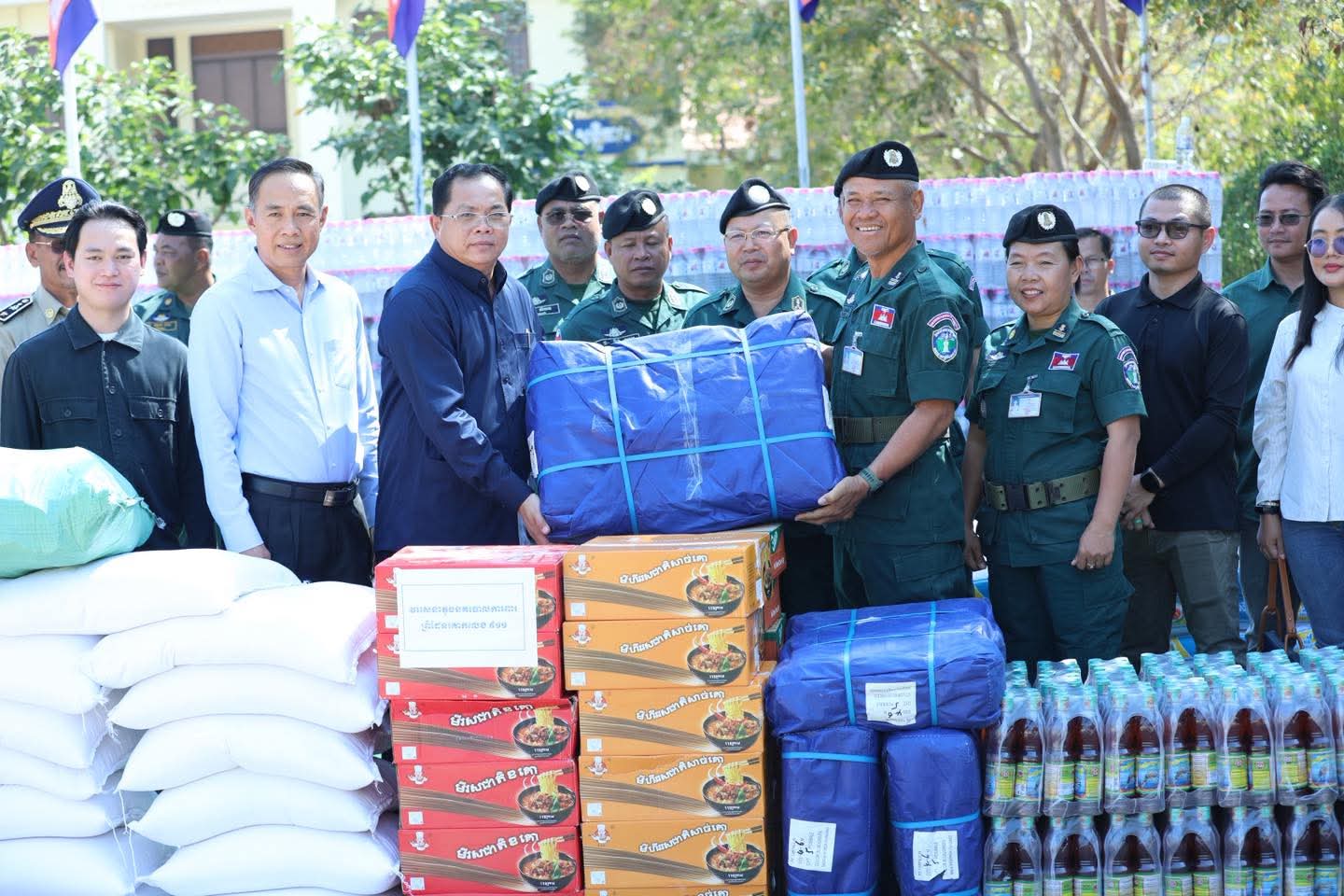 (បន្ទាយមានជ័យ): នៅថ្ងៃទី ០៥ ខែ មករា ឆ្នាំ២០២៦ ឯកឧត្តម ស៊ុន ចាន់ថុល ឧបនាយករដ្ឋមន្ត្រី អនុប្រធានទី១ ក្រុមប្រឹក្សាអភិវឌ្ឍន៍ កម្ពុជា បានចាត់តំណាងឱ្យ ឯកឧត្តម គង់ វិមាន អគ្គលេខាធិការ នៃអគ្គលេខាធិការដ្ឋាននៃក្រុមប្រឹក្សាអភិវឌ្ឍន៍កម្ពុជា ឯកឧត្ដម ឧត្ដមសេនីយ៍ឯក សម វណ្ណវីរៈ អគ្គស្នងការរងនគរបាលជាតិតំណាងដ៏ខ្ពង់ខ្ពស់របស់ ឯកឧត្ដម នាយឧត្ដមសេនីយ៍ ស ថេត អគ្គស្នងការនគរបាលជាតិ រួមជាមួយ លោកឧត្តមសេនីយ៍ត្រី រ៉ែម វីរៈ ស្នងការរងទទួលផែនការងារសេនាធិការ តំណាងឱ្យលោកឧត្តមសេនីយ៍ទោ សិទ្ធិ ឡោះ ស្នងការ នគរបាលខេត្តបន្ទាយមានជ័យ បានប្រគល់ទទួល សម្ភារៈបរិក្ខារគ្រឿងឧបភោគបរិភោគ ដើម្បីប្រគល់ជូន ដល់កម្លាំងនគរបាលកងកម្លាំងវរសេនាតូចការពារព្រំដែនគោកទាំង៤ (វរ ៨០៧, ៩១១, ៨៩១, ៨១៥) ដែលកំពុងឈរជើងការពារបូរណភាពទឹកដីក្នុងភូមិសាស្ត្រខេត្តបន្ទាយមានជ័យ ។