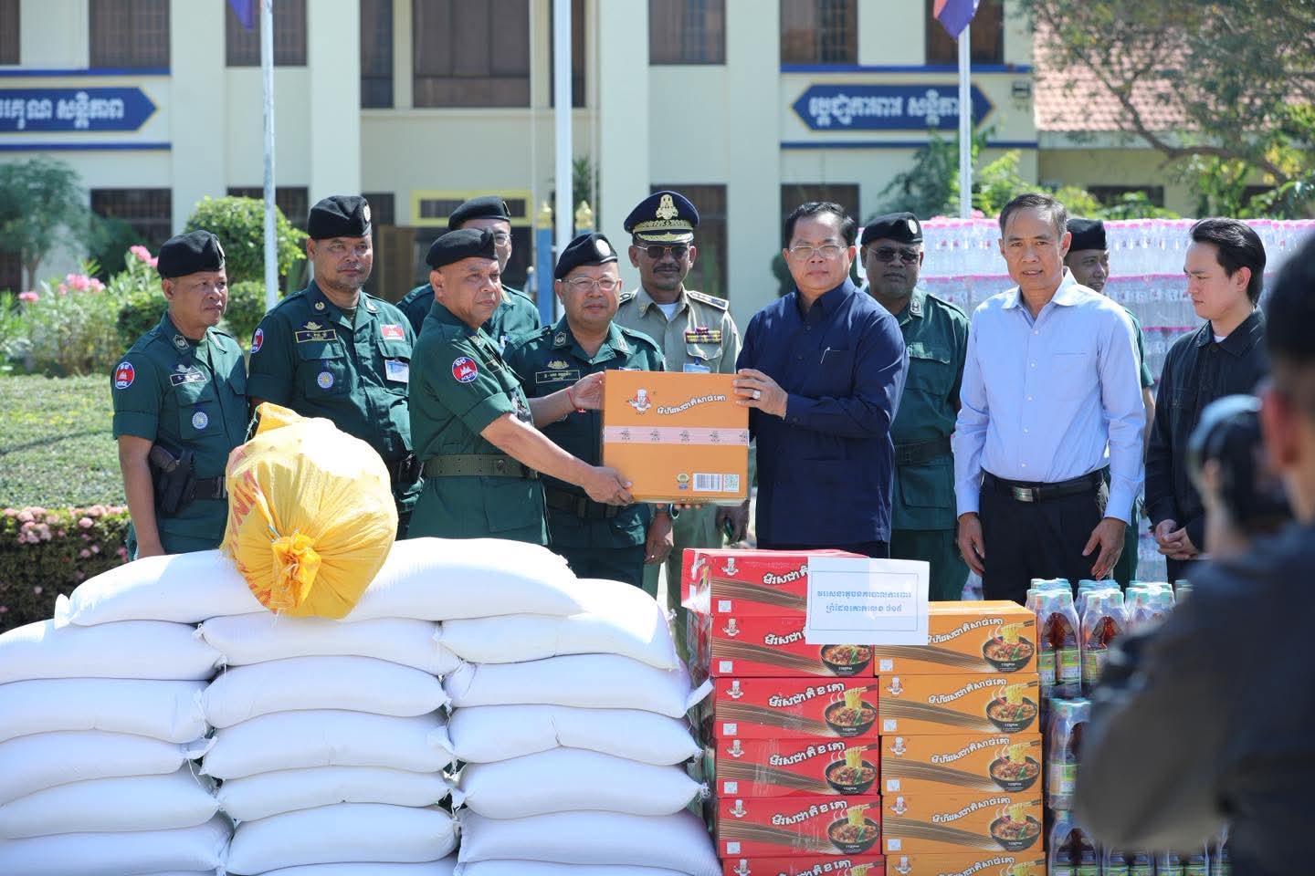 ក្នុងនោះមួយវរសេនាតូចការពារព្រំដែនគោកទទួលបាន -តង់ចំនួន ២០តង់ -អង្ករចំនួន ៣តោន -មីជាតិចំនួន ១០០កេស -ទឹកត្រីចំនួន ៥០យួរ -ទឹកសុទ្ធចំនួន ១០០០យួរ