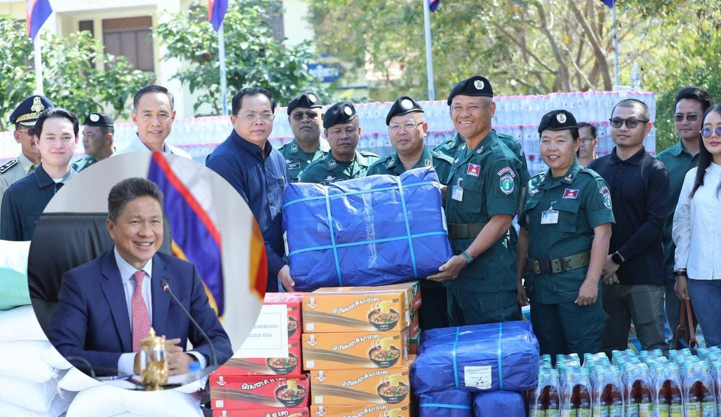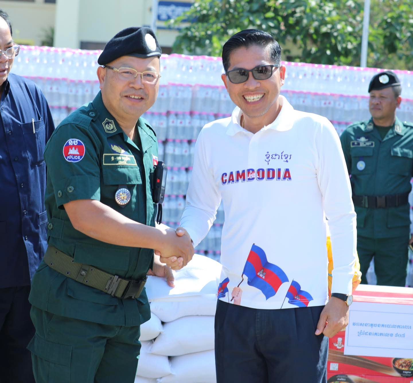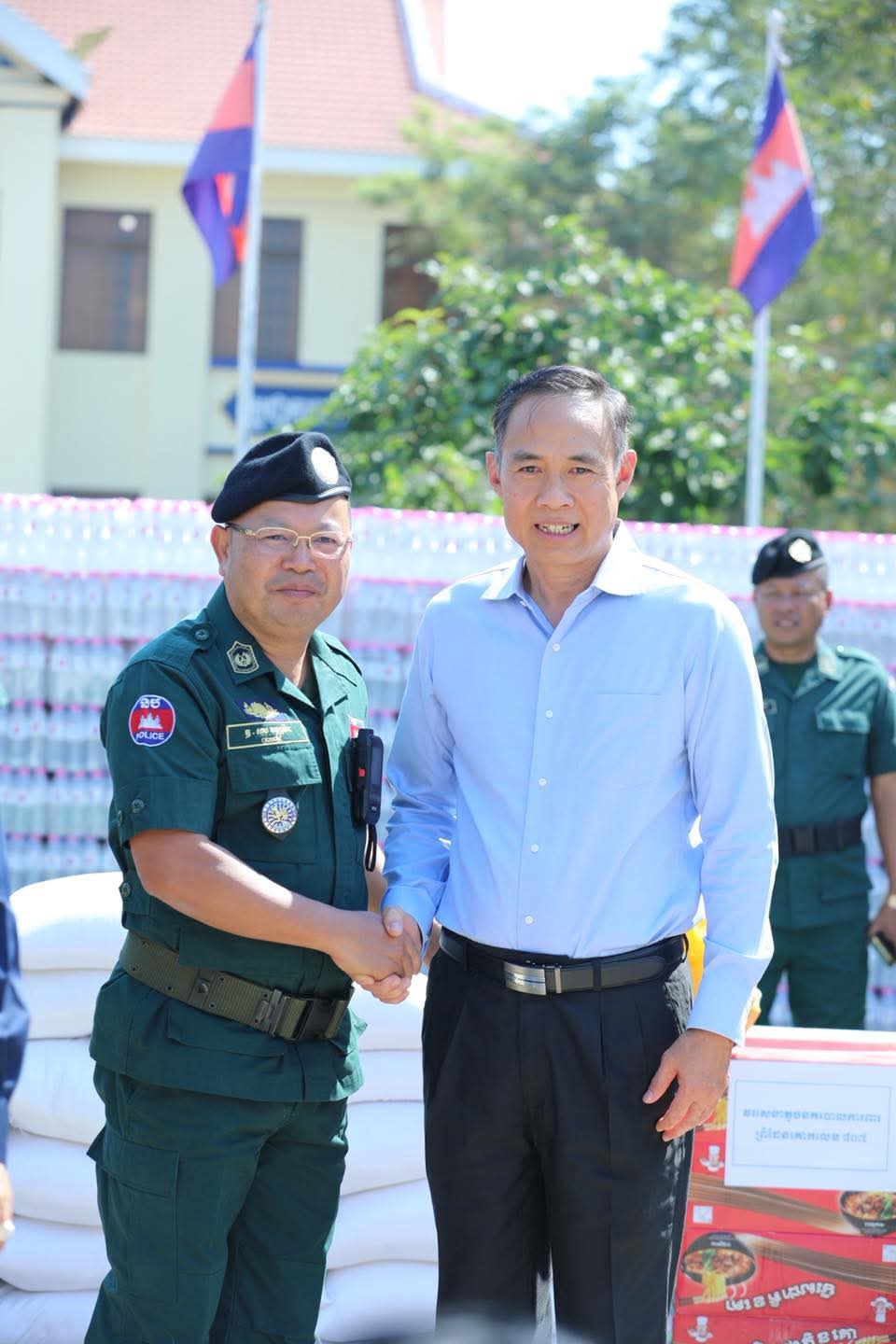 ក្នុងនាមស្នងការដ្ឋាននគរបាលខេត្តបន្ទាយមានជ័យ ជួសមុខឱ្យកងកម្លាំងវរសេនាតូចការពារព្រំដែនគោកទាំង ៤ សូមគោរពថ្លែងអំណរគុណយ៉ាងជ្រាលជ្រៅ ចំពោះ ឯកឧត្តម ស៊ុន ចាន់ថុល ឧបនាយករដ្ឋមន្ត្រី អនុប្រធានទី១ ក្រុមប្រឹក្សាអភិវឌ្ឍន៍កម្ពុជា និងសហការី ដែលបាន ឧបត្ថម្ភជាគ្រឿងឧបភោគបរិភោគ ដល់កងម្លាំងវរសេនាតូចការពារព្រំដែនគោកទាំង៤ ក្នុងកិច្ចការការពារបូរណៈភាពទឹកដី ។ សូមគោរពជូនពរដល់ ឯកឧត្ដម និង រួមសហការីទាំងអស់ ជួបតែសេចក្ដីសុខ គ្រប់ប្រការ សុខភាពមាំមួន ជោគជ័យគ្រប់ភារកិច្ច និងជួបប្រទ:តែពុទ្ធពរទាំង៤ប្រការគឺ អាយុ វណ្ណ: សុខ: ពល: កុំបីឃ្លៀងឃ្លាតឡើយ៕