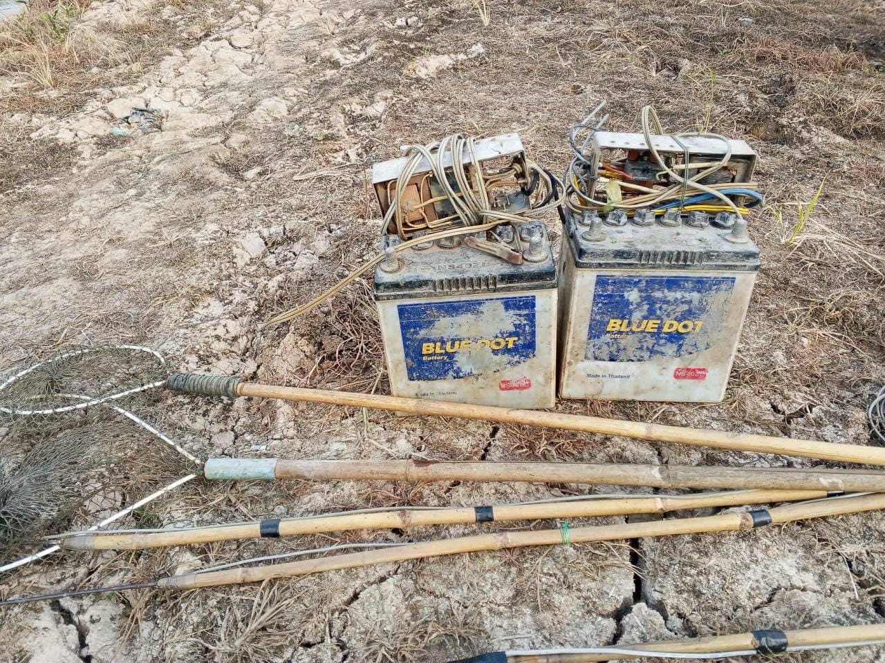 ករណីទី០២ -ដងឆក់រួមផ្សំខ្សែរភ្លើងចំនួន ០២គូរ-កន្រ្តងដងត្រីចំនួន ០២ -អាគុយម៉ាក់ BLUE DOT កម្លាំង៤០អំពែរ ចំនួន០២គ្រឿង នៅចំណុច បឹងទួលព្រះឃ្លាំង ភូមិបឹង ឃុំទួលព្រះឃ្លាំង ស្រុកស្ទឹងត្រង់។