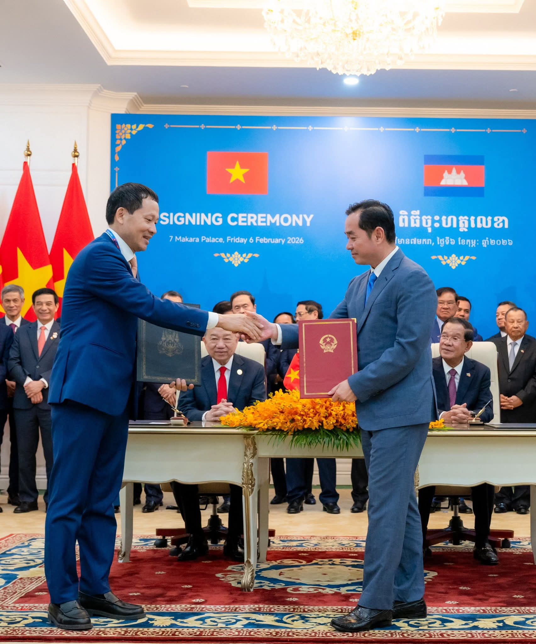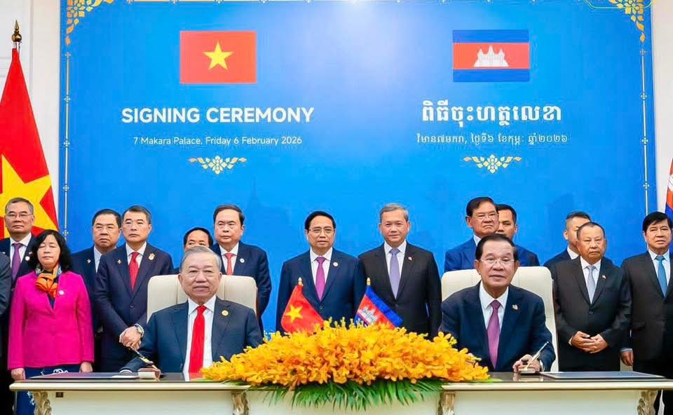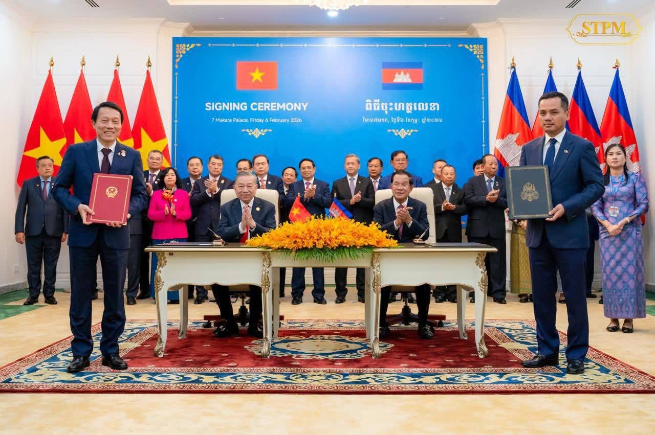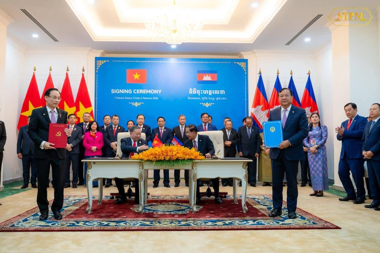 រាជធានីភ្នំពេញ: នាព្រឹកថ្ងៃសុក្រ ៤រោច ខែមាឃ ឆ្នាំម្សាញ់ សប្តស័ក ព.ស. ២៥៦៩ ត្រូវនឹងថ្ងៃទី៦ ខែកុម្ភៈ ឆ្នាំ២០២៦ នេះ ឯកឧត្តម អ៊ុន ចាន់ដា អភិបាលនៃគណៈអភិបាលខេត្តកំពង់ចាម បានអញ្ជើញចូលរួមក្នុងពិធីចុះហត្ថលេខាលើអនុស្សរណៈនៃការយោគយល់រវាងខេត្តសម្ព័ន្ធមេត្រីភាព កំពង់ចាម-ដុងណាយ (កម្ពុជា-វៀតណាម) ក្រោមអធិបតីភាពដ៏ខ្ពង់ខ្ពស់ សម្តេចអគ្គមហាសេនាបតីតេជោ ហ៊ុន សែន ប្រធានព្រឹទ្ធសភា និងជាប្រធានគណបក្សប្រជាជនកម្ពុជា និងឯកឧត្តម តូ ឡឹម (TO Lam ) ប្រមុខរដ្ឋវៀតណាម ស្ថិតនៅវិមាន ៧មករា រាជធានីភ្នំពេញ។