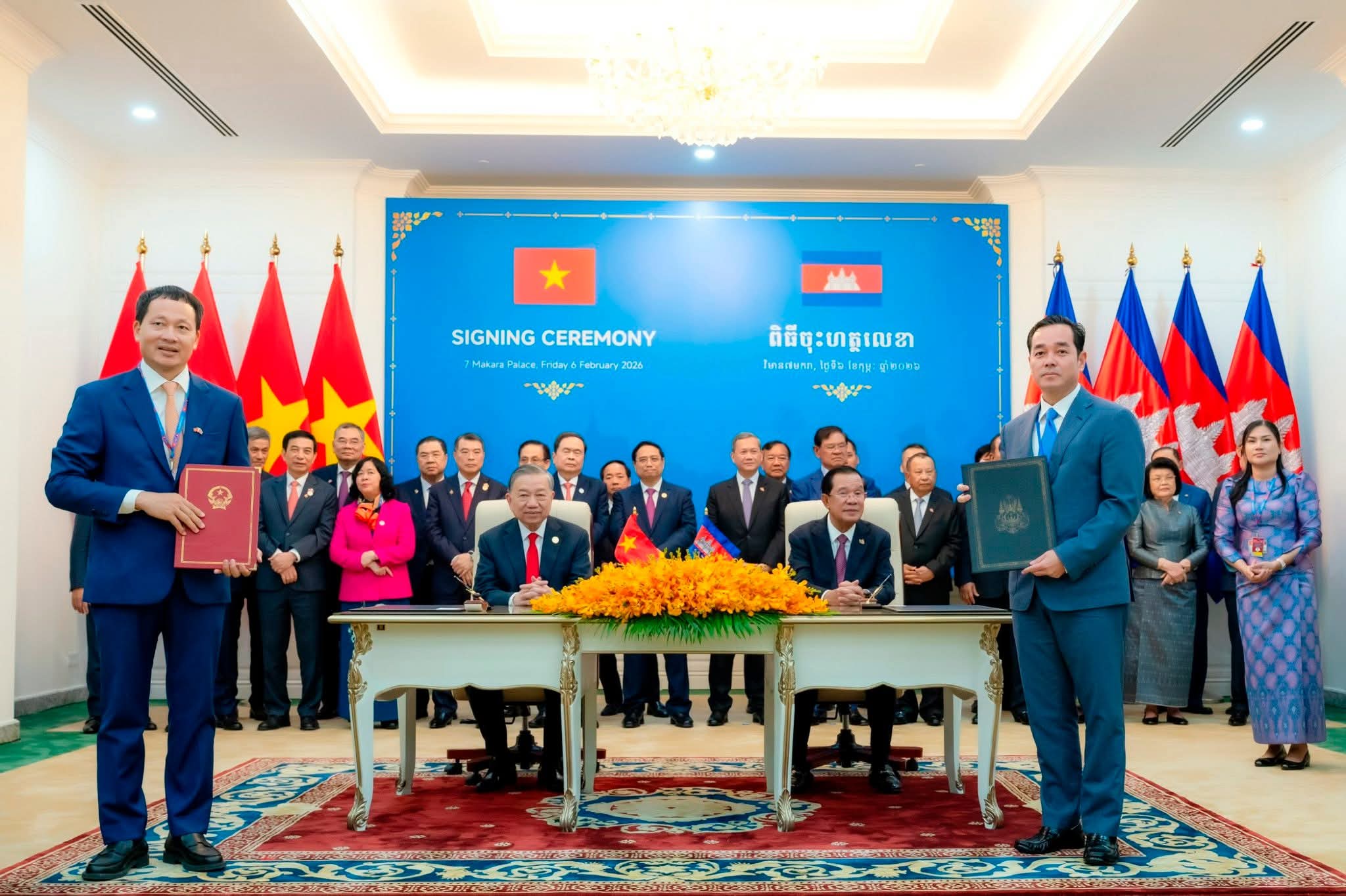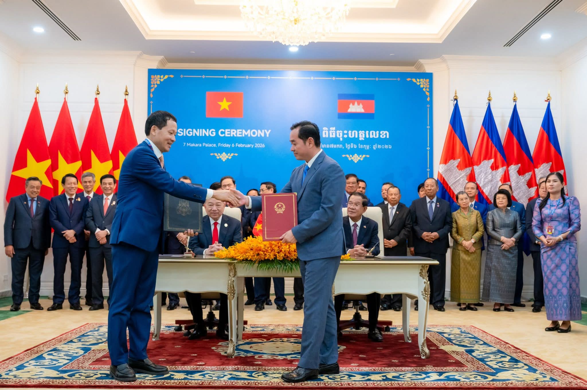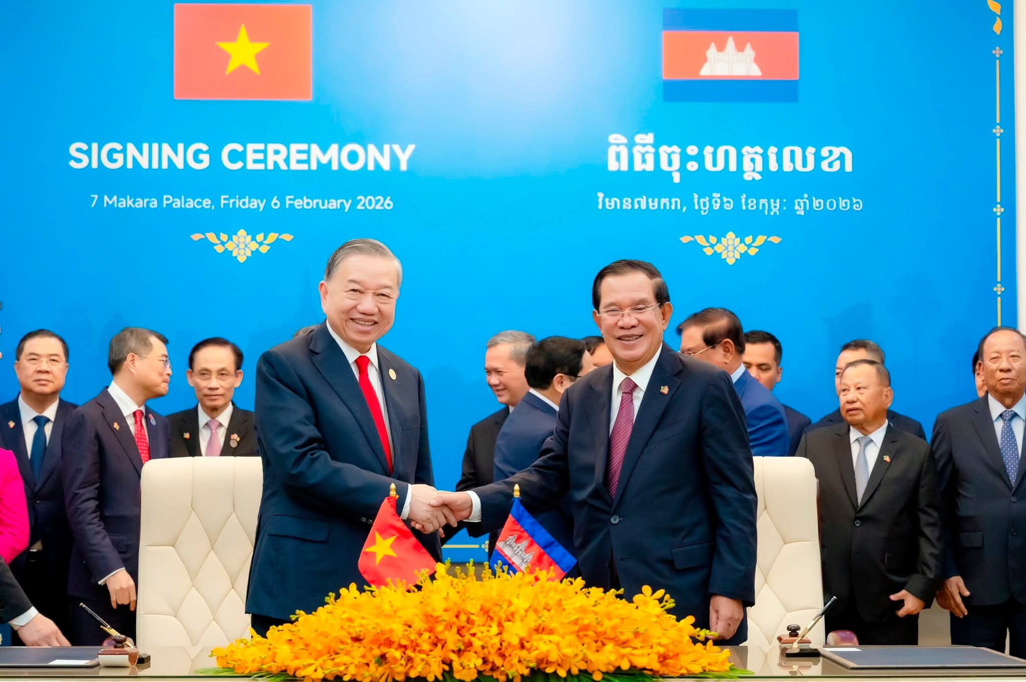 រាជធានីភ្នំពេញ: នាព្រឹកថ្ងៃសុក្រ ៤រោច ខែមាឃ ឆ្នាំម្សាញ់ សប្តស័ក ព.ស. ២៥៦៩ ត្រូវនឹងថ្ងៃទី៦ ខែកុម្ភៈ ឆ្នាំ២០២៦ នេះ ឯកឧត្តម អ៊ុន ចាន់ដា អភិបាលនៃគណៈអភិបាលខេត្តកំពង់ចាម បានអញ្ជើញចូលរួមក្នុងពិធីចុះហត្ថលេខាលើអនុស្សរណៈនៃការយោគយល់រវាងខេត្តសម្ព័ន្ធមេត្រីភាព កំពង់ចាម-ដុងណាយ (កម្ពុជា-វៀតណាម) ក្រោមអធិបតីភាពដ៏ខ្ពង់ខ្ពស់ សម្តេចអគ្គមហាសេនាបតីតេជោ ហ៊ុន សែន ប្រធានព្រឹទ្ធសភា និងជាប្រធានគណបក្សប្រជាជនកម្ពុជា និងឯកឧត្តម តូ ឡឹម (TO Lam ) ប្រមុខរដ្ឋវៀតណាម ស្ថិតនៅវិមាន ៧មករា រាជធានីភ្នំពេញ។