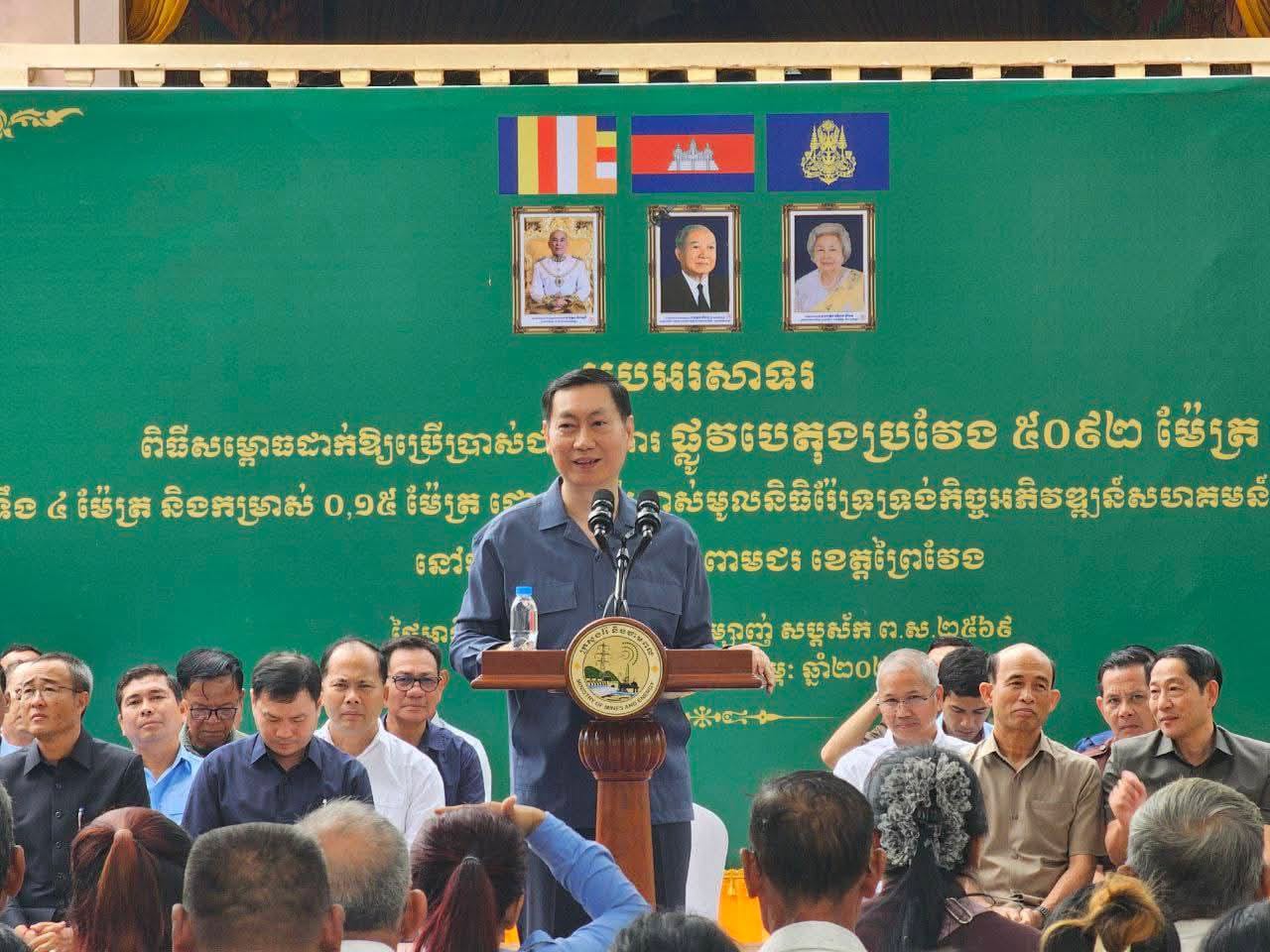 (ព្រៃវែង) :ឯកឧត្តម សួន សុម៉ាលីន អភិបាល នៃគណ: អភិបាលខេត្តព្រៃវែង នៅថ្ងៃទី៨ ខែកុម្ភៈ ឆ្នាំ២០២៦ បានអញ្ជើញចូលរួមសម្ពោធដាក់ឱ្យប្រើប្រាស់ផ្លូវបេតុងប្រវែងជាង ៥ គីឡូម៉ែត្រ នៅភូមិកោះពាមរាំងស្រុកពាមជរ ខេត្តព្រៃវែង ដើម្បីបម្រើដល់ផលប្រយោជន៍សាធារណៈ និងលើកកម្ពស់កម្រិតជីវភាពរបស់ប្រជាពលរដ្ឋក្នុងមូលដ្ឋាន ក្រោមអធិបតីភាព ឯកឧត្ដម កែវ រតនៈ រដ្ឋមន្ត្រីក្រសួងរ៉ែ និងថាមពល ។