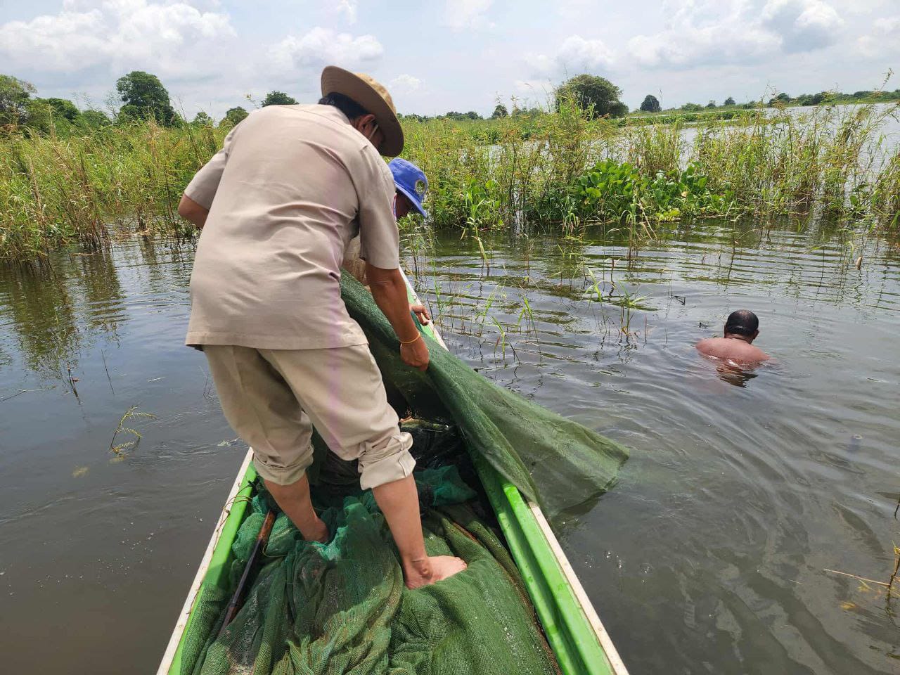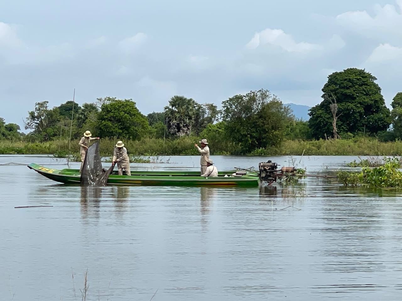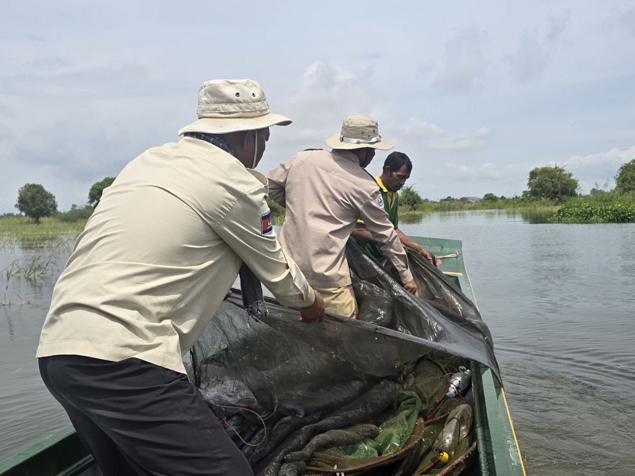 +ខណ្ឌរដ្ឋបាលបាលជលផលកំពង់ឆ្នាំង សហការជាមួយអធិការដ្ឋានរដ្ឋបាលជលផលខាងត្បូងបឹងទន្លេសាប និងសហគមន៍នេសាទភូមិថ្មី ភូមិកៀនតាម៉ា បានអមដំណើរនិងដឹកនាំដោយឯកឧត្តម ប៉ែន ផល្លិកា អនុរដ្ឋលេខាធិការក្រសួងកសិកម្ម រុក្ខាប្រមាញ់ និងនេសាទ ដោយមានកម្លាំង សរុបចំនួន ១៦ នាក់ និងប្រើប្រាស់មធ្យោបាយបាឡាស្មាច់ ចំនួន ៤ គ្រឿង