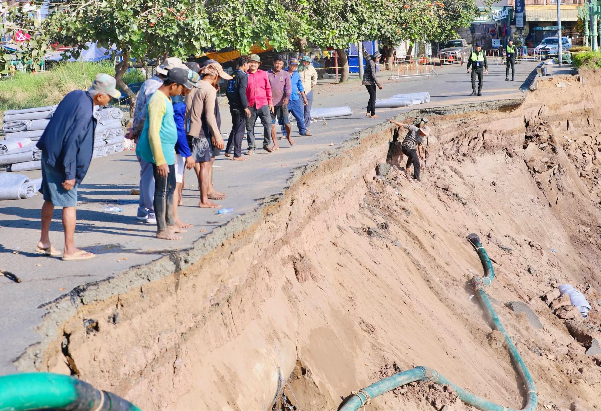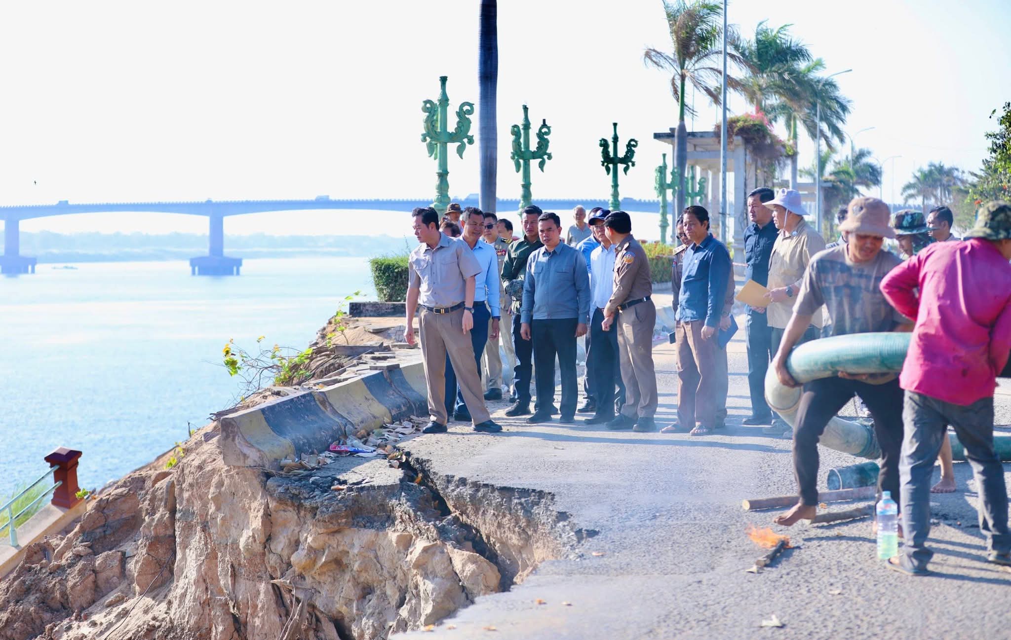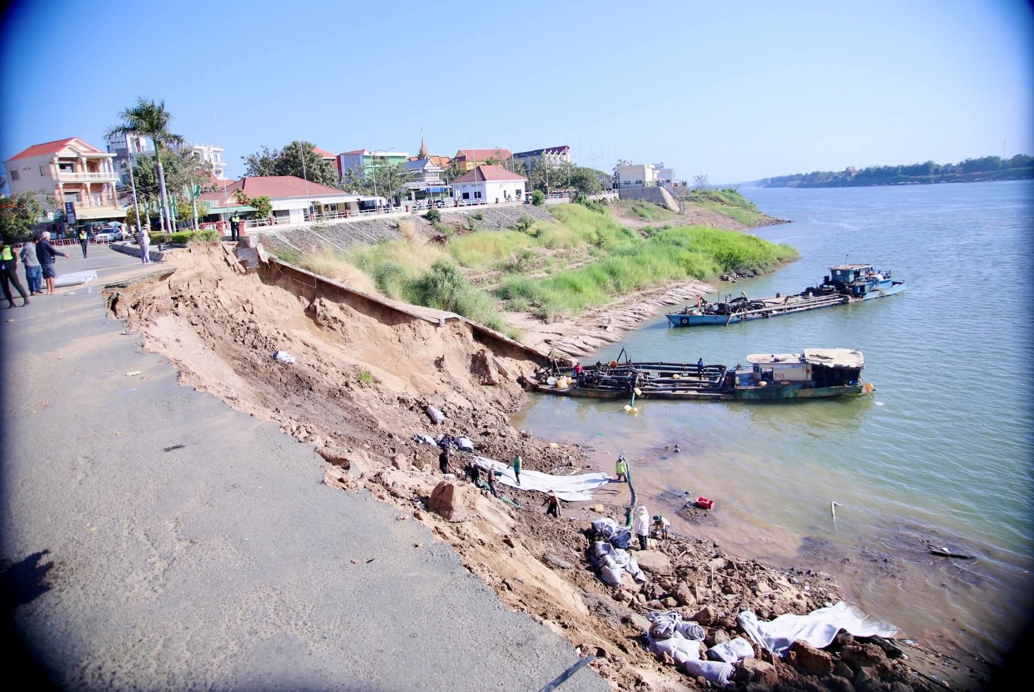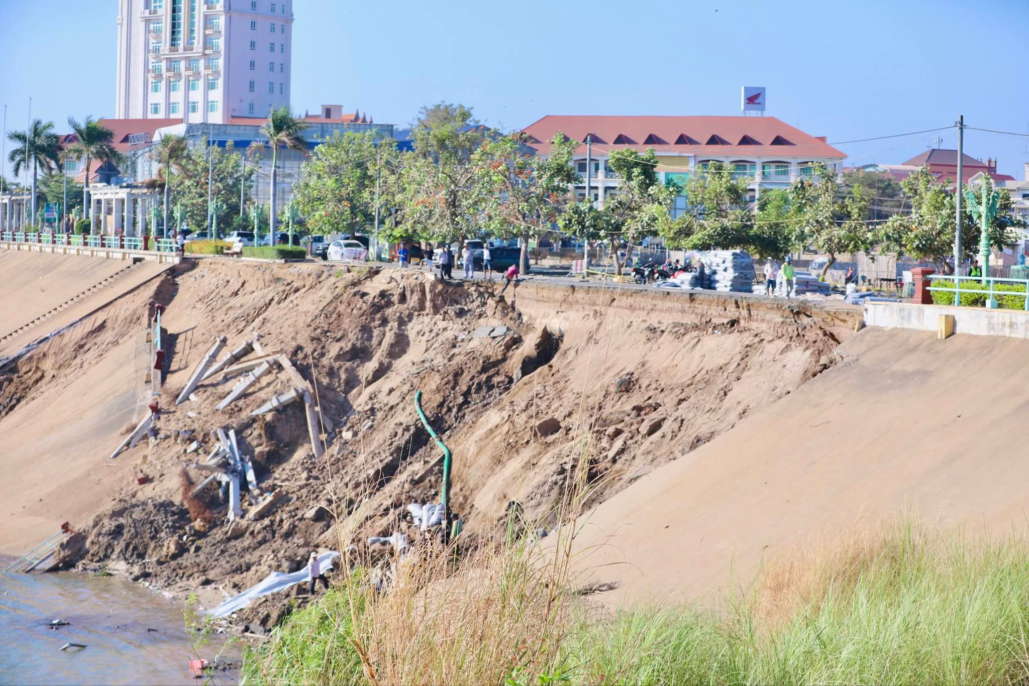គួររំលឹកថា កាលពីវេលាម៉ោងប្រមាណ ១១យប់ ថ្ងៃទី៣០ ខែមករា ឆ្នាំ២០២៦ មានករណីបាក់ស្រុត ច្រាំងទន្លេ នៅចំណុចភូមិទី១៥ សង្កាត់កំពង់ចាម ក្រុងកំពង់ចាម ខេត្តកំពង់ចាម ដែលចំណុចបាក់ ស្រុតនេះ បានបណ្តាលឱ្យ ផ្នែកខាងក្រោម បាក់ស្រុតសំណង់បេតុងទប់ច្រាំងទាំងស្រុង បណ្តោយប្រវែងប្រមាណ ៧០ម៉ែត្រ ទទឹង ៣២ម៉ែត្រ ផ្នែកខាងលើ មានការប៉ះពាល់ដល់សំណង់ សួនទាំងស្រុង រួមនិងផ្លូវកៅស៊ូមួយផ្នែកធំ ដែលមានបណ្តោយប្រវែងប្រមាណ ៧០ម៉ែត្រផងដែរ។