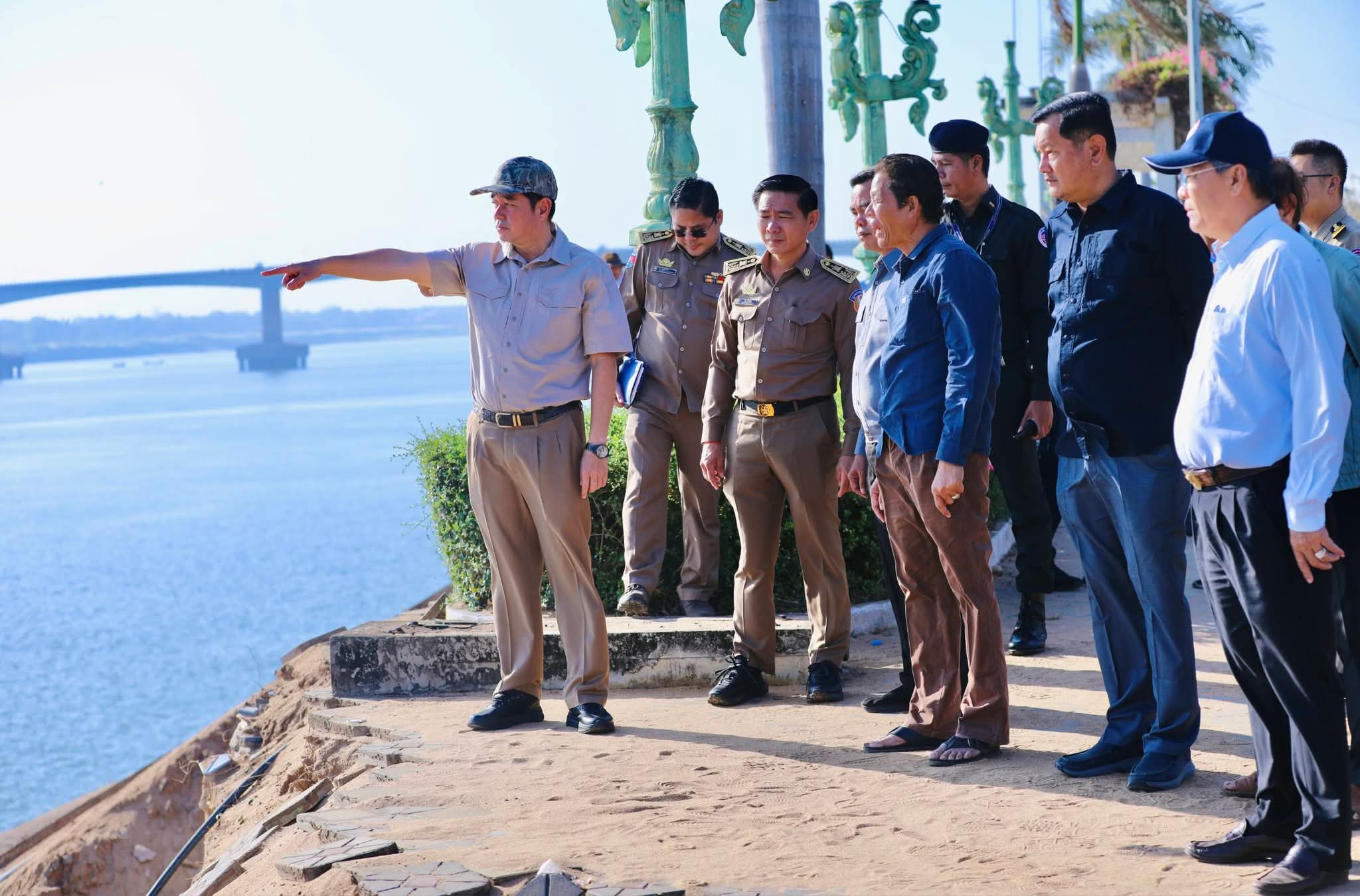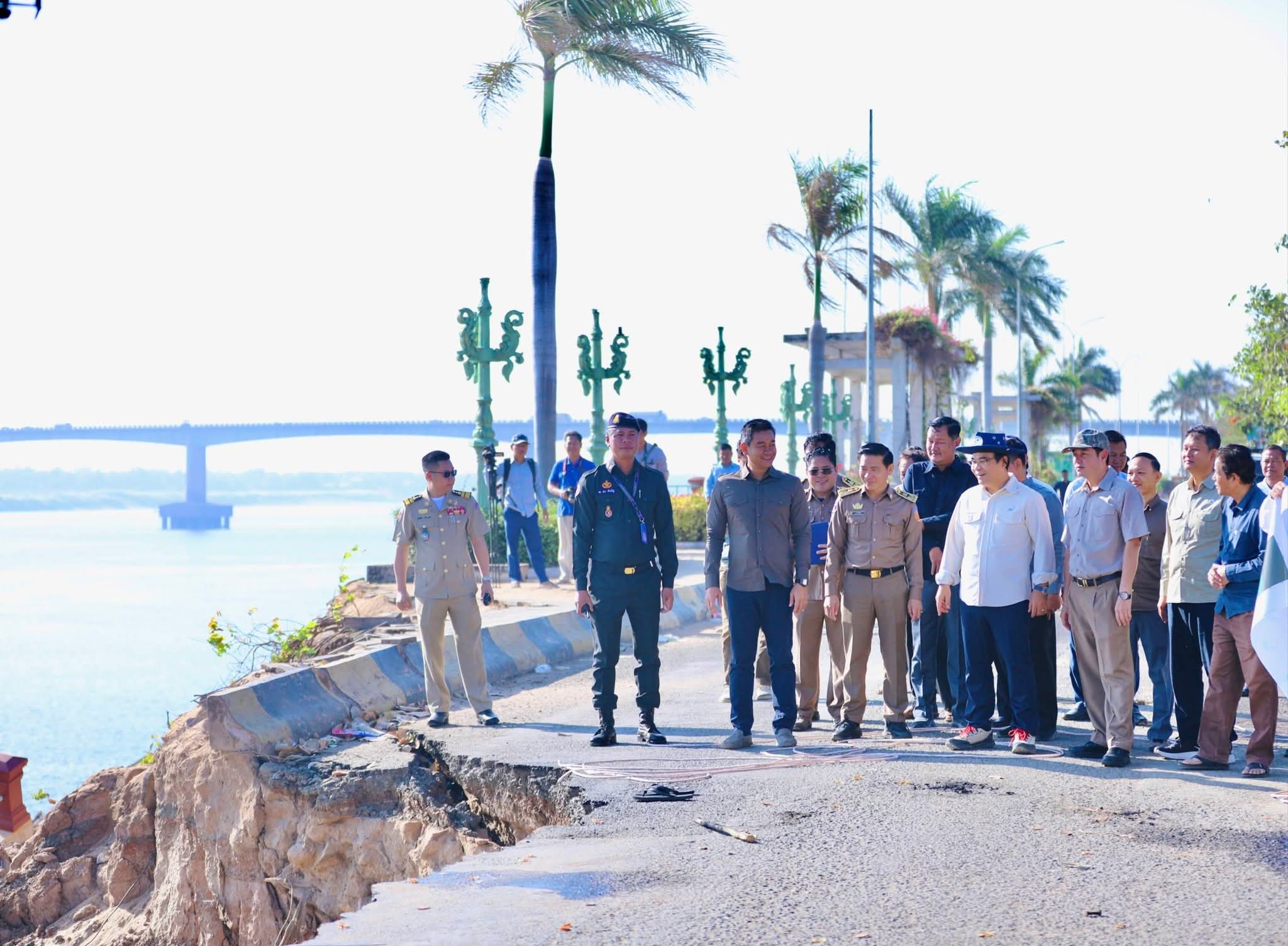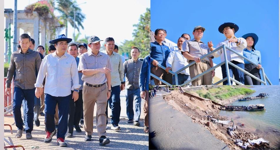 (កំពង់ចាម): នៅព្រឹកថ្ងៃទី១០ ខែកុម្ភៈ ឆ្នាំ២០២៦នេះ ឯកឧត្តម អ៊ុន ចាន់ដា អភិបាលនៃគណៈអភិបាលខេត្តកំពង់ចាម បានដឹកនាំក្រុមការងារខេត្ត អមដំណើរ ឯកឧត្តម ថោ ជេដ្ឋា រដ្ឋមន្ត្រីក្រសួងធនធានទឹកនិងឧតុនិយម អអញ្ជើញចុះពិនិត្យលក្ខណៈបច្ចេកទេស ក្នុងការទប់ស្កាត់បណ្ដោះអាសន្ន ចំពោះការបាក់ច្រាំងស្រុតទន្លេមេគង្គ ស្ថិតនៅក្នុងក្រុងកំពង់ចាម។