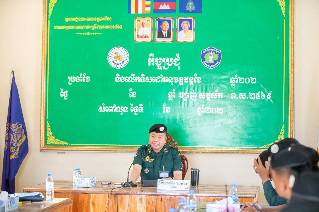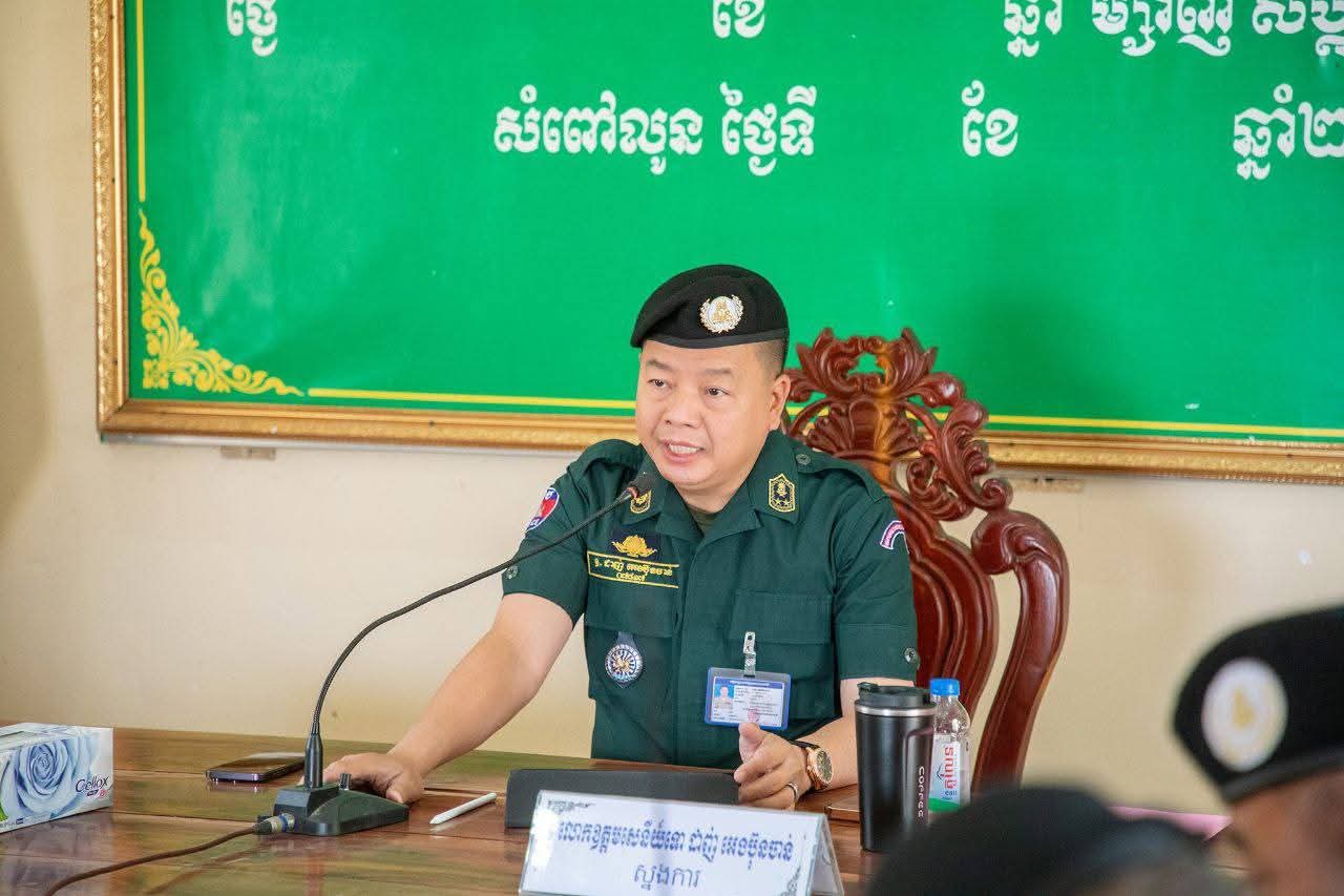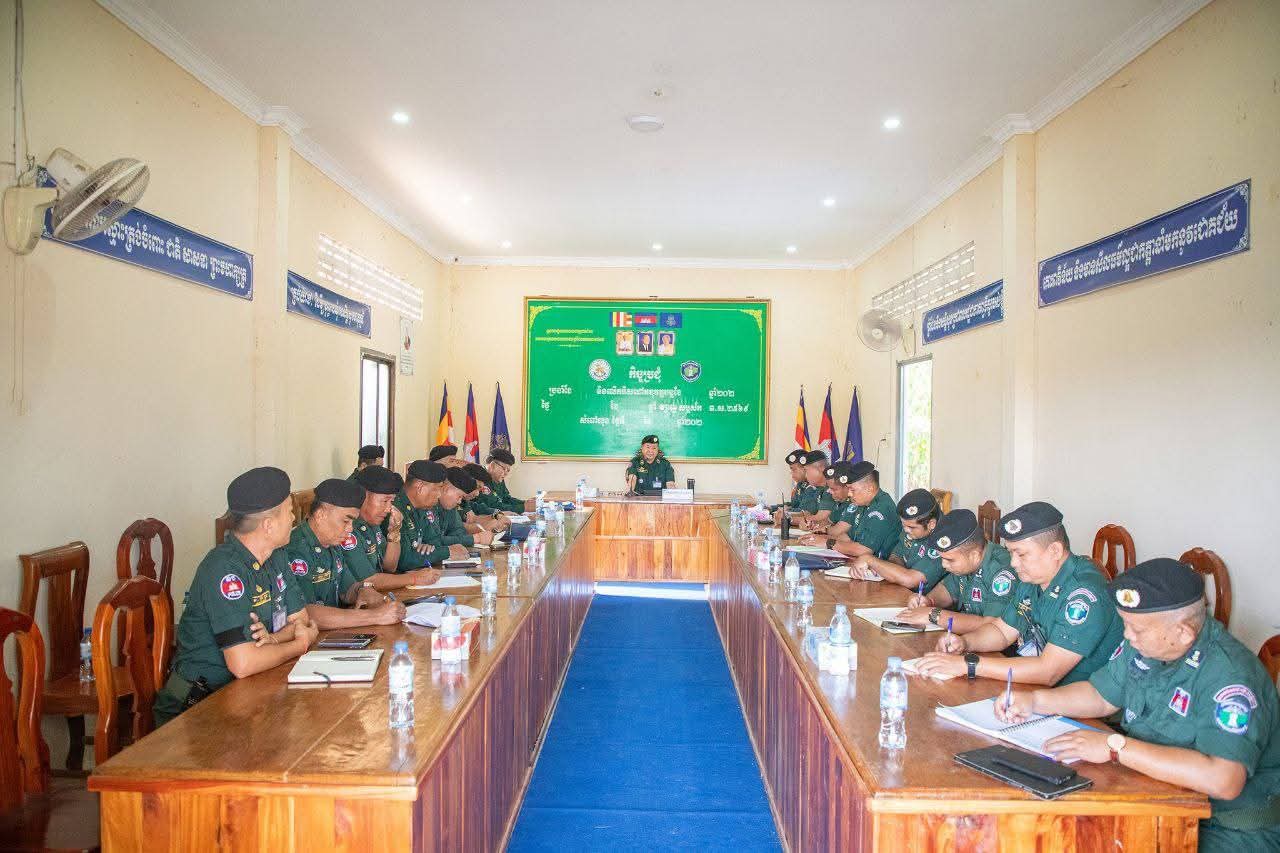 ខេត្តបាត់ដំបង: នៅព្រឹកថ្ងៃទី១១ ខែកុម្ភៈ ឆ្នាំ២០២៦ លោកឧត្តមសេនីយ៍ទោ ដាញ់ អេងប៊ុនចាន់ ស្នងការនគរបាលខេត្តបាត់ដំបង បានអញ្ជើញដឹកនាំកិច្ចប្រជុំពង្រឹងការងារចាំបាច់មួយចំនួន ផ្អែកតាមសភាពការណ៍ និងស្ថានភាពសន្តិសុខបច្ចុប្បន្ន ដល់អង្គភាពវរសេនាតូចនគរបាលការពារព្រំដែនគោកទាំង៤ ព្រមទាំងអធិការដ្ឋាននគរបាលស្រុកសំពៅលូន ស្រុកភ្នំព្រឹក និងស្រុកកំរៀង។ កិច្ចប្រជុំនេះប្រព្រឹត្តទៅនៅទីបញ្ជាការវរសេនាតូចនគរបាលការពារព្រំដែនគោកលេខ៨១៧ ស្ថិតក្នុងស្រុកសំពៅលូន។
