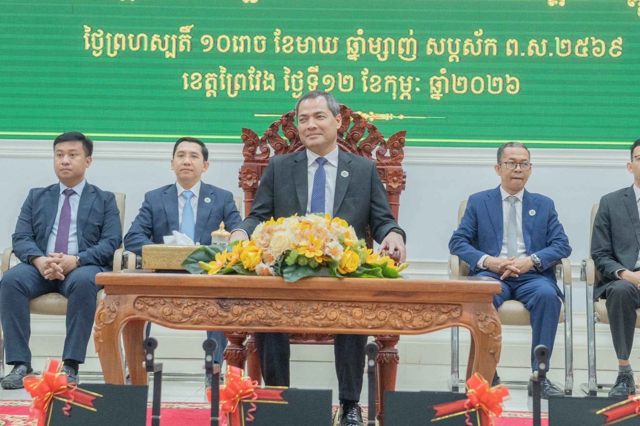 (ព្រៃវែង) : ព្រឹកថ្ងៃព្រហស្បត្តិ៍ ទី១២ ខែកុម្ភៈ ឆ្នាំ២០២៦នេះ ឯកឧត្តម សួន សុម៉ាលីន អភិបាល នៃគណ: អភិបាលខេត្តព្រៃវែង និងឯកឧត្តម ជា សុមេធី រដ្ឋមន្ត្រីក្រសួងសង្គមកិច្ច អតីតយុទ្ធជន និងយុវនីតិសម្បទា រួមជាមួយ ឯកឧត្តមបណ្ឌិត ចន ណារិទ្ធ រដ្ឋលេខាធិការក្រសួងសេដ្ឋកិច្ច និងហិរញ្ញវត្ថុ, អគ្គលេខាធិការក្រុមប្រឹក្សាជាតិគាំពារសង្គម និងជាប្រធានអនុ គណៈកម្មាធិការទទួលបន្ទុកបរិវត្តកម្មឌីជីថលក្នុងប្រព័ន្ធការពារសង្គម បានអញ្ជើញជាគណៈអធិបតី ក្នុងពិធីប្រគល់-ទទួល សម្ភារៈឌីជីថល សម្រាប់ចុះបញ្ជីគាំពារសង្គម តាមថ្នាលឌីជីថលគាំពារសង្គមកម្ពុជ ក្នុងខេត្តព្រៃវែង ដែលប្រព្រឹត្តទៅនៅសាលប្រជុំធំ (A) សាលាខេត្តព្រៃវែង។ដោយមានការអញ្ជើញចូលរួមពីសំណាក់÷ ឯកឧត្តម រដ្ឋលេខាធិការ អនុរដ្ឋលេខាធិការ អគ្គនាយក អគ្គនាយករង ប្រធាននាយកដ្ឋានអត្តសញ្ញាណកម្មគ្រួសារក្រីក្រ តំណាងខុទ្ទកាល័យក្រសួងសង្គមកិច្ច តំណាងអង្គការសហប្រជាជាតិ និងប្រតិភូអមដំណើរ ប្រធានមន្ទីរ អង្គភាពពាក់ព័ន្ធ អភិបាលស្រុក ស្ថានប័នពាក់និងដៃគូអភិវឌ្ឍន៍ សាខាមូលនិធិជាតិជំនួយសង្គម មេឃុំ ចៅសង្កាត់ និងមន្រ្តីអនុវត្តកម្មវិធីនៅឃុំ/សង្កាត់ ទាំង១១៦ សរុបប្រមាណចំនួន ៣៨០រូប។