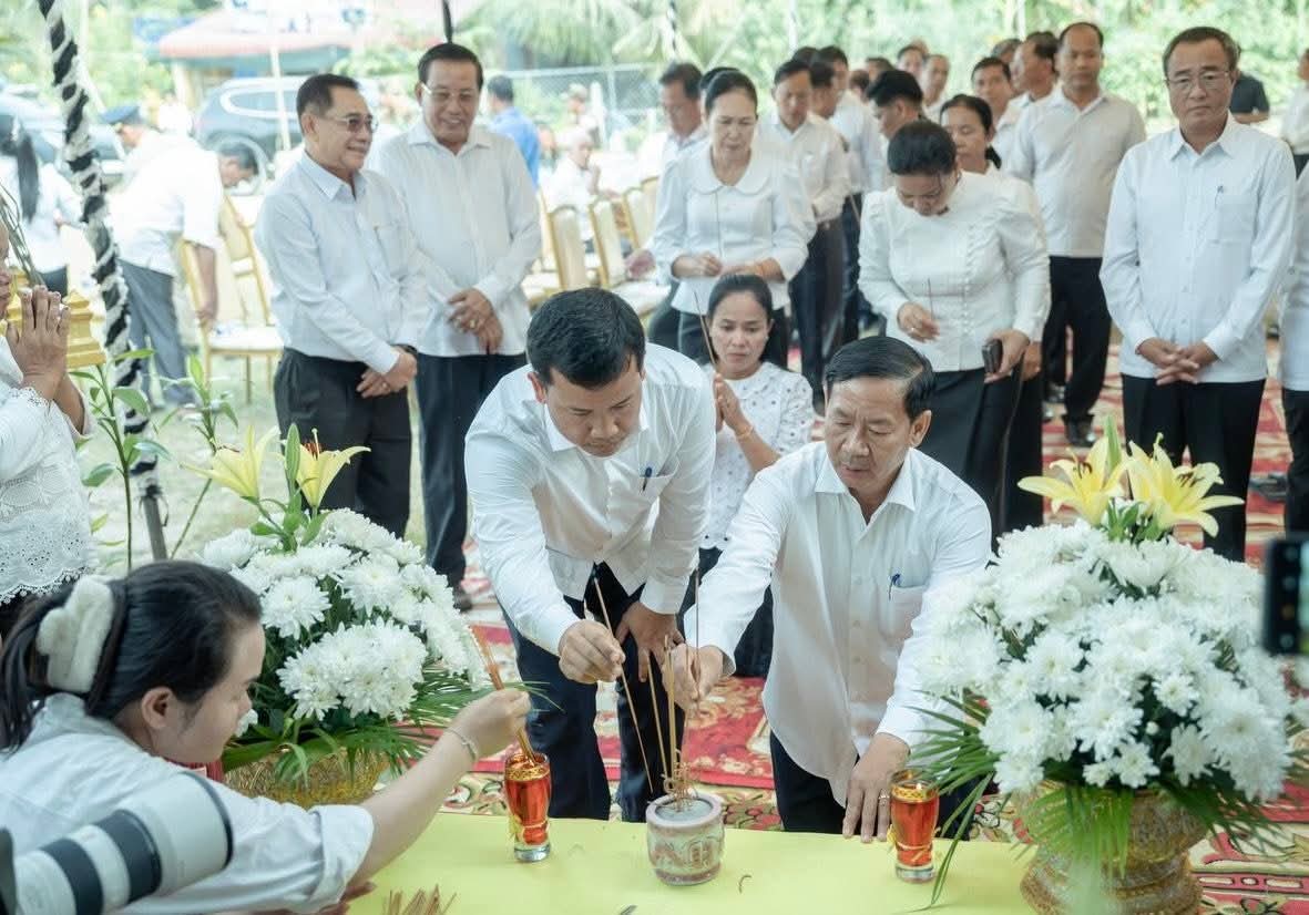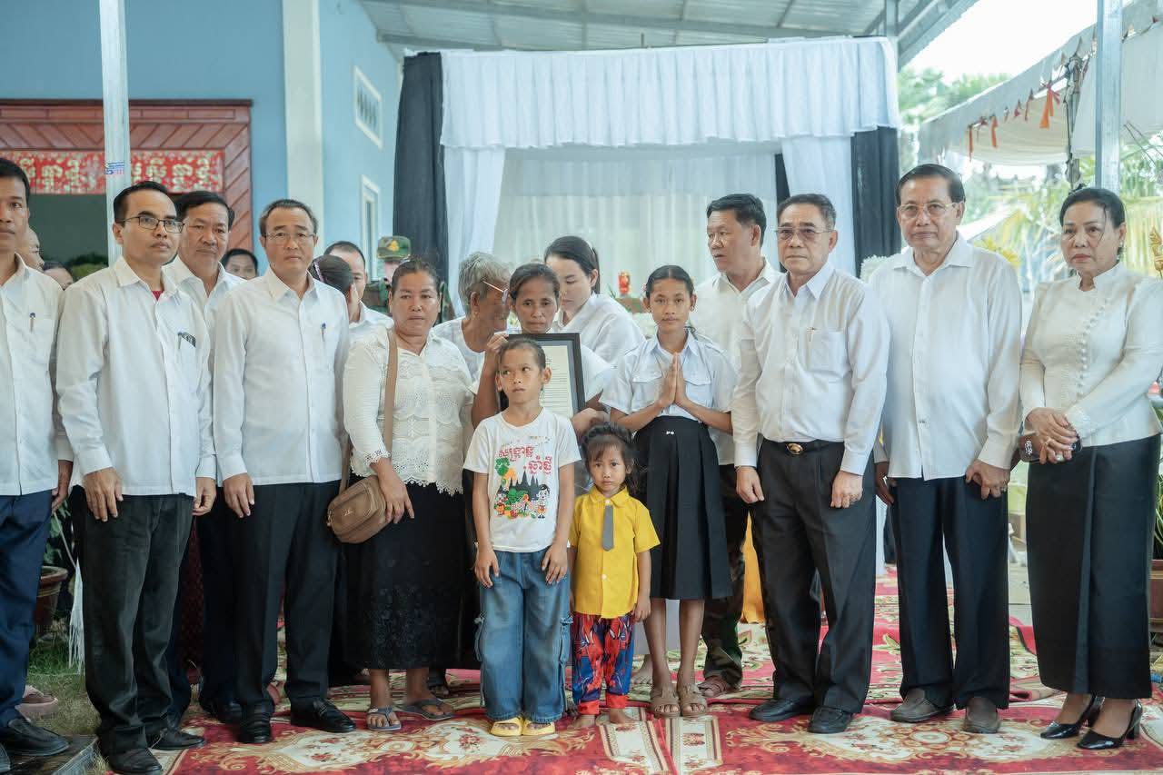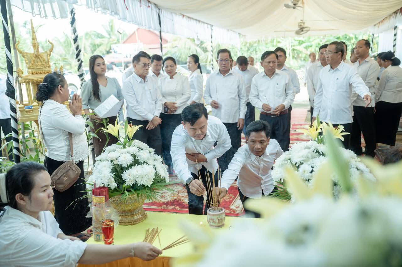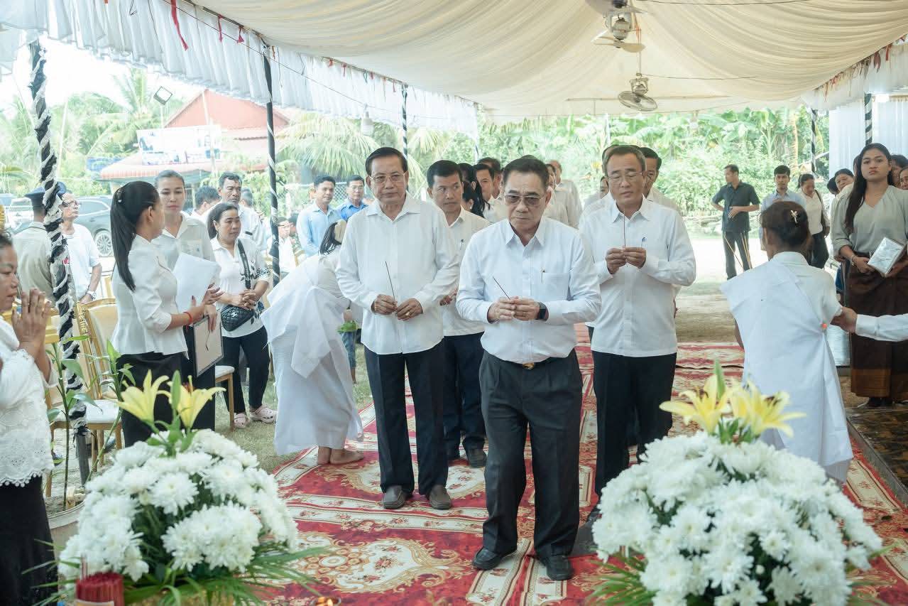 (ព្រៃវែង) :រសៀលថ្ងៃព្រហស្បតិ៍ ៦កើត ខែស្រាពណ៍ ឆ្នាំម្សាញ់ សប្តស័ក ព.ស.២៥៦៩ ត្រូវនឹងថ្ងៃទី៣១ ខែកក្កដា ឆ្នាំ២០២៥ ឯកឧត្តម សួន សុម៉ាលីន អភិបាល នៃគណ:អភិបាលខេត្តព្រៃវែងរួមជាមួយថ្នាក់ដឹកនាំខេត្ត បានអញ្ជើញអមដំណើរ ឯកឧត្តម អ៊ូ វណ្ណា អនុរដ្ឋលេខាធិការក្រសួងមហាផ្ទៃ និងជានាយករងខុទ្ទកាល័យប្រចាំការ តំណាងដ៏ខ្ពង់ខ្ពស់ ឯកឧត្តមអភិសន្តិបណ្ឌិត ស សុខា ឧបនាយករដ្ឋមន្ត្រី រដ្ឋមន្ត្រីក្រសួងមហាផ្ទៃ និងជាប្រធានក្រុមការងាររាជរដ្ឋាភិបាលចុះមូលដ្ឋានខេត្តព្រៃវែង អញ្ជើញចូលរួមគោរពវិញ្ញាណក្ខន្ធសព លោកអនុសេនីយ៍ត្រី សំរិត ព្រី វីរកងទ័ពជួរមុខ ដែលបានពលីជីវិតក្នុងបុព្វហេតុការពារបូរណភាពទឹកដី នៅសមរភូមិទិសប្រាសាទតាមាន់ធំ ក្នុងខេត្តឧត្តរមានជ័យ ដែលពិធីបុណ្យប្រារព្ធធ្វើនៅគេហដ្ឋាននៃសព ស្ថិតនៅភូមិកគោ ឃុំបន្ទាយចក្រី ស្រុកព្រះស្ដេច ខេត្តព្រៃវែង។