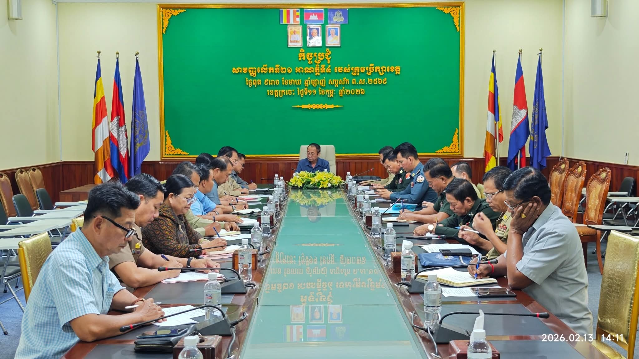 ខេត្តក្រចេះ: នារសៀលថ្ងៃសុក្រ ទី១៣ ខែកុម្ភៈ ឆ្នាំ២០២៦ ឯកឧត្តម វ៉ា ថន អភិបាលខេត្ត និងជាប្រធានគណៈបញ្ជាការឯកភាពរដ្ឋបាលខេត្ត អញ្ជើញដឹកនាំកិច្ចប្រជុំគណៈបញ្ជាការឯកភាពរដ្ឋបាលខេត្ត ស្តីពីការទប់ស្កាត់ និងបង្ក្រាបបទល្មើសឆបោកតាមប្រព័ន្ធបច្ចេកវិទ្យា (Online Scame), ការពង្រឹងការថែរក្សាសន្តិសុខ សណ្តាប់សាធារណៈ និងសុវត្ថិភាពសង្គមក្នុងខេត្ត (ចោរកម្ម, គ្រឿងញៀន ក្មេងទំនើង) និង ការការពារសន្តិសុខសណ្តាប់ធ្នាប់នៅតាមតំបន់រមណីយដ្ឋានទេសចរណ៍ និងការសម្រួលចរាចរណ៍នៅក្នុងឱកាសបុណ្យចូលឆ្នាំថ្មីប្រពៃណីជាតិចិន-វៀតណាម នៅថ្ងៃទី១៧-១៨-១៩ ខែកុម្ភៈ ឆ្នាំ២០២៦ នៅសាលប្រជុំកាំពីសាលាខេត្ត៕