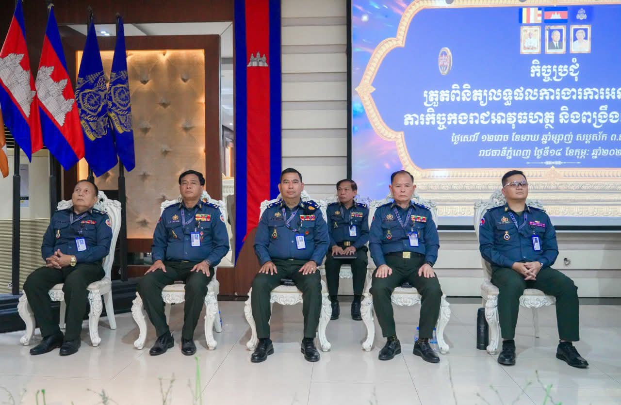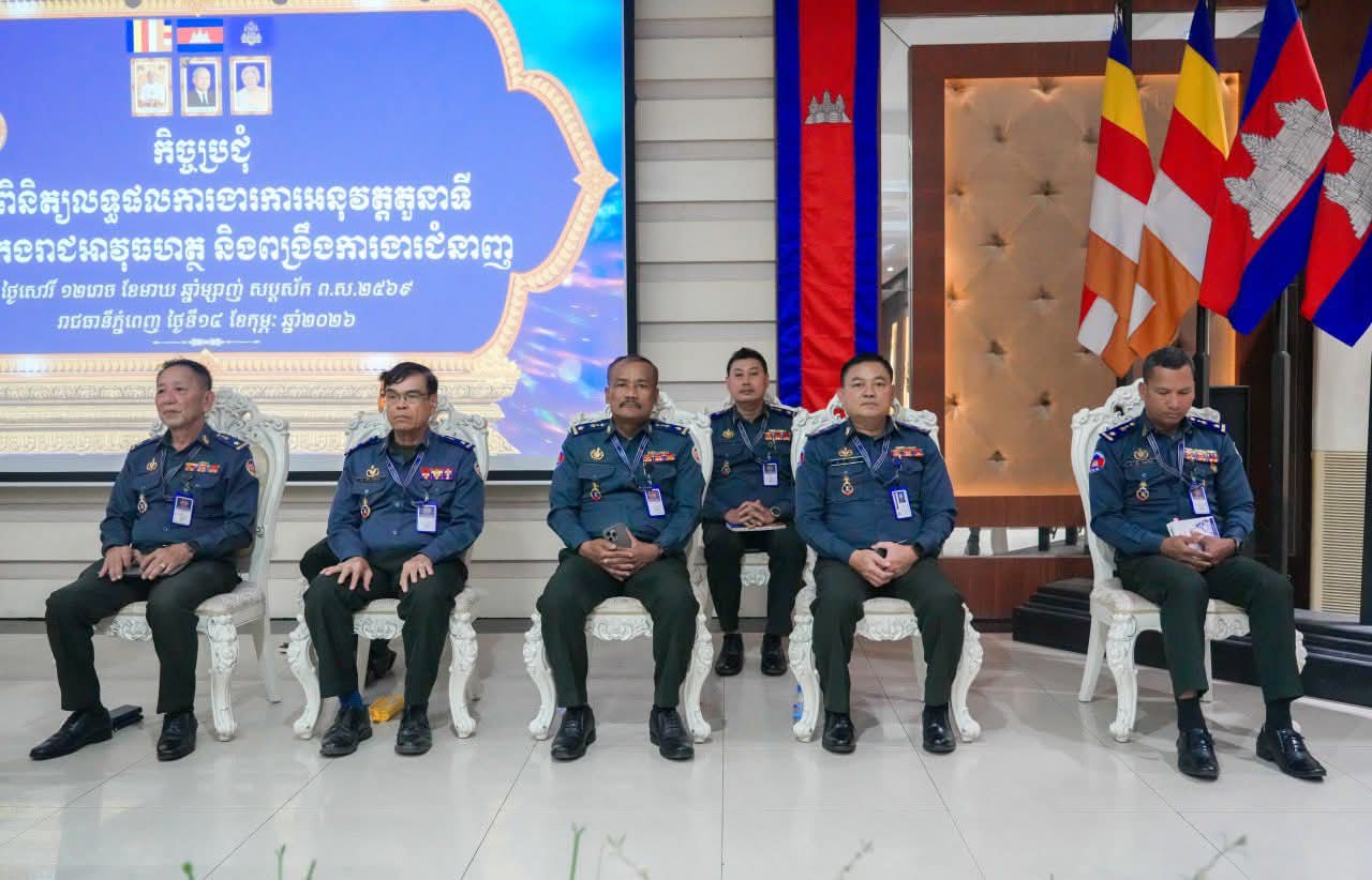 (ភ្នំពេញ) :នារសៀល ថ្ងៃទី១៤ ខែកុម្ភៈ ឆ្នាំ២០២៦ នៅបញ្ជាការដ្ឋានកងរាជអាវុធហត្ថរាជធានីភ្នំពេញ លោកឧត្តមសេនីយ៍ឯក រ័ត្ន ស្រ៊ាង មេបញ្ជាការរង កងរាជអាវុធហត្ថលើផ្ទៃប្រទេស ជាមេបញ្ជាការ កងរាជអាវុធហត្ថរាជធានីភ្នំពេញ បានអញ្ជើញជាអធិបតីក្នុងកិច្ចប្រជុំត្រួតពិនិត្យលទ្ធផលការងារការអនុវត្តតួនាទី ភារកិច្ចកងរាជអាវុធហត្ថ និងពង្រឹងការងារជំនាញ ដោយមានការចូលរួមពី លោកមេបញ្ជាការរង និងជានាយសេនាធិការ លោកមេបញ្ជាការរង នាយសេនាធិការរង ប្រធានមន្ទីរ នាយ-នាយរងការិយាល័យ លោកមេបញ្ជាការ មូលដ្ឋានអាវុធហត្ថខណ្ឌទាំង១៤ និងលោកមេបញ្ជាការវរសេនាតូច ព្រមទាំង នាយ-នាយរង អាវុធហត្ថពាក់ព័ន្ធជាច្រើនរូបទៀតផងដែរ។