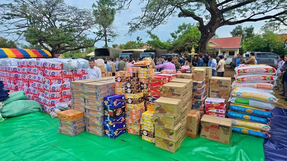 អំណោយដែលរដ្ឋបាលខេត្តកំពង់ចាម បាននាំយកមកផ្តល់ជូន នាពេលនេះរួមមាន ៖ អង្ក ថ្នាំពេទ្យ មី ត្រីងៀត ត្រីខកំប៉ុង ខ្ទឹមសរ ទឹកត្រី ទឹកស៊ីអៀវ ទឹកបរិសុទ្ធ ភេសជ្ជៈ ភូយមុង សំលៀកបំពាក់ និងសម្ភារប្រើប្រាស់ផ្សេងៗ រួមនឹងថវិកា ផងដែរ។