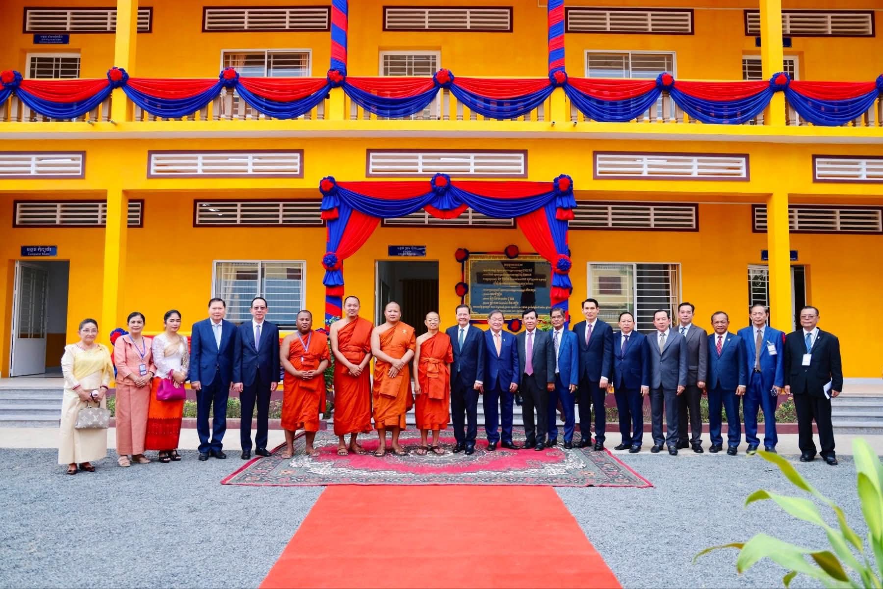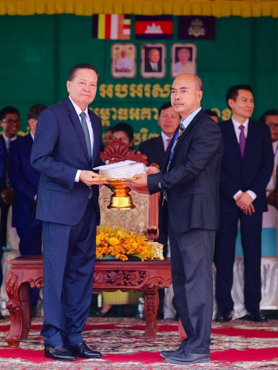 (កំពង់ចាម)៖ នៅព្រឹកថ្ងៃទី២៣ ខែកុម្ភៈ ឆ្នាំ២០២៦ នេះ ឯកឧត្តម អ៊ុន ចាន់ដា អភិបាលនៃគណៈអភិបាលខេត្តកំពង់ចាម និង ឯកឧត្តម ខ្លូត ផន ប្រធានក្រុមប្រឹក្សាខេត្ត បានអញ្ជើញចូលរួម ពិធីសម្ពោធអាគារសិក្សាថ្មី ចំនួនមួយខ្នង និងចែកសញ្ញាបត្រ បរិញ្ញាបត្រ/បរិញ្ញាបត្រជាន់ខ្ពស់ ចំនួន៤១៣ អង្គ/នាក់ នៃពុទ្ធិកសាកលវិទ្យាល័យ សម្ដេចអគ្គមហាសេនាបតីតេជោ ហ៊ុន សែន ក្រោមអធិបតីភាព ឯកឧត្តមសន្តិបណ្ឌិត នេត សាវឿន តំណាងដ៏ខ្ពង់ខ្ពស់សម្ដេចមហាបវរធិបតី ហ៊ុន ម៉ាណែត នាយករដ្ឋមន្ត្រីនៃព្រះរាជាណាចក្រកម្ពុជា ស្ថិតនៅក្នុងក្រុងកំពង់ចាម ខេត្តកំពង់ចាម។