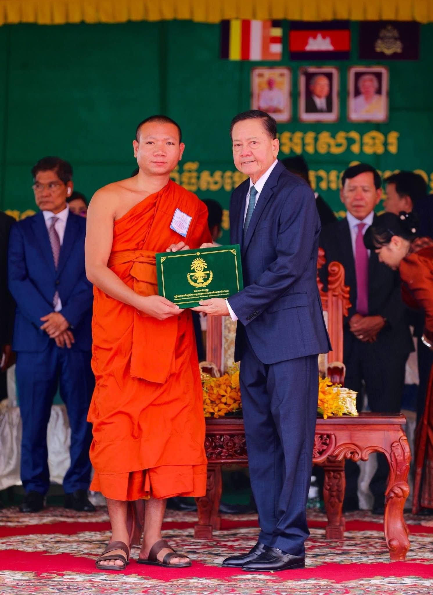ឯកឧត្តមសន្តិបណ្ឌិត បានមានប្រសាសន៍បន្ថែមថា អាគារសិក្សាថ្មី នៃពុទ្ធិកសាកលវិទ្យាល័យនេះ បានកើតឡើងដោយសារ ការរួមគ្នានៃការបរិច្ចាគ កើតចេញពីការទទួលខុសត្រូវ ទើបធ្វើឲ្យមានសំណង់ថ្មីដែលត្រូវសម្ពោធដាក់ឲ្យប្រើប្រាស់ជាផ្លូវការដូចថ្ងៃនេះ។ ដូច្នេះសូមឱ្យខាងពុទ្ធិកសាកលវិទ្យាល័យមេត្តាដឹកនាំឲ្យដំណើរការបានល្អបន្តទៀត ។ ទន្ទឹមនឹងនេះ ដូចជាក្នុងពិធីបុណ្យផ្សេងៗ សូមឲ្យព្រះសង្ឃជួយខាងទេសនាអប់រំផ្ដល់ឱវាទដល់ពុទ្ធបរិស័ទ ជាពិសេសយុវជន ឱ្យដើរលើផ្លូវល្អ ដើម្បីរួមចំណែកជួយដល់សង្គមជាតិរបស់យើង៕