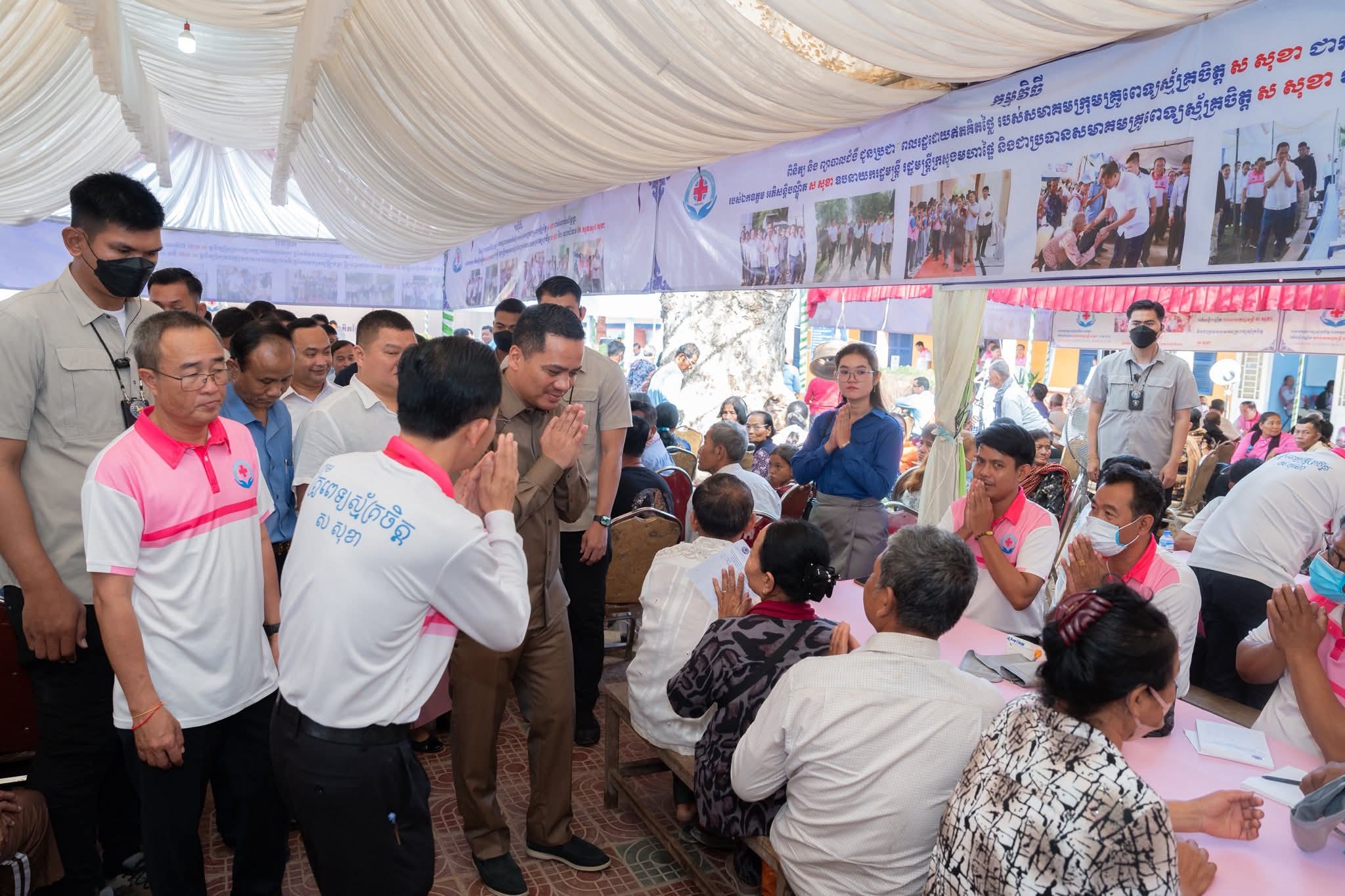 ក្នុងនាមរដ្ឋបាលខេត្ត និង ឯកឧត្តម សួន សុម៉ាលីន អភិបាលខេត្តព្រៃវែង សូមគោរពថ្លែងអំណរគុណយ៉ាងជ្រាលជ្រៅបំផុតចំពោះ ឯកឧត្តមអភិសន្តិបណ្ឌិត ដែលបានឆ្លៀតឱកាសដ៏មមាញឹក និងមានតម្លៃអញ្ជើញចូលរួមជាគណៈអធិបតីដ៏ខ្ពង់ខ្ពស់ និងរៀបចំក្រុមគ្រូពេទ្យស្ម័គ្រចិត្ត ចុះមកពិនិត្យ ព្យាបាលជំងឺជូនដល់ប្រជាពលរដ្ឋដោយឥតគិតថ្លៃ នៅក្នុងស្រុកបាភ្នំនាពេលនេះ។
