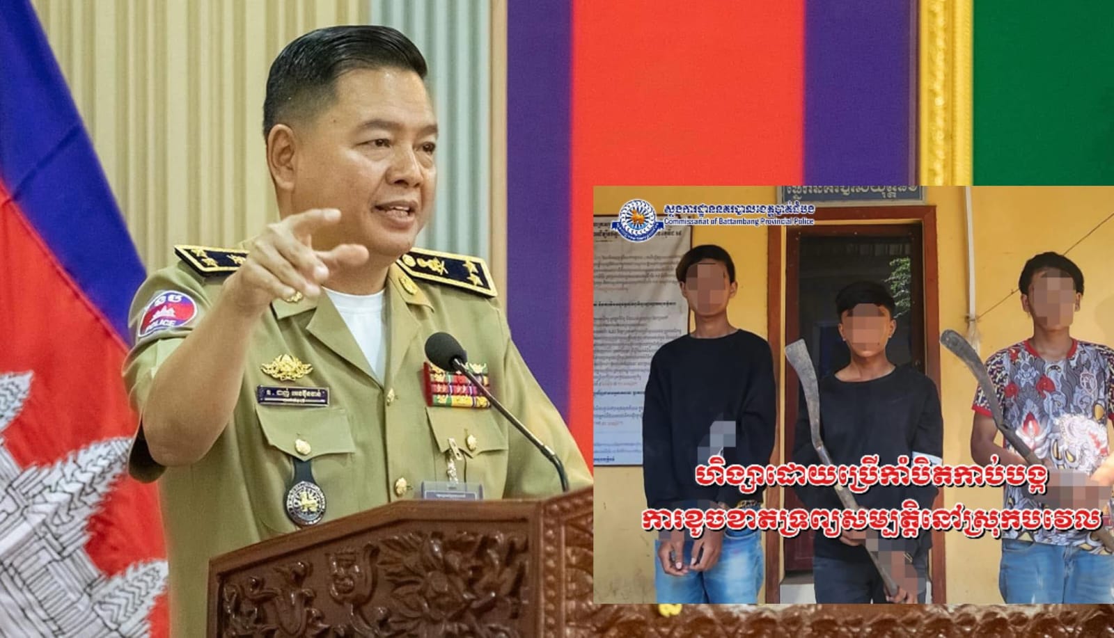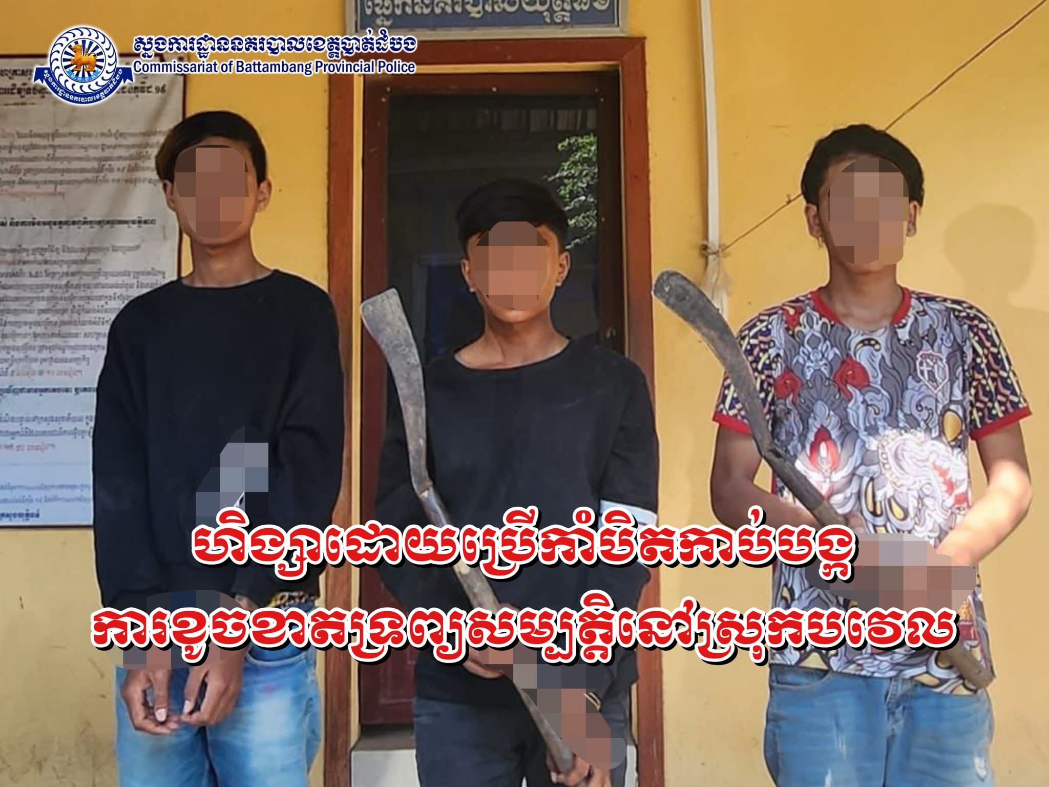 ខេត្តបាត់ដំបង: ព្រឹកព្រលឹមថ្ងៃទី២៨ខែកុម្ភៈ ឆ្នាំ២០២ ៦ ជាថ្ងៃដាច់ខែចាស់ទៅហើយ វេលា ម៉ោង៧និង១០នាទីស្របតាមអនុសាស ន៍ដ៏ខ្ពង់ខ្ពស់របស់ឯកឧត្តម នាយឧត្តមសេនីយ៍ ស ថេត អគ្គស្នងការនគរ បា ល ជាតិ និងក្រោមបញ្ជាដឹកនាំរបស់លោកឧត្តមសេនីយ៍ទោ ដាញ់ អេងប៊ុន ចាន់ ស្នងការនៃស្នងការដ្ឋាននគរបាលខេត្តបាត់ដំបង លោកវរសេនីយ៍ឯក សុខ សារិន អធិការនគរបាលស្រុកបវេ ល បានដឹកនាំកម្លាំងដោយមានកម្លាំង ប៉ុស្តិ៍នគរបាល រដ្ឋបាលបវេល ធ្វើការ នាំ ខ្លួនយុវជនចំនួន ០៣នាក់ដែលប្រ ដាប់ដោយក-ាំបិ-តខ្វែវផង នាំមកកាន់អធិការដ្ឋាននគរបាលស្រុកបន្ទាប់ពីសមត្ថកិច្ចបានកំណត់មុខសញ្ញាពួកគេរួចរាល់ដែលពួកគេទាំង០៣នាក់ នោះគឺ៖