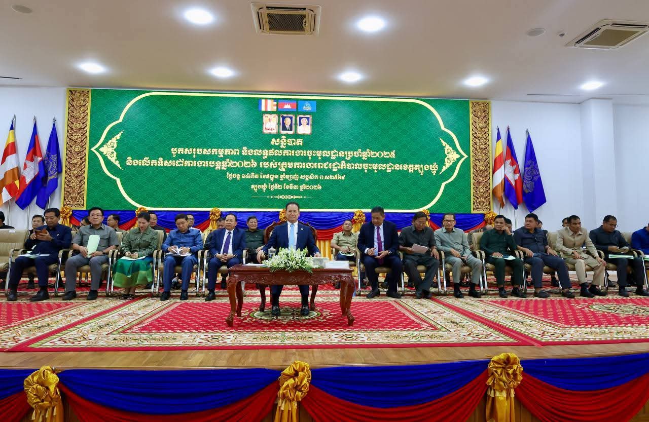 ខេត្តត្បូងឃ្មុំ: ក្រុមការងាររាជរដ្ឋាភិបាលចុះមូលដ្ឋានខេត្តត្បូងឃ្មុំគ្រប់ថ្នាក់ និងអាជ្ញាធរ បន្តពង្រឹងការឆ្លើយតបនិងបម្រើប្រជាពលរដ្ឋ បង្កើនសេដ្ឋកិច្ចមូលដ្ឋាន និងពង្រឹងការងារសន្តិសុខ សណ្តាប់ធ្នាប់សាធារណៈ ឱ្យបានល្អប្រសើរថែមទៀត ដើម្បីការអភិវឌ្ឍប្រកបដោយចីរភាព។ នេះជាប្រសាសន៍លើកឡើង របស់ឯកឧត្តមបណ្ឌិត អ៊ាង សុផល្លែត ប្រធានក្រុមការងាររាជរដ្ឋាភិបាលចុះមូលដ្ឋានខេត្តត្បូងឃ្មុំ ក្នុងឱកាសអញ្ជើញជាអធិបតីនៃកិច្ចប្រជុំបូកសរុបលទ្ធផលការងារ ឆ្នាំ២០២៥ និងទិសដៅការងារឆ្នាំ២០២៦ របស់ក្រុមការងាររាជរដ្ឋាភិបាលចុះមូលដ្ឋានខេត្តត្បូងឃ្មុំ នាព្រឹកថ្ងៃទី២ ខែមីនា ឆ្នាំ២០២៦ នៅសាលាខេត្តត្បូងឃ្មុំ ។