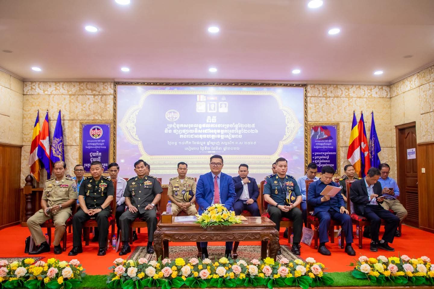 សៀមរាប: នៅព្រឹកថ្ងៃចន្ទ ១៤កើត ខែផល្គុន ឆ្នាំម្សាញ់ សប្តស័ក ព.ស.២៥៦៩ ត្រូវនឹងថ្ងៃទី២ ខែមីនា ឆ្នាំ២០២៦ លោក សំកុល សុចិត្រា អភិបាលរងខេត្ត តំណាងដ៏ខ្ពង់ខ្ពស់ ឯកឧត្តម ប្រាក់ សោភ័ណ អភិបាលនៃគណៈអភិបាលខេត្តសៀមរាប បានអញ្ជើញចូលរួមជាគណៈអធិបតីនៅក្នុងកិច្ចប្រជុំបូកសរុបលទ្ធផលការងារប្រចាំឆ្នា២០២៥ និងផ្សព្វផ្សាយទិសដៅអនុវត្តការងារឆ្នាំ២០២៦ របស់កងរាជអាវុធហត្ថខេត្តសៀមរាប ដែលមានការអញ្ជើញចូលរួមពីកងកម្លាំងទាំងបីប្រភេទ មន្ទីរអង្គភាពជុំវិញខេត្ត អភិបាលក្រុង ស្រុកទាំង១៣ ក្នុងខេត្ត ចូលរួមផងដែរ ។