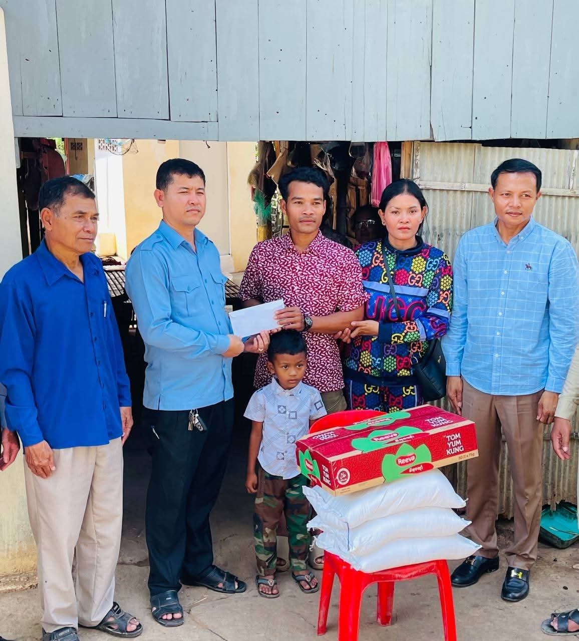 ២. លោក ស៊ឺ ដារ៉ូ (អាយុ ៣៣ឆ្នាំ) មកពីអង្គភាព កងពលលេខ១២៨ (ឈរជើងនៅទិសមុំបី) មានទីលំនៅភូមិព្រៃដើមថ្នឹងទី៣ ឃុំព្រៃដើមថ្នឹង អំណោយទទួលបាន អង្ករ ៣០គីឡូក្រាម មីខ្លាឃ្មុំ១កេស ត្រីខ១យួរ និងថវិកាចំនួន ៥០០,០០០រៀល។