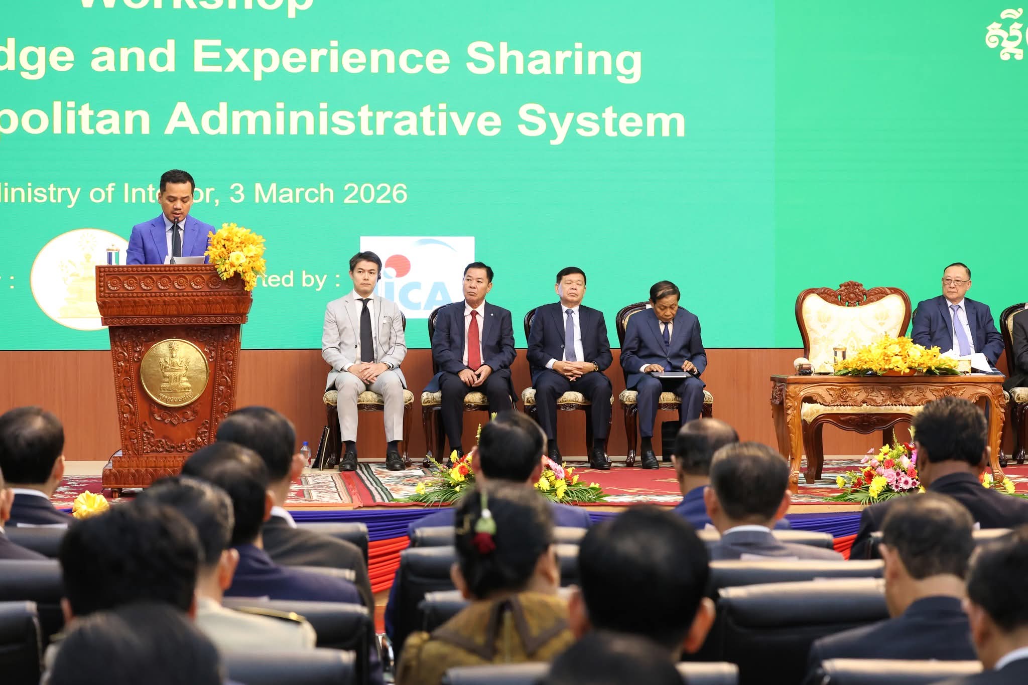 ថ្លែងក្នុងពិធីបើកសិក្ខាសាលា ស្តីពីការចែករំលែកចំណេះដឹង និងបទពិសោធនៃប្រព័ន្ធរដ្ឋបាលម៉េត្រូប៉ូលីតែន នាព្រឹកថ្ងៃទី៣ ខែមីនា ឆ្នាំ២០២៦ នៅទីស្តីការក្រសួងមហាផ្ទៃ ឯកឧត្តមអភិសន្តិបណ្ឌិត ឧបនាយករដ្ឋមន្ត្រី បានគូសបញ្ជាក់ថា គ្រប់រាជធានី-ខេត្ត ពីនេះទៅមុខអាចនឹងប្រែក្លាយទៅជារាជធានី-ខេត្តដែលមានប្រព័ន្ធម៉េត្រូប៉ូលីតែន ដើម្បីធានាបាននូវការគ្រប់គ្រងដែនដី ការរៀបចំផែនការអភិវឌ្ឍន៍ និងការផ្តល់សេវាសាធារណៈជូនប្រជាពលរដ្ឋឱ្យកាន់តែមានប្រសិទ្ធភាព តម្លាភាព និងឆាប់រហ័ស។