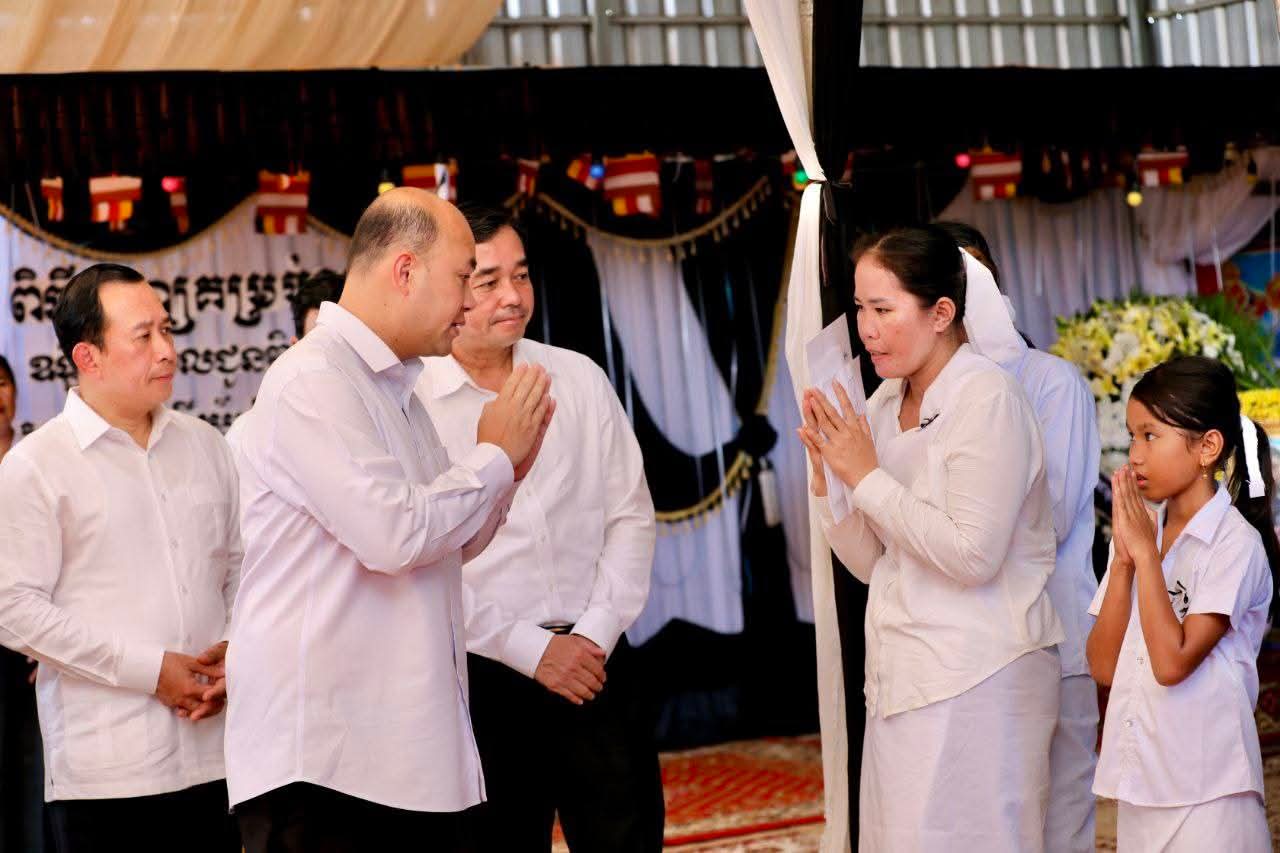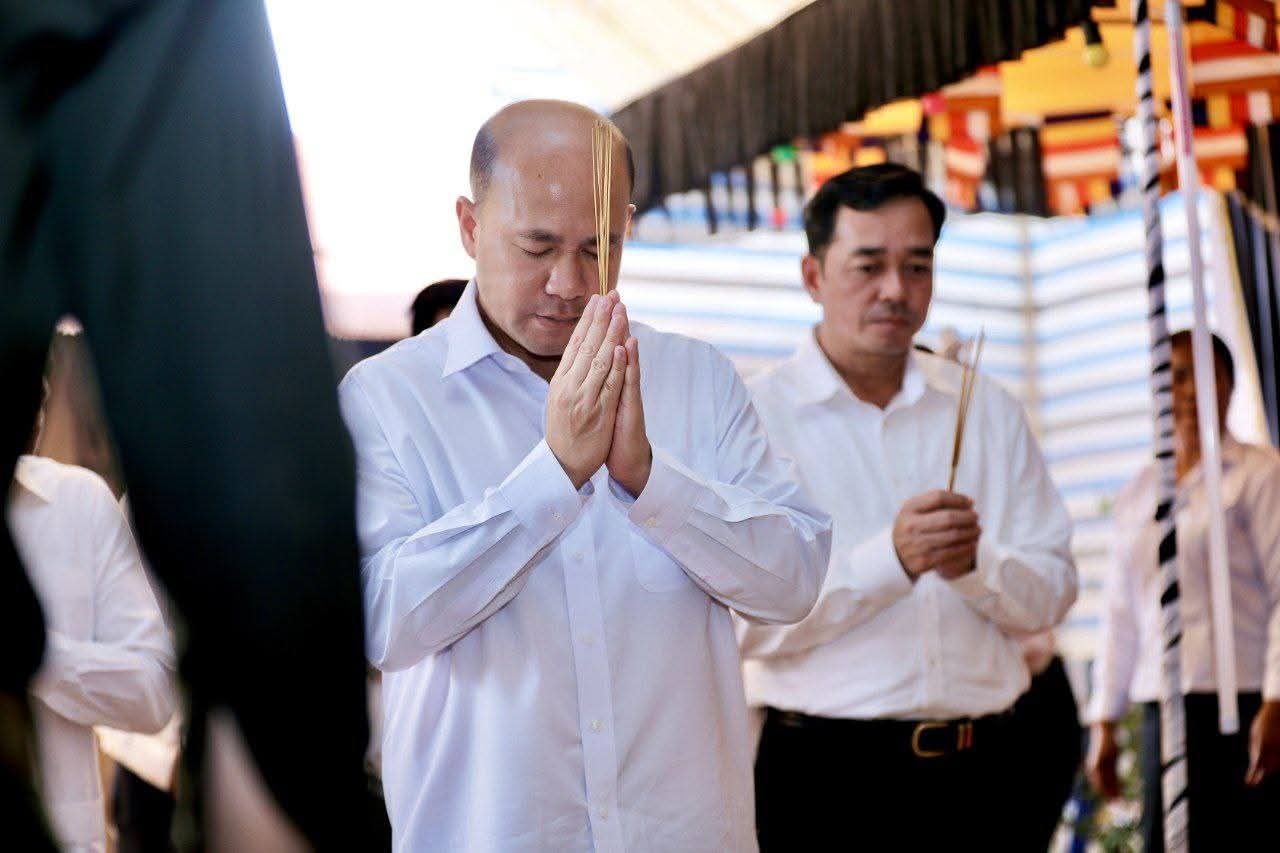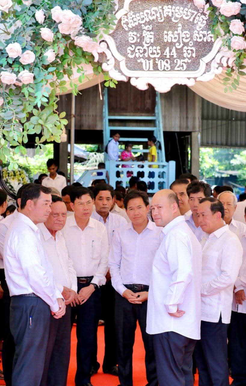 (កំពង់ចាម) :នៅរសៀលថ្ងៃទី៣១ ខែកក្កដា ឆ្នាំ២០២៥ នេះ ឯកឧត្តម អ៊ុន ចាន់ដា អភិបាលនៃគណៈអភិបាលខេត្តកំពង់ចាម និង ឯកឧត្តម ខ្លូត ផន ប្រធានក្រុមប្រឹក្សាខេត្ត បានដឹកនាំប្រតិភូខេត្ត អញ្ជើញអមដំណើរ ឯកឧត្តម ហ៊ុន ម៉ានី ឧបនាយករដ្ឋមន្ត្រី រដ្ឋមន្ត្រីក្រសួងមុខងារសាធារណៈ ចូលរួមគោរពវិញ្ញាណក្ខន្ធ លោកវរសេនីយ៍ សៀង សាត មេបញ្ជាការរងវរសេនាតូច លេខ៣៩៤ កងពលតូចអន្តរាគមន៍លេខ៩នៃកងយោធពលខេមភូមិន្ទ ដែលបានពលីក្នុងសមរភូមិ។ ពិធីបុណ្យសពបានប្រារព្ធទៅនៅឃុំតាប្រុក ស្រុកចំការលើ ខេត្តកំពង់ចាម។ ជាការលាគ្នាជាលើកចុងក្រោយ និងសូមបួងសួង ឧទ្ទិសកុសលដល់វិញ្ញាណក្ខ័ន្ធ វីរសេនីយ៍ សៀង សាត សូមបានទៅកាន់សុគតិភពកុំបីឃ្លៀងឃ្លាត។