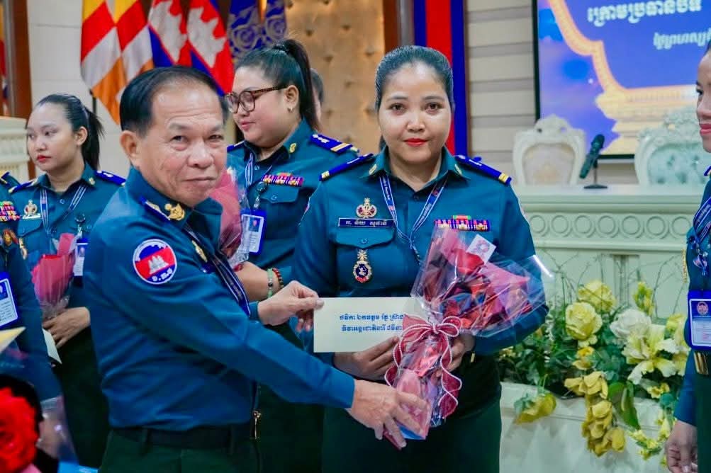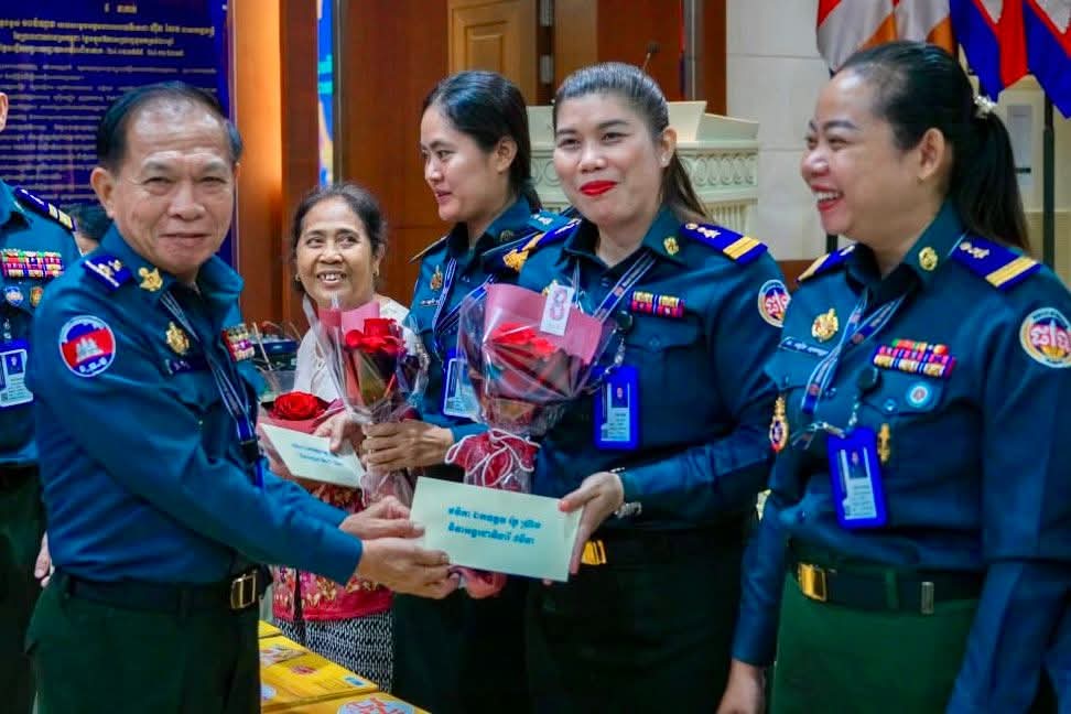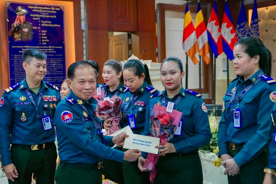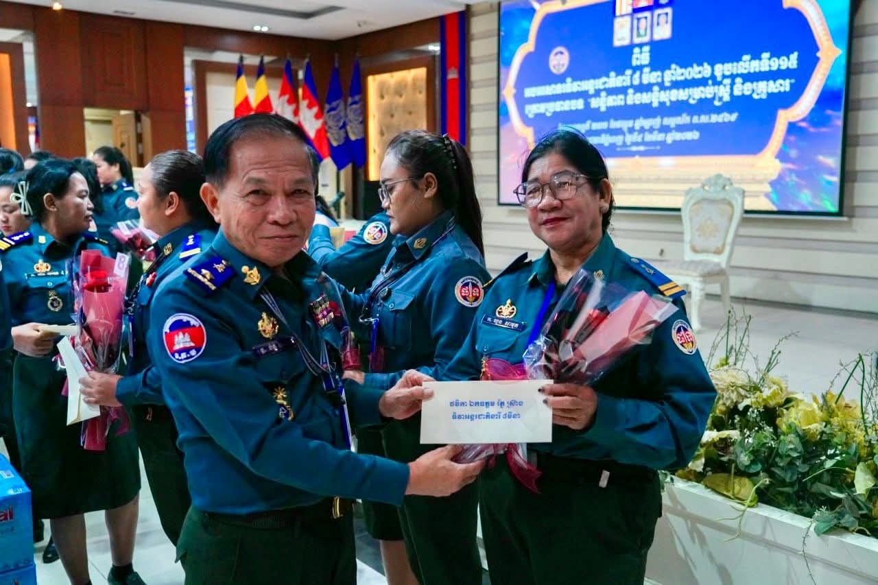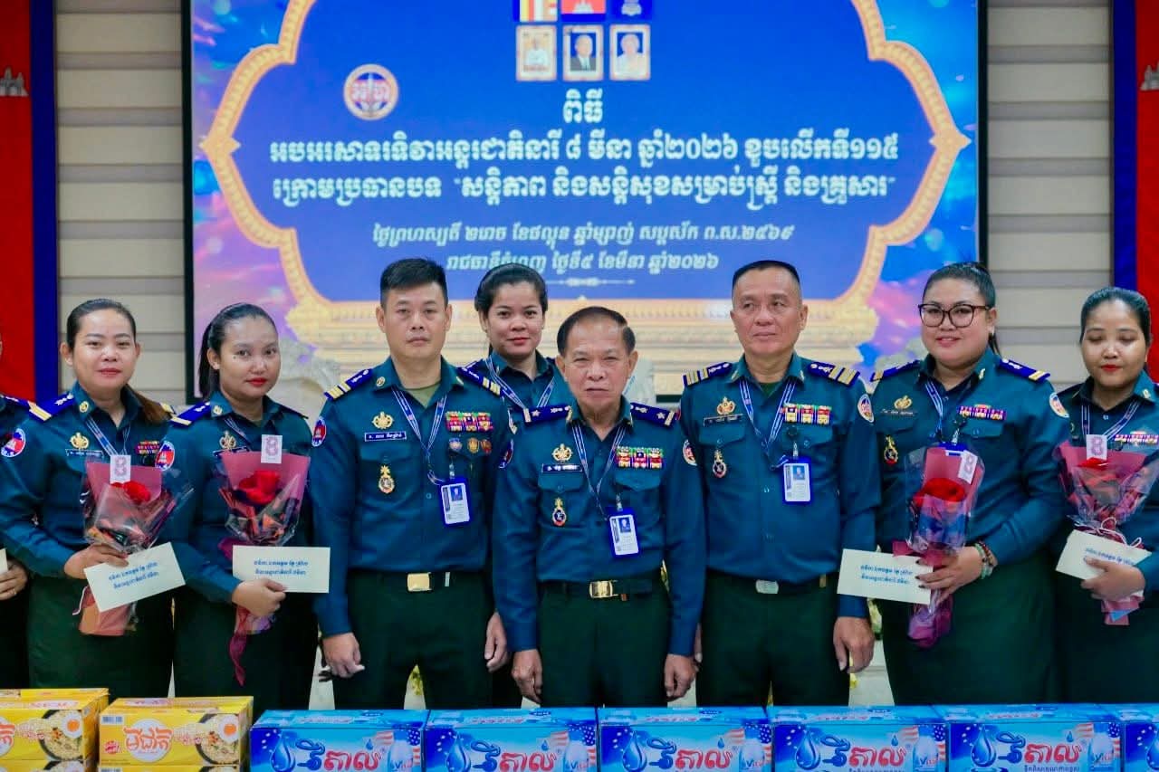 ភ្នំពេញ: នាព្រឹក ថ្ងៃទី០៥ ខែមីនា ឆ្នាំ២០២៦ នៅបញ្ជាការដ្ឋាន កងរាជអាវុធហត្ថរាជធានីភ្នំពេញ លោកឧត្តមសេនីយ៍ត្រី ច័ន្ទ វាសនា មេបញ្ជាការរង កងរាជអាវុធហត្ថរាជធានីភ្នំពេញ ទទួលការងារកសាងកម្លាំង តំណាង លោកឧត្តមសេនីយ៍ឯក រ័ត្ន ស្រ៊ាង មេបញ្ជាការរង កងរាជអាវុធហត្ថលើផ្ទៃប្រទេស ជាមេបញ្ជាការ កងរាជអាវុធហត្ថរាជធានីភ្នំពេញ បានជួបសំណេះសំណាល ជាមួយអាវុធហត្ថនារី នៃកងរាជអាវុធហត្ថរាជធានីភ្នំពេញ និងបុគ្គលិកនារីបម្រើការងារក្នុងអង្គភាព សរុប២៨នាក់ ព្រមទាំងបាននាំយកអំណោយអនុស្សាវរីយ៍របស់ លោកឧត្តមសេនីយ៍ឯក រ័ត្ន ស្រ៊ាង ប្រគល់ជូនដល់នារីទាំង២៨នាក់ ដើម្បីសម្តែងការអបអរសាទរ ខួបលើកទី១១៥ ទិវាអន្តរជាតិនារី ៨មីនា ឆ្នាំ២០២៦ ក្រោមប្រធានបទ “សន្តិភាព និងសន្តិសុខសម្រាប់ស្ត្រី និងគ្រួសារ”។