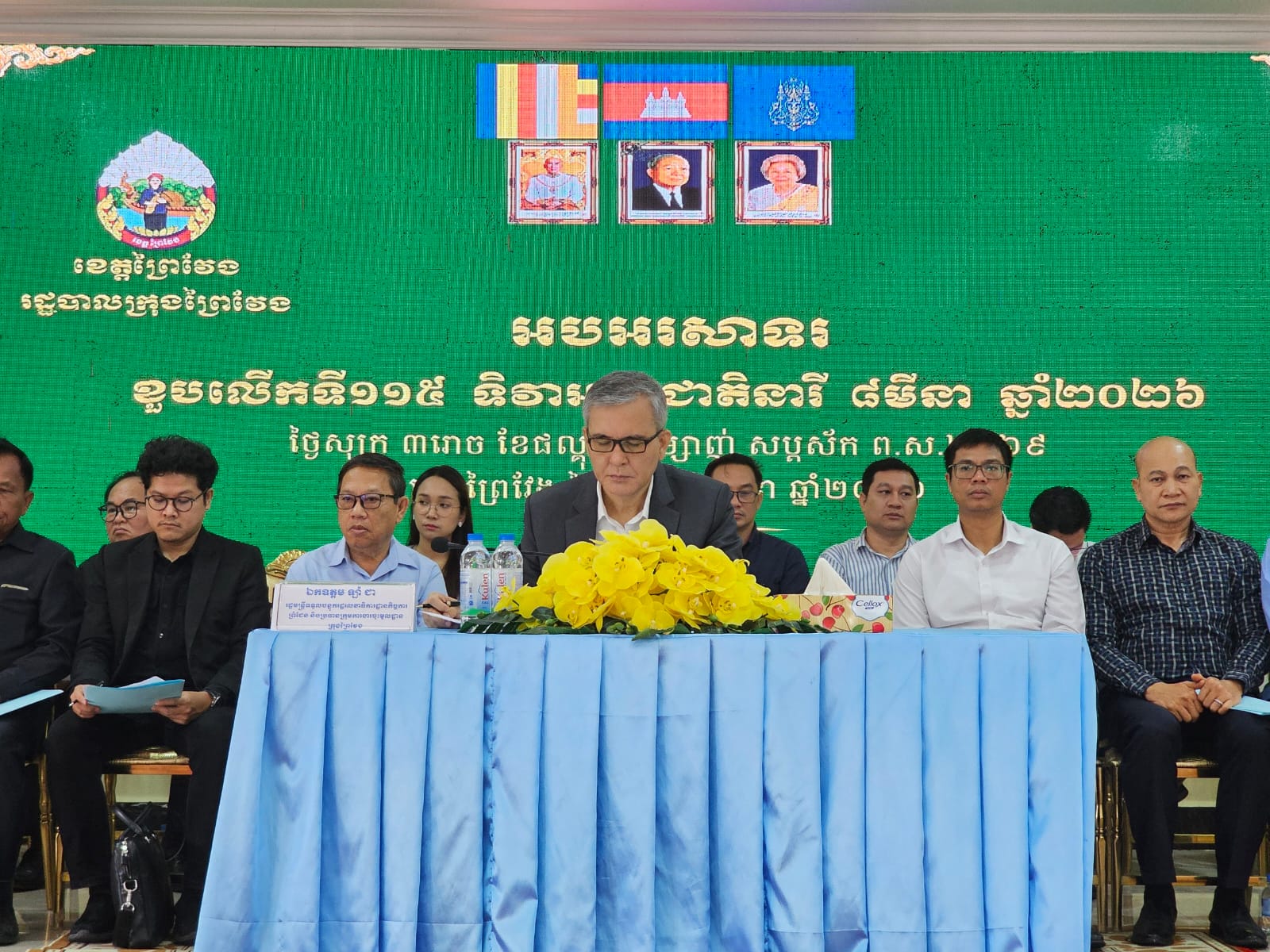 ខេត្តព្រៃវែង: នៅថ្ងៃទី ០៦ ខែមិនា ឆ្នាំ២០២៦ រដ្ឋបាលក្រុងព្រៃវែង បានប្រារព្ធ ខួបលើកទី ១១៥ ទិវាអន្តរជាតិនារី ៨ មីនា ២០២៦ ក្រោមអធិបតីភាព ឯកឧត្តម ឡាំ ជា រដ្ឋមន្ត្រីទទួលបន្ទុករដ្ឋលេខាធិការដ្ឋានកិច្ចការព្រំដែន និងជាប្រធានក្រុមការងាររាជរដ្ឋាភិបាលចុះមូលដ្ឋានក្រុងព្រៃវែង។
