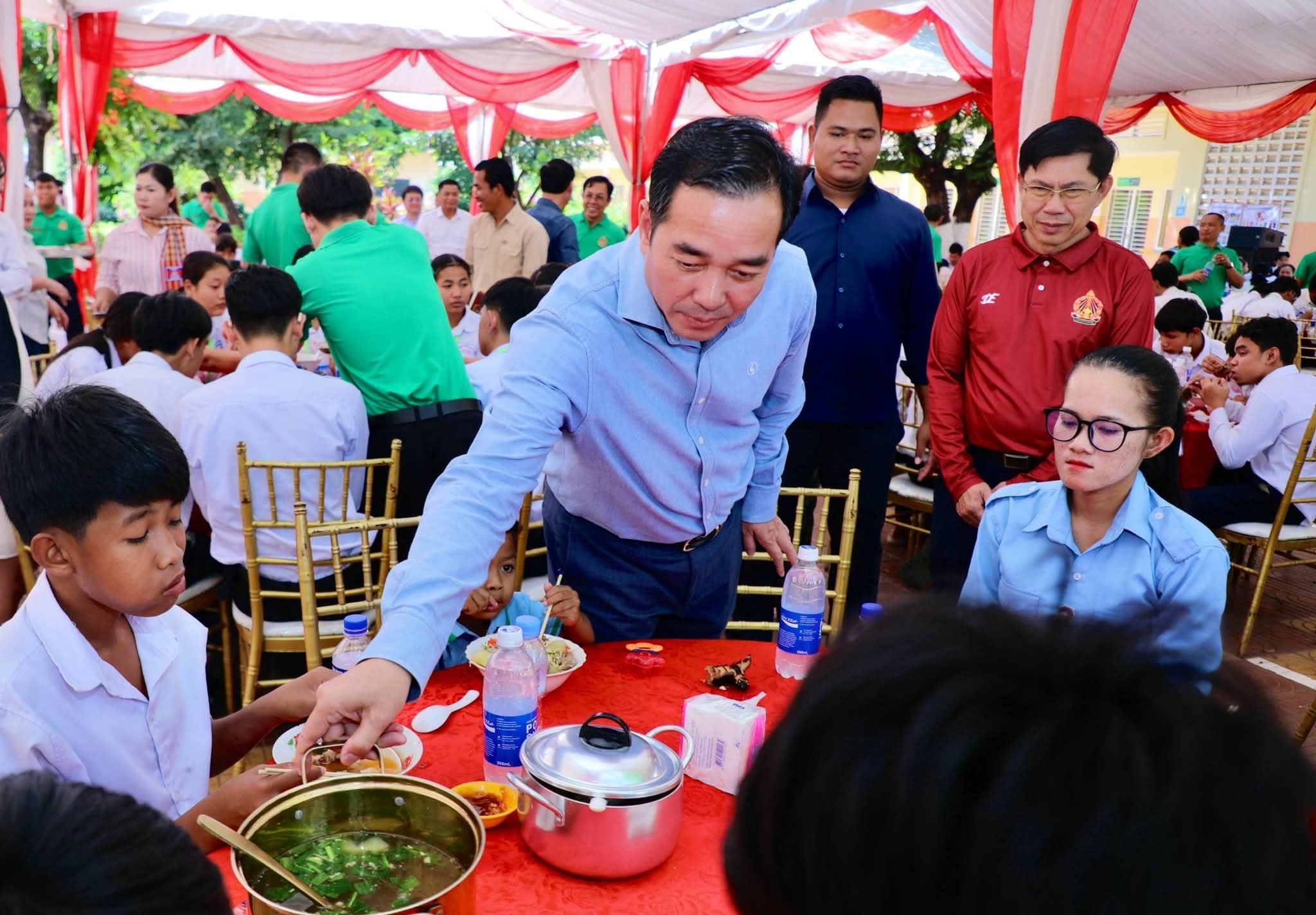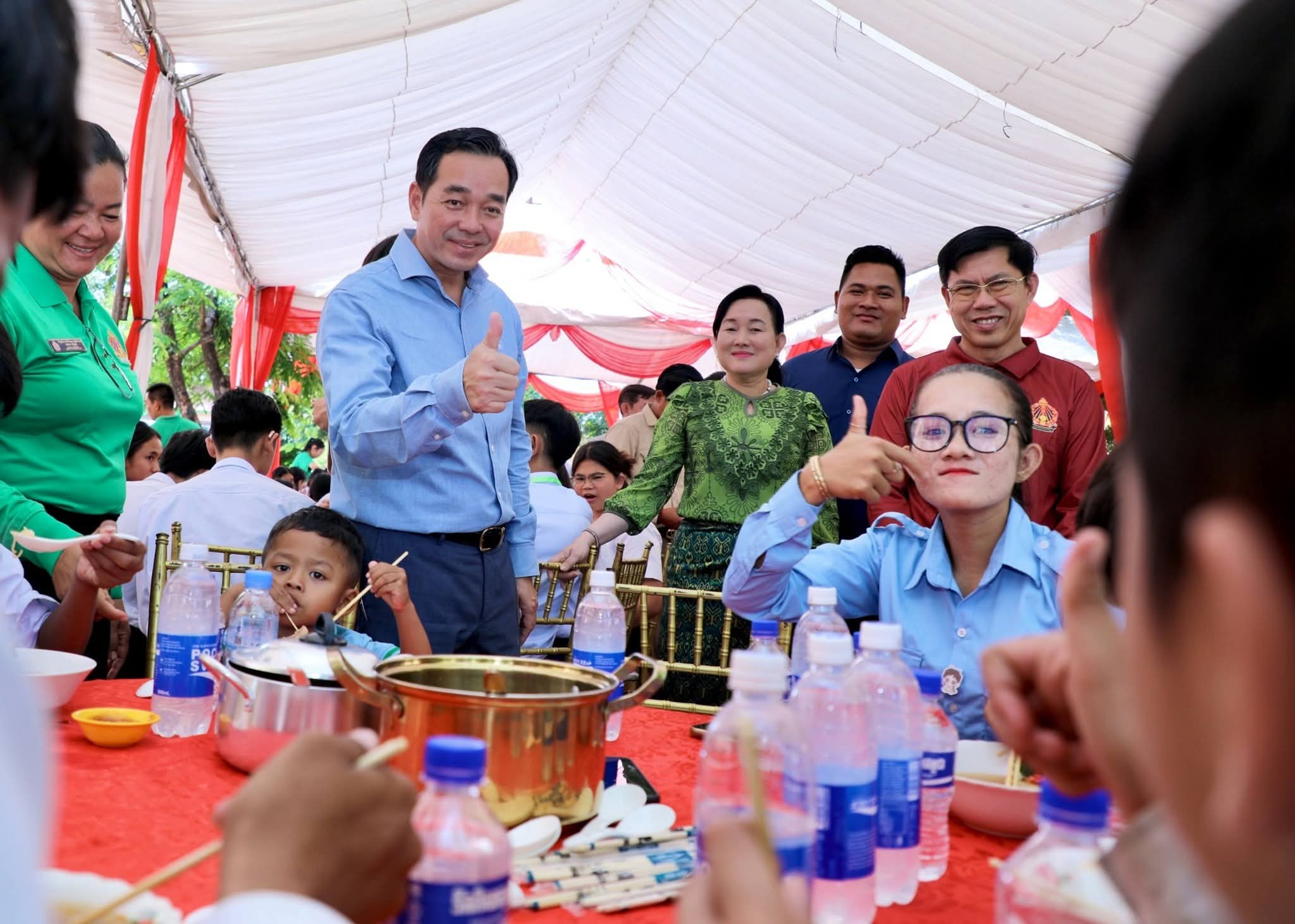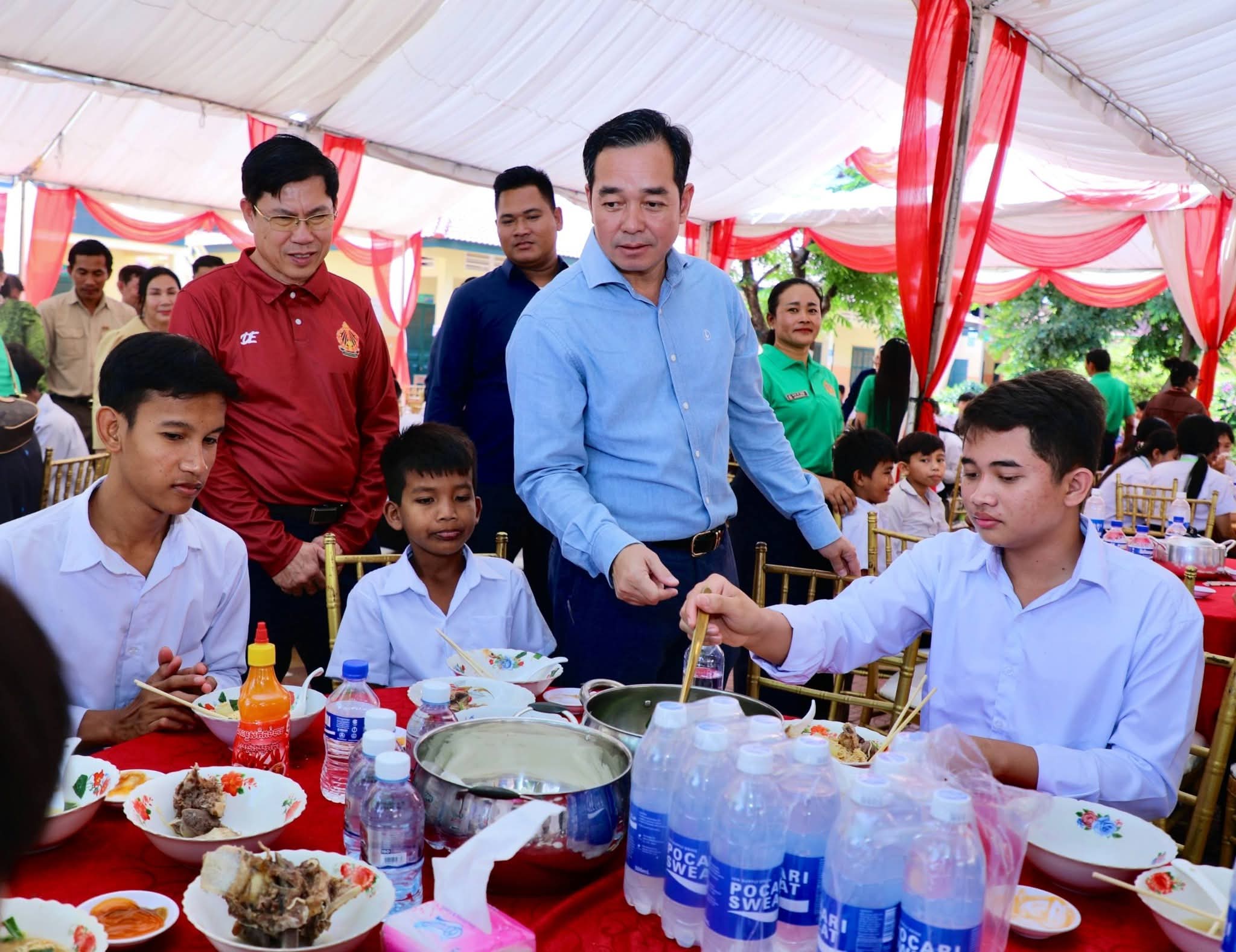 (កំពង់ចាម): អភិបាលនៃគណៈអភិបាលខេត្តកំពង់ចាម ឯកឧត្តម អ៊ុន ចាន់ដា បានលើកទឹកចិត្តដល់ សិស្សមានពិការភាព និងកុមារកំព្រា ឱ្យខិតខំជួយខ្លួនឯង ដោយពង្រឹងសមត្ថភាព និងការសិក្សា រៀនសូត្រ ថ្លែងបែបនេះក្នុងឱកាសជួបសំណេះសំណាល សួរសុខទុក្ខ និងពិសាអាហារសាមគ្គី ជាមួយកុមារពិការភ្នែក គថ្លង់ កំព្រា និងលោកគ្រូ អ្នកគ្រូ នៅវិទ្យាល័យអប់រំពិសេសកំពង់ចាម នា ព្រឹកថ្ងៃទី៨ ខែមិនា ឆ្នាំ២០២៦ ។
