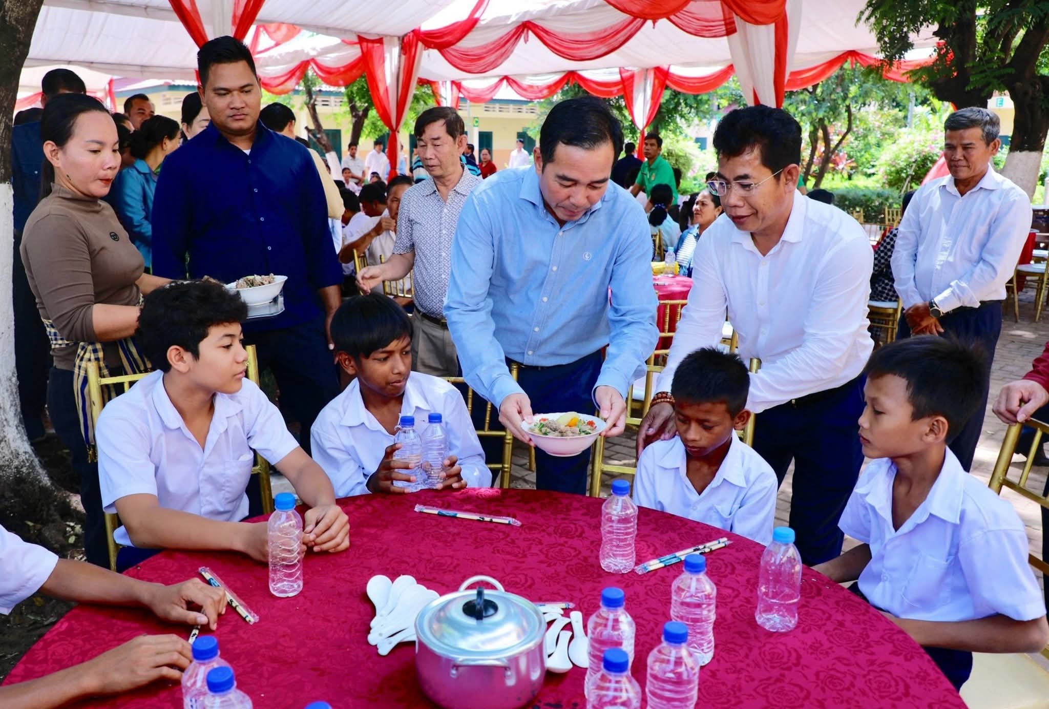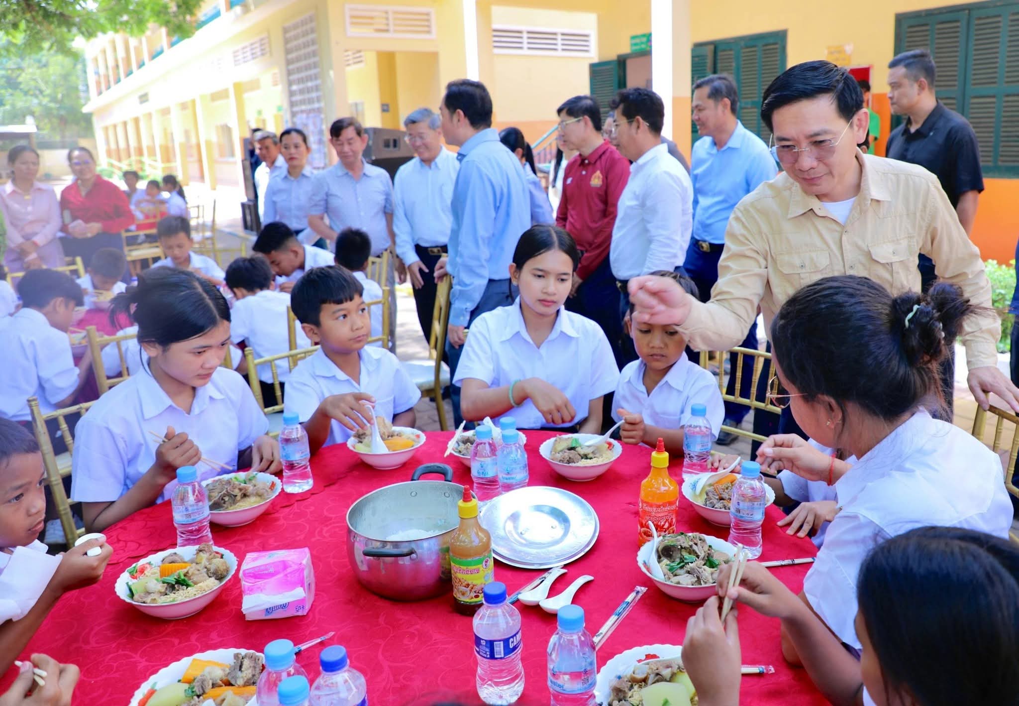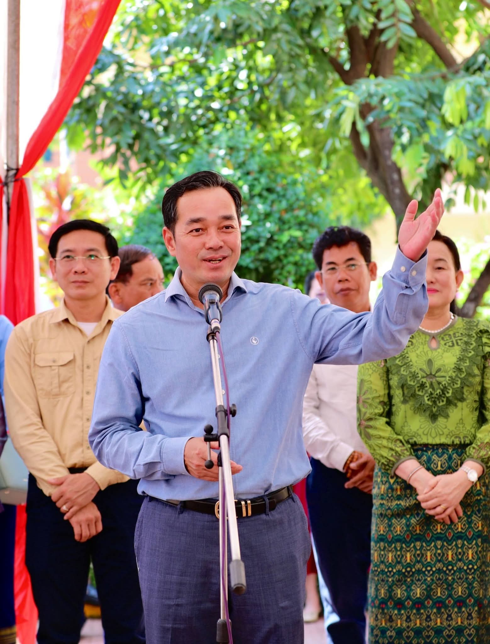 (កំពង់ចាម): អភិបាលនៃគណៈអភិបាលខេត្តកំពង់ចាម ឯកឧត្តម អ៊ុន ចាន់ដា បានលើកទឹកចិត្តដល់ សិស្សមានពិការភាព និងកុមារកំព្រា ឱ្យខិតខំជួយខ្លួនឯង ដោយពង្រឹងសមត្ថភាព និងការសិក្សា រៀនសូត្រ ថ្លែងបែបនេះក្នុងឱកាសជួបសំណេះសំណាល សួរសុខទុក្ខ និងពិសាអាហារសាមគ្គី ជាមួយកុមារពិការភ្នែក គថ្លង់ កំព្រា និងលោកគ្រូ អ្នកគ្រូ នៅវិទ្យាល័យអប់រំពិសេសកំពង់ចាម នា ព្រឹកថ្ងៃទី៨ ខែមិនា ឆ្នាំ២០២៦ ។