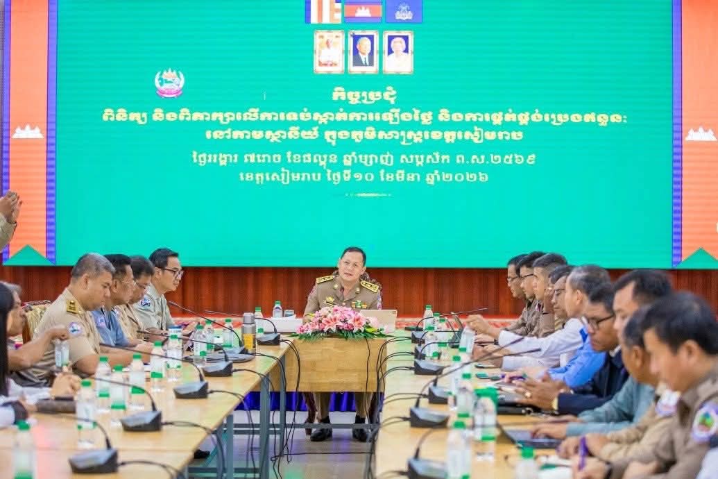 ខេត្តសៀមរាប: ថ្លែងក្នុងឱកាសដឹកនាំកិច្ចប្រជុំពិភាក្សាការងារទប់ស្កាត់ការឡើងថ្លៃ និងការផ្គត់ផ្គង់ប្រេងឥន្ធនៈនៅតាមស្ថានីយ៍ក្នុងខេត្តសៀមរាប នៅថ្ងៃទី១០ ខែមីនា ឆ្នាំ២០២៦ លោក ឌី រ៉ាដូ អភិបាលរងខេត្តសៀមរាប បានណែនាំដល់ម្ចាស់ស្ថានីយ និងដេប៉ូចែកចាយទាំងអស់ ត្រូវផ្គត់ផ្គង់ប្រេងទៅអតិថិជនឱ្យមានតម្លាភាព និងលក់តាមតម្លៃកំណត់របស់ក្រសួងពាណិជ្ជកម្ម ជាមួយការធានាគុណភាព បរិមាណ និងតម្លៃចំពោះអតិថិជន កុំកេងបន្លំទាំងតម្លៃ បរិមាណនិងគុណភាព ព្រោះការបន្លំទាំងនេះវានាំឱ្យប្រឈមទៅនឹងការពិន័យ និងឈានទៅដកហូតអាជីវកម្មតែម្ដង។