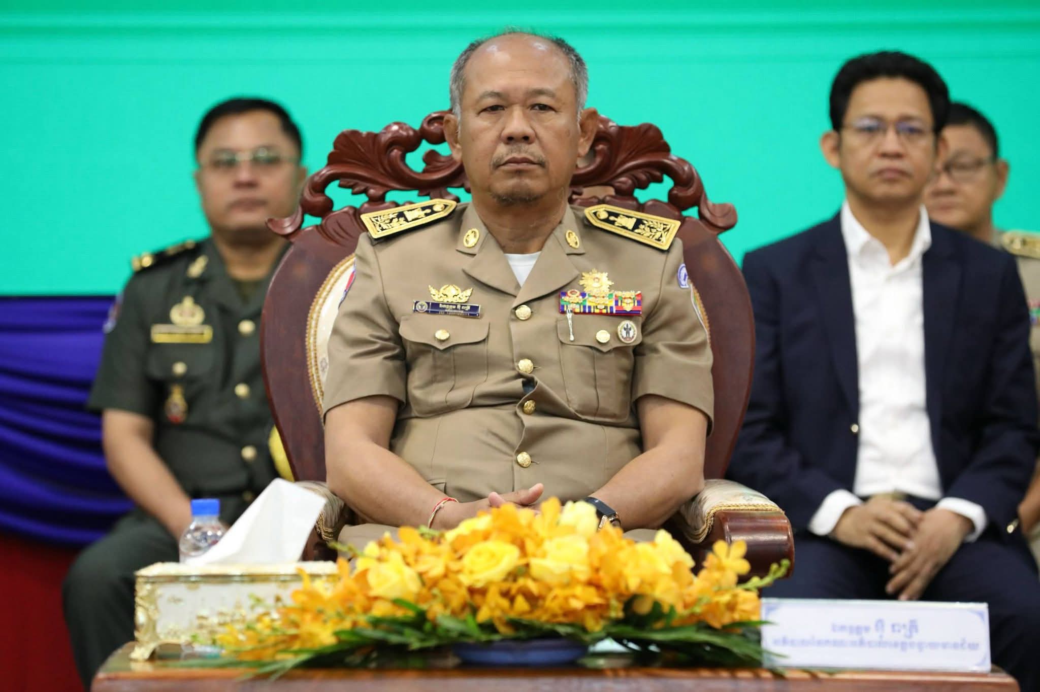 ពិធីប្រកាសចូលកាន់តំណែងនេះ បានធ្វើឡើងក្រោមអធិបតីភាព នាយឧត្តមសេនីយ៍ ស ថេត អគ្គស្នងការនគរបាលជាតិ តំណាងលោកអភិសន្ដិបណ្ឌិត ស សុខា ឧបនាយករដ្ឋមន្ដ្រី រដ្ឋមន្ដ្រីក្រសួងមហាផ្ទៃ, លោក ប្លែក វ៉ារី ប្រធានក្រុមប្រឹក្សាខេត្ត និងលោក អ៊ុំ រាត្រី អភិបាលខេត្តបន្ទាយមានជ័យ។