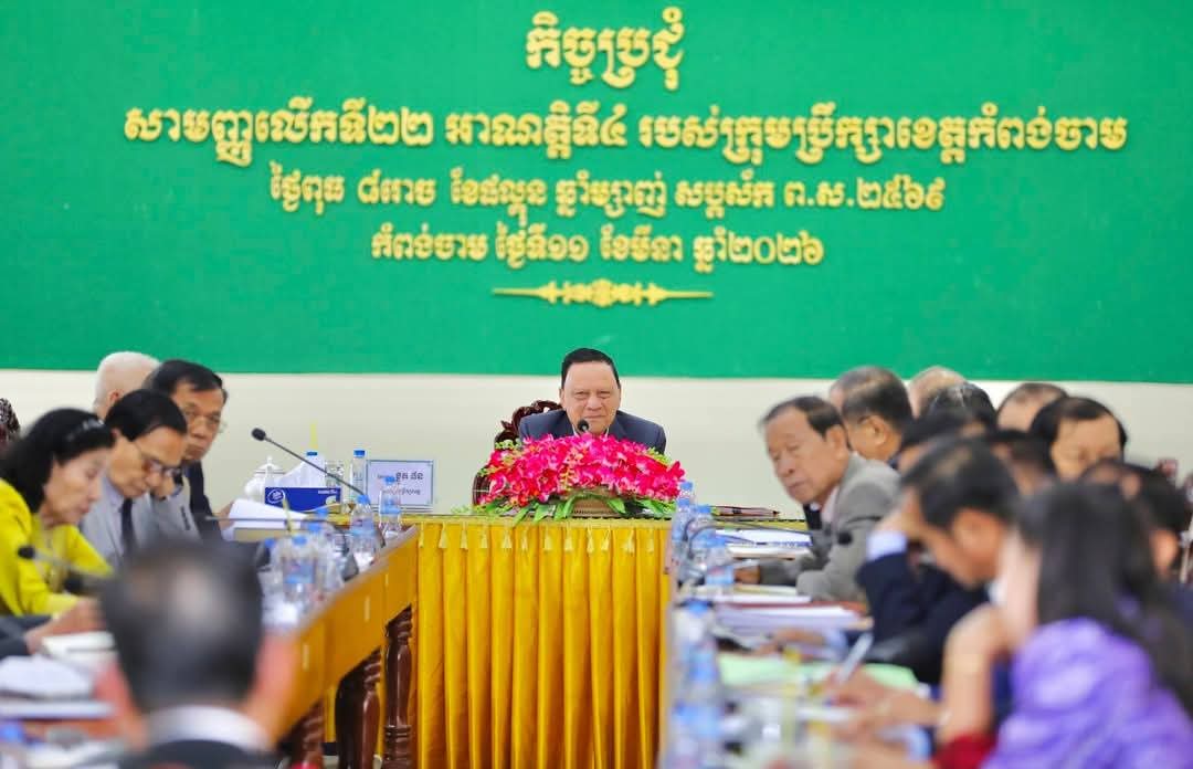 (កំពង់ចាម) : កិច្ចប្រជុំសាមញ្ញលេីកទី២២ អាណត្តិទី៤ របស់ក្រុមប្រឹក្សាខេត្កំពង់ចាម ក្រោមអធិបតីភាព ឯកឧត្តម ខ្លូត ផន ប្រធានក្រុមប្រឹក្សាខេត្ត និង ឯកឧត្តម អ៊ុន ចាន់ដា អភិបាលនៃគណៈអភិបាលខេត្តកំពង់ចាម។