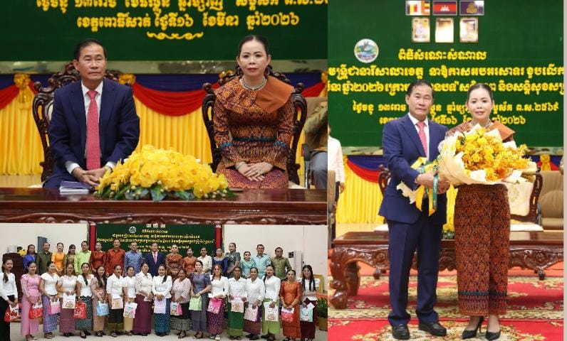 ខេត្តពោធិ៍សាត់: ឯកឧត្តម ខូយ រីដា អភិបាល នៃគណៈអភិបាលខេត្តពោធិ៍សាត់ និងលោកជំទាវ អាំង សុជាតា ខូយរីដា ប្រធានកិត្តិយស សាខាសមាគមនារីកម្ពុជា ដើម្បីសន្តិភាព និងអភិវឌ្ឍន៍ ខេត្តពោធិ៍សាត់ នារសៀលថ្ងៃទី១៦ ខែមីនា ឆ្នាំ២០២៦នេះ បានអញ្ជើញជាគណៈអធិបតី ក្នុងពិធីជួបសំណេះសំណាលជាមួយមន្ត្រីជានារីសាលាខេត្ត នាឱកាសអបអរសាទរខួបលើកទី១១៥ ទិវាអន្តរជាតិនារី ៨មីនា ឆ្នាំ២០២៦ ក្រោមប្រធានបទ «សន្តិភាព និងសន្តិសុខសម្រាប់ស្ត្រី និងគ្រួសារ» នៅសាលប្រជុំទេពឧកញ៉ាឃ្លាំងមឿង (សាលប្រជុំធំថ្មីសាលាខេត្ត)៕