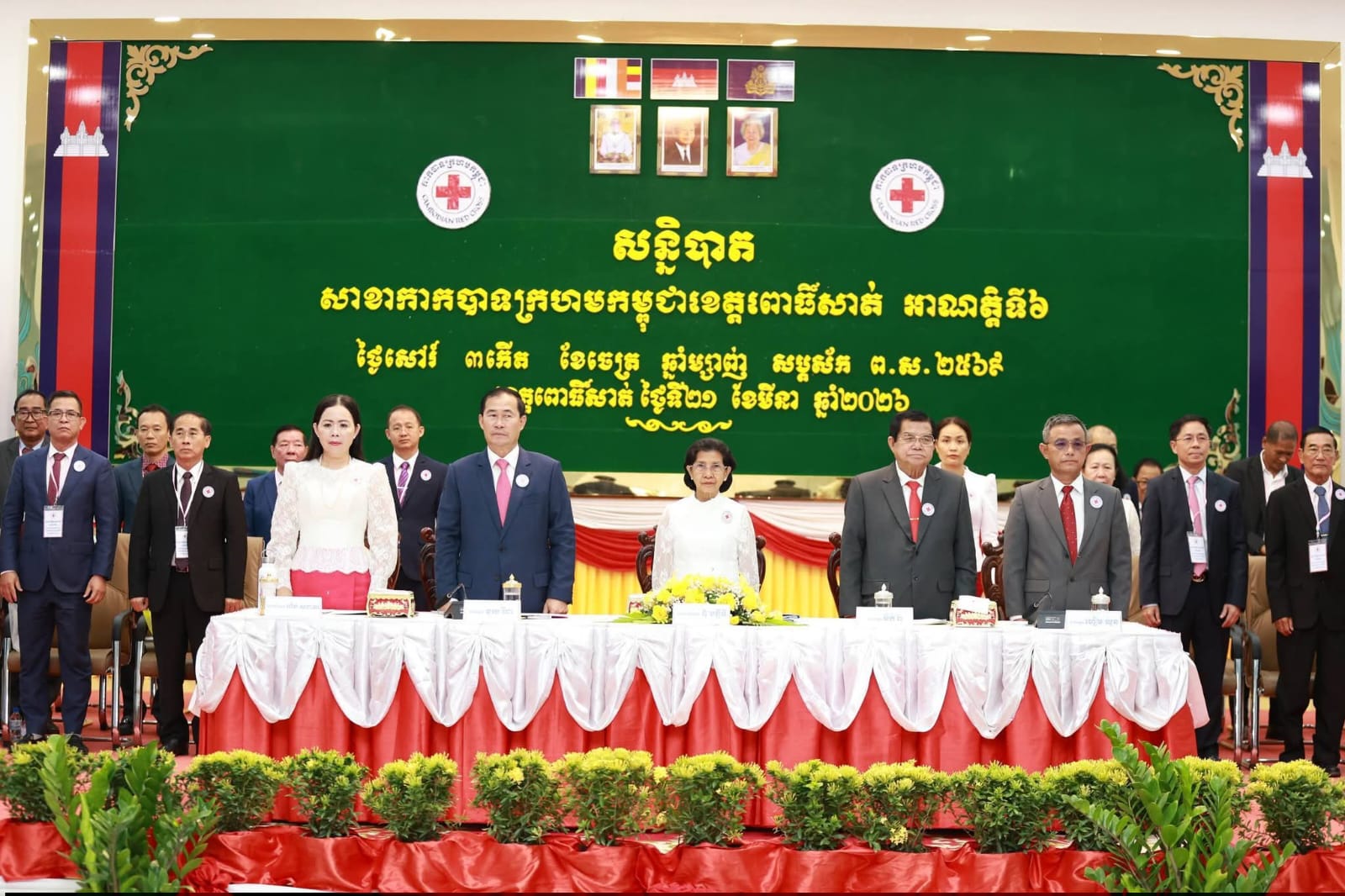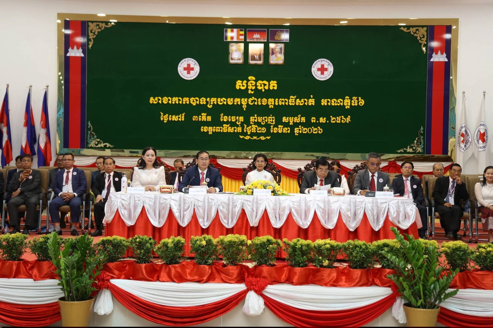 ខេត្តពោធិ៍សាត់: ដើម្បីបង្ហាញពីភាពត្រឹមត្រូវស្របច្បាប់ នៃសមាគមជាតិ និងយោងតាមលក្ខន្តិកៈកាកបាទក្រហមកម្ពុជា នាព្រឹកថ្ងៃទី២១ ខែមីនា ឆ្នាំ២០២៦នេះ សាខាកាកបាទក្រហមកម្ពុជាខេត្តពោធិ៍សាត់ បានរៀបចំសន្និបាតអាណត្តិទី៦ នៅសាលប្រជុំទេពឧកញ៉ាឃ្លាំងមឿង សាលាខេត្តពោធិ៍សាត់ ក្រោមអធិបតីភាពដ៏ខ្ពង់ខ្ពស់របស់ លោកជំទាវ ពុំ ចន្ទីនី អគ្គលេខាធិការកាកបាទក្រហមកម្ពុជា តំណាងដ៏ខ្ពង់ខ្ពស់ សម្តេចកិត្តិព្រឹទ្ធបណ្ឌិត ប៊ុន រ៉ានី ហ៊ុនសែន ប្រធានកាកបាទក្រហមកម្ពុជា។ អង្គសន្និបាតបានដំណើរការទៅយ៉ាងរលូន ដោយមានការចូលរួមពីគណៈកិត្តិយសសាខា គណៈកម្មាធិការសាខាអាណត្តិទី៥ និងសមាជិក សមាជិកាពេញសិទ្ធិចំនួន ៥៣រូប។