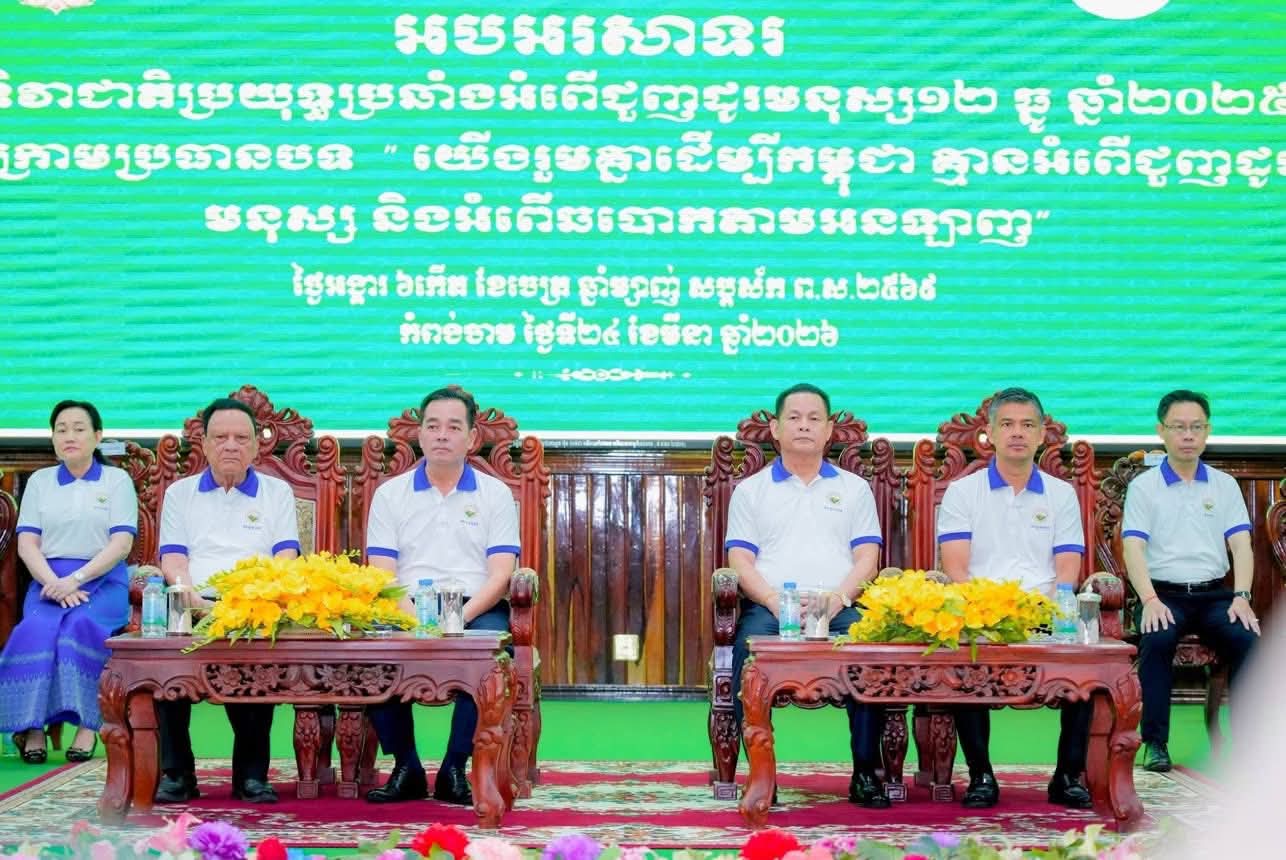 (កំពង់ចាម) អភិបាលនៃគណៈអភិបាលខេត្តកំពង់ចាម ឯកឧត្តម អ៊ុន ចាន់ដា បានស្នេីឱ្យពង្រឹងការងារអនុវត្តច្បាប់ គោលនយោបាយ គោលការណ៍ណែនាំ វិធានការ និងផែនការដែលពាក់ព័ន្ធ នឹងអំពើជួញដូរមនុស្សឱ្យទទួលបានប្រសិទ្ធភាព និងប្រសិទ្ធផលខ្ពស់ ។ ថ្លែងបែបនេះក្នុងឱកាសប្រារព្ធទិវាជាតិប្រយុទ្ធប្រឆាំងអំពើជួញដូរមនុស្ស នៅសាលាខេត្តកំពង់ចាម នាព្រឹកថ្ងៃទី២៤ ខែមិនា ឆ្នាំ២០២៦។