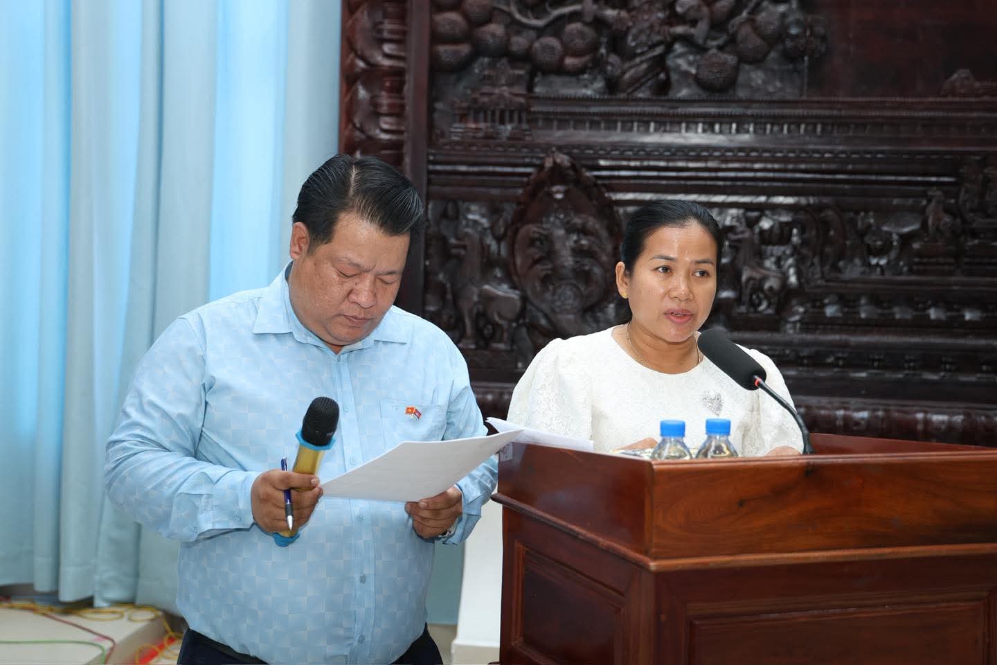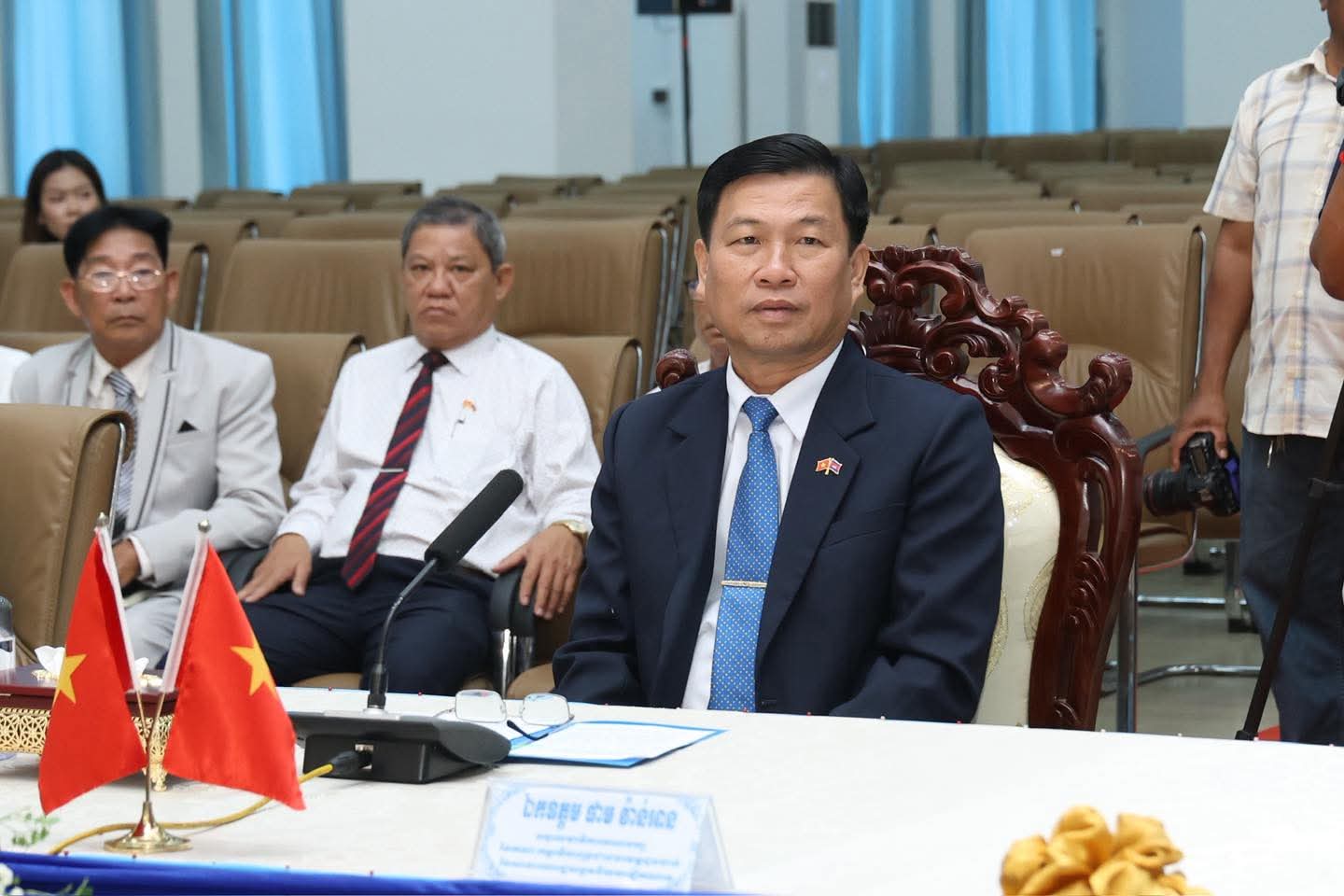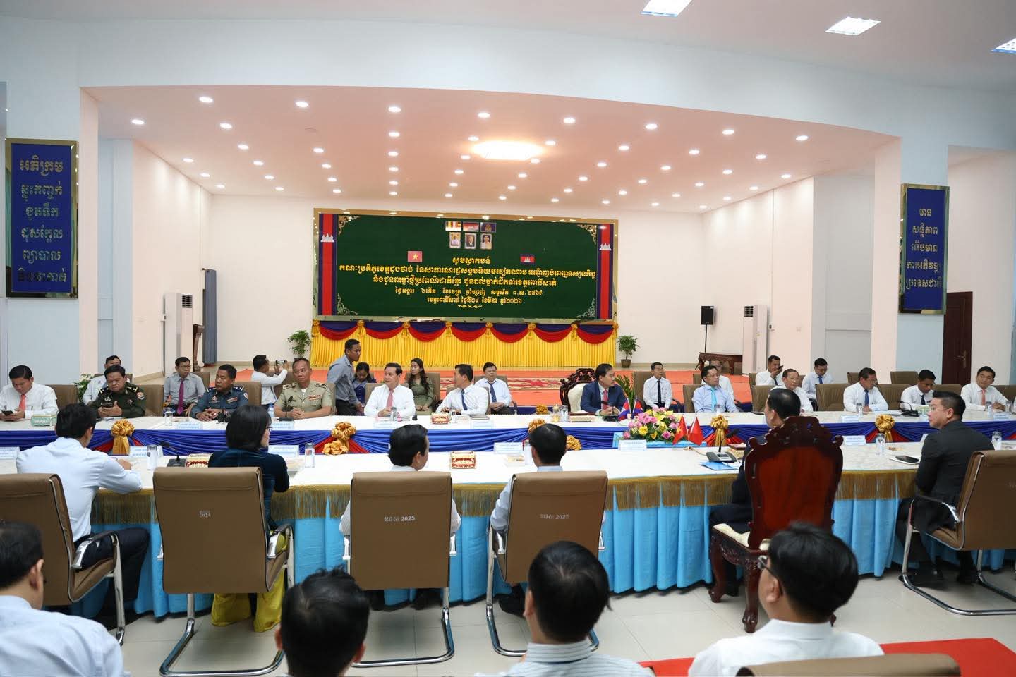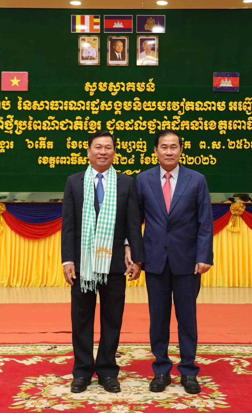 (ពោធិ៍សាត់) : ឯកឧត្តម ខូយ រីដា អភិបាលនៃគណៈអភិបាលខេត្ត បានអញ្ជើញទទួលជួបសម្ដែងការគួរសម ជាមួយឯកឧត្តម ផាម វ៉ាន់អាន អនុលេខាបក្ស នៃគណៈកម្មាធិការប្រជាជនខេត្តដុងថាប់ នៃសាធារណរដ្ឋសង្គមនិយមវៀតណាម ក្នុងឱកាសបំពេញទស្សនកិច្ច និងជូនពរឆ្នាំថ្មីប្រពៃណីជាតិខ្មែរ ឆ្នាំមមី អដ្ឋស័ក ពស.២៥៧០ គស.២០២៦ ជូនដល់ថ្នាក់ដឹកនាំ និងប្រជាជនខេត្តពោធិ៍សាត់ នាព្រឹកថ្ងៃទី២៤ ខែមីនា ឆ្នាំ២០២៦។