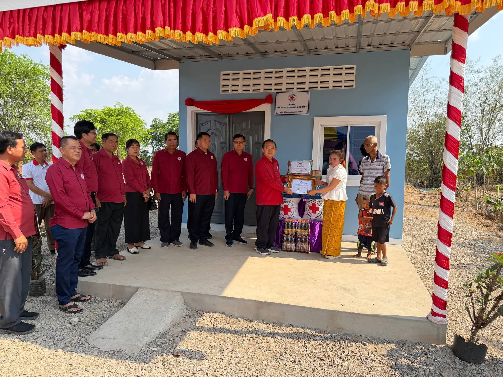ខេត្តបាត់ដំបង: នៅរសៀលថ្ងៃទី២៥ ខែមីនា ឆ្នាំ២០២៦នេះ ឯកឧត្តម សុខ លូ អភិបាលខេត្តបាត់ដំបង និងជាប្រធានគណៈកម្មាធិការសាខាកាកបាទក្រហមកម្ពុជាខេត្ត អមដំណើរដោយ លោក លោកស្រី អនុប្រធាន សមាជិក សមាជិកាគណៈកម្មាធិការសាខា អនុសាខាស្រុកបាណន់ ក្រុមកាកបាទក្រហមសង្កាត់ អ្នកស្មគ្រ័ចិត្ត បានអញ្ជើញចុះប្រគល់ផ្ទះ មនុស្សធម៌ ១ខ្នងលេខរៀងទី ២៤ ជាអំណោយរបស់ សាខាកាកបាទក្រហមកម្ពុជាខេត្ត ជូនដល់ អ្នកស្រី តាយ សារី អាយុ៣៧ឆ្នាំ ជាភរិយា និងកូនរបស់លោកពលបាលឯក ញ៉ែម ភារិន ជាវីរៈកងទ័ពដែលបានពលីជីវិតលើសមរភូមិ ព្រមទាំងសំណេះសំណាល និងផ្តល់អំណោយមនុស្សធម៌ដល់ប្រជាពលរដ្ឋងាយរងគ្រោះ មានចាច់ជរា ជនមានពិការភាព និងមានជីវភាពក្រីក្រ ចំនួន៣២គ្រួសារ ស្ថិតនៅភូមិថ្មី ឃុំកន្ទឺ១ ស្រុកបាណន់ ខេត្តបាត់ដំបង។