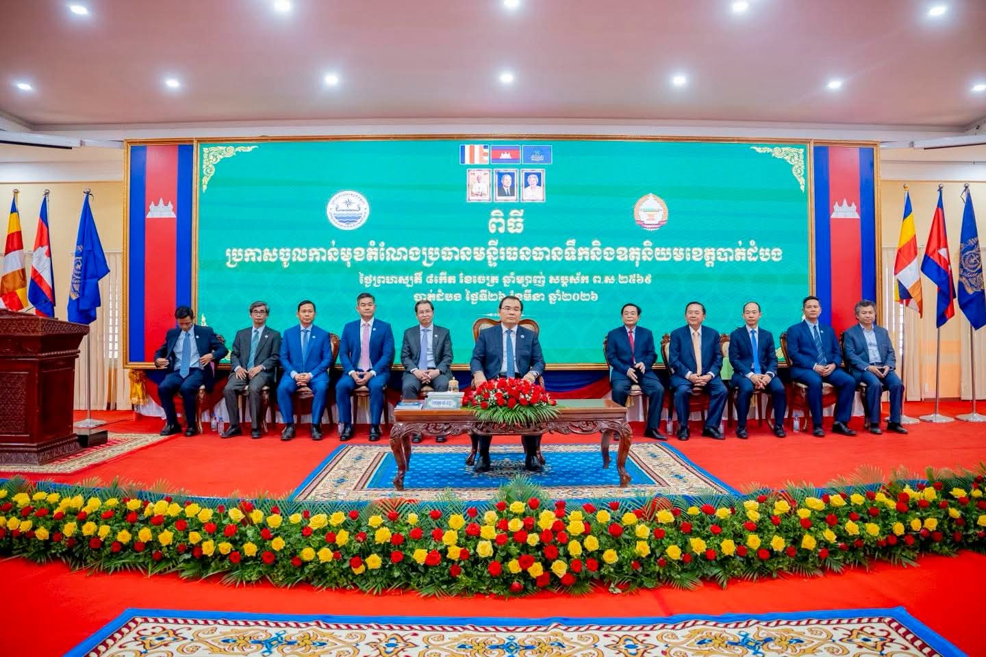 ខេត្តបាត់ដំបង: នៅថ្ងៃទី២៦ ខែមីនា ឆ្នាំ២០២៦ នេះ ឯកឧត្តម អ៊ុយ រី ប្រធានក្រុមប្រឹក្សាខេត្ត និងឯកឧត្តម សុខ លូ អភិបាលនៃគណៈអភិបាលខេត្តបាត់ដំបង បានអញ្ជើញចូលរួមក្នុងពិធីប្រកាសចូលកាន់មុខតំណែងប្រធានមន្ទីរធនធានទឹក និងឧតុនិយមខេត្តបាត់ដំបង ក្រោមអធិបតីឯកឧត្តម ថោ ជេដ្ឋា រដ្ឋមន្រ្តីក្រសួងធនធានទឹក និងឧតុនិយម ដែលពិធីនេះធ្វើឡើងនៅសាលប្រជុំសាលាខេត្តបាត់ដំបង។