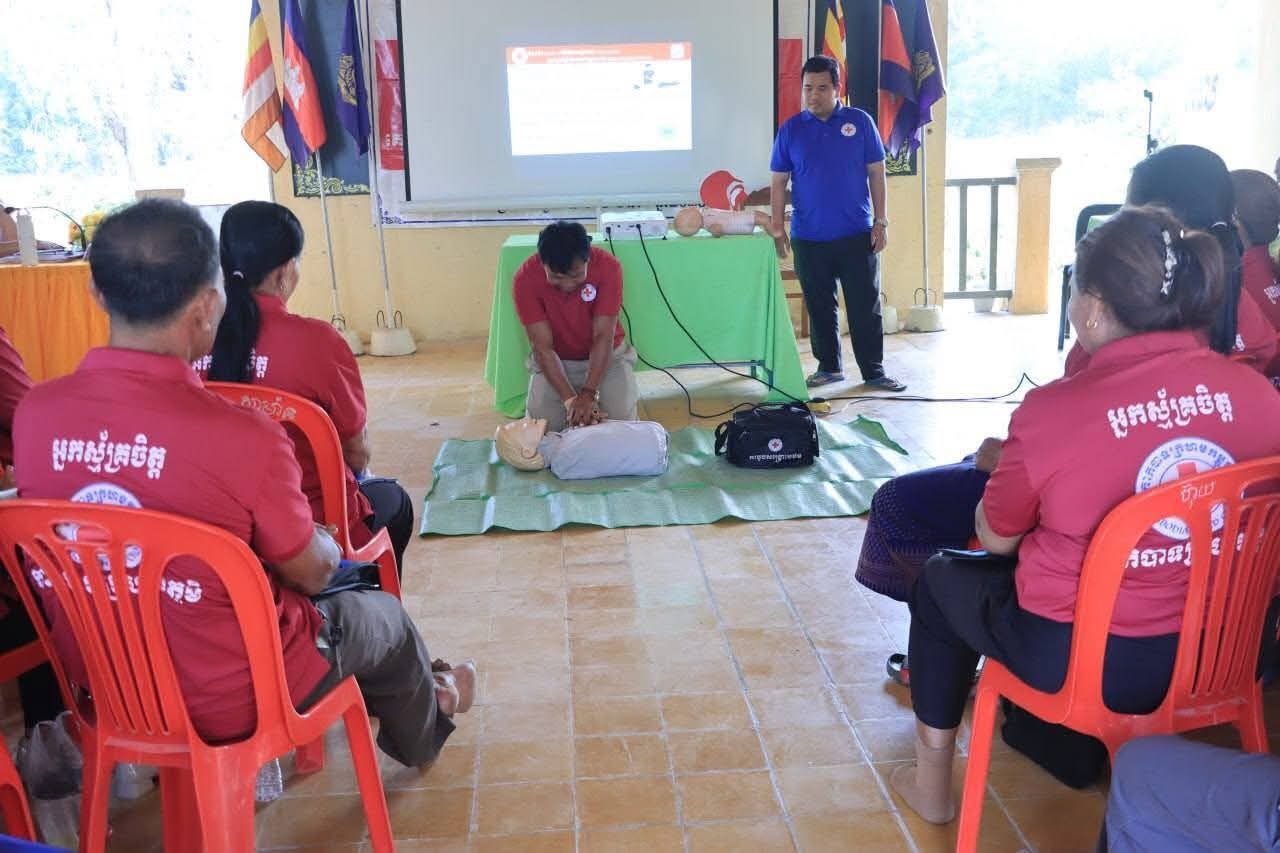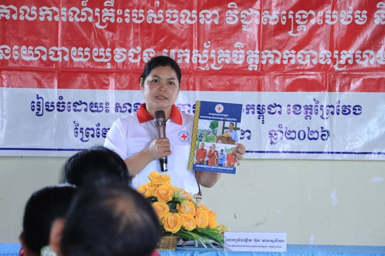 ខេត្តព្រៃវែង: ដោយមានការយកចិត្តទុកដាក់ខ្ពស់ពីសំណាក់ ឯកឧត្តម សួន សុម៉ាលីន ប្រធានគណៈកម្មាធិការសាខា កាលពីថ្ងៃទី២៧ ខែមីនា ឆ្នាំ២០២៦ សាខាកាកបាទក្រហមកម្ពុជា ខេត្តព្រៃវែង បានរៀបចំបើកវគ្គបណ្តុះបណ្តាល “មូលដ្ឋានវិជ្ជាសង្គ្រោះបឋម និងគោលនយោបាយអ្នកស្ម័គ្រចិត្ត” ចំនួន ០២វគ្គ ជូនដល់ក្រុមកាកបាទក្រហមឃុំ និងអ្នកស្ម័គ្រចិត្តភូមិ ក្នុងស្រុកកំពង់ត្របែក។