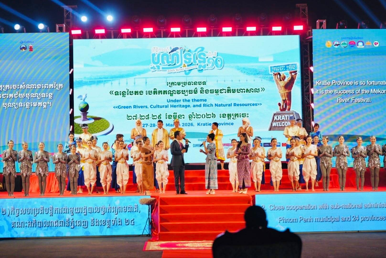 (ខេត្តក្រចេះ) នារសៀលថ្ងៃសៅរ៍ ទី២៨ ខែមីនា ឆ្នំា២០២៦ ឯកឧត្តម អ៊ុន ចាន់ដា អភិបាលនៃគណៈអភិបាលខេត្តកំពង់ចាម បានអញ្ជើញចូលរួមពិធីបើកព្រឹត្តិការណ៍បុណ្យទន្លេលើកទី១០ ឆ្នាំ២០២៦ នៅខេត្តក្រចេះ ក្រោមប្រធានបទ «ទន្លេបៃតង បេតិកភណ្ឌវប្បធម៌ និងធម្មជាតិមហាសាល» ក្រោមអធិបតីភាពដ៏ខ្ពង់ខ្ពស់ឯកឧត្តមសន្តិបណ្ឌិត នេត សាវឿន ឧបនាយករដ្ឋមន្ត្រី និងជាប្រធានអាជ្ញាធរជាតិប្រយុទ្ធប្រឆាំងគ្រឿងញៀន តំណាងដ៏ខ្ពង់ខ្ពស់សម្តេចមហាបវរធិបតី ហ៊ុន ម៉ាណែត នាយករដ្ឋមន្ត្រី នៃព្រះរាជាណាចក្រកម្ពុជា ស្ថិតនៅក្រុងក្រចេះ ខេត្តក្រចេះ។