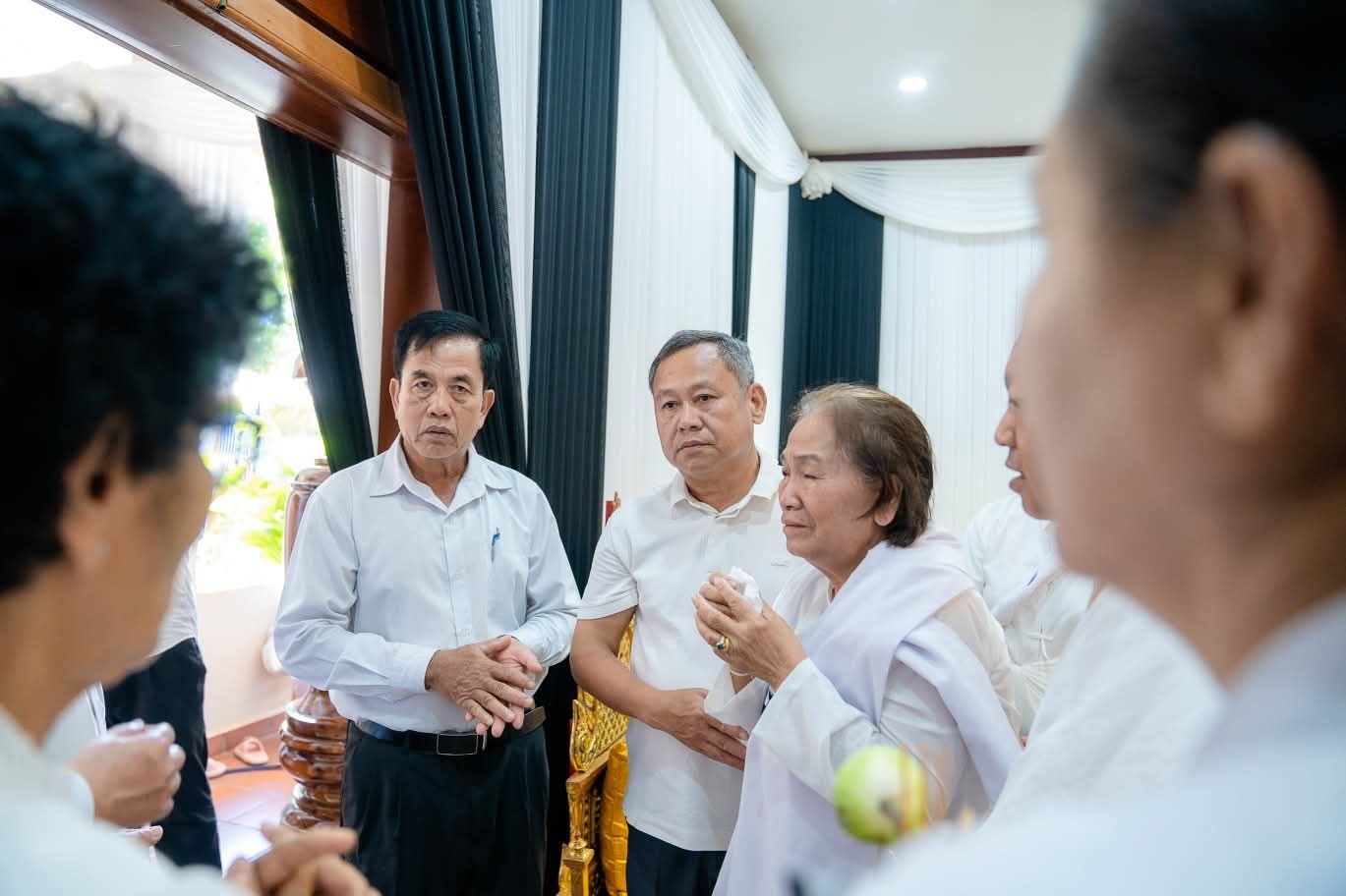 ក្នុងឱកាសដ៏សែនក្ដុកក្ដួលនោះ ថ្នាក់ដឹកនាំខេត្ត និងប្រតិភូអមដំណើរ បាននាំយកសាររំលែកមរណៈទុក្ខ ជូនដល់ក្រុមគ្រួសារនៃសព ព្រមទាំងអុជធូបឧទ្ទិសកុសលផលបុណ្យ ដល់វិញ្ញាណក្ខន្ធសព ឯកឧត្តម សំ ហ៊ាង ទីប្រឹក្សារដ្ឋសភា សូមឱ្យបានទៅកាន់សុគតិភពកុំបីឃ្លៀងឃ្លាតឡើយ។ ជាមួយគ្នានេះ ថ្នាក់ដឹកនាំក៏បាននាំនូវសេចក្ដីសោកស្ដាយ មួយក្រុមគ្រួសារសព ចំពោះការបាត់បង់ស្វាមី ឪពុក និងជីដូនជីតា ជាទីស្រឡាញ់ ប្រកបដោយព្រហ្មវិហារធម៌។