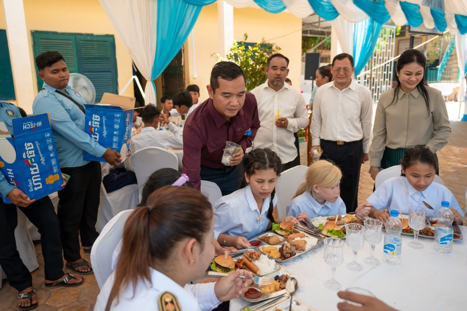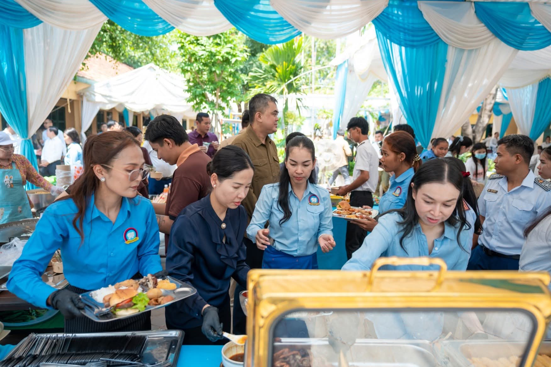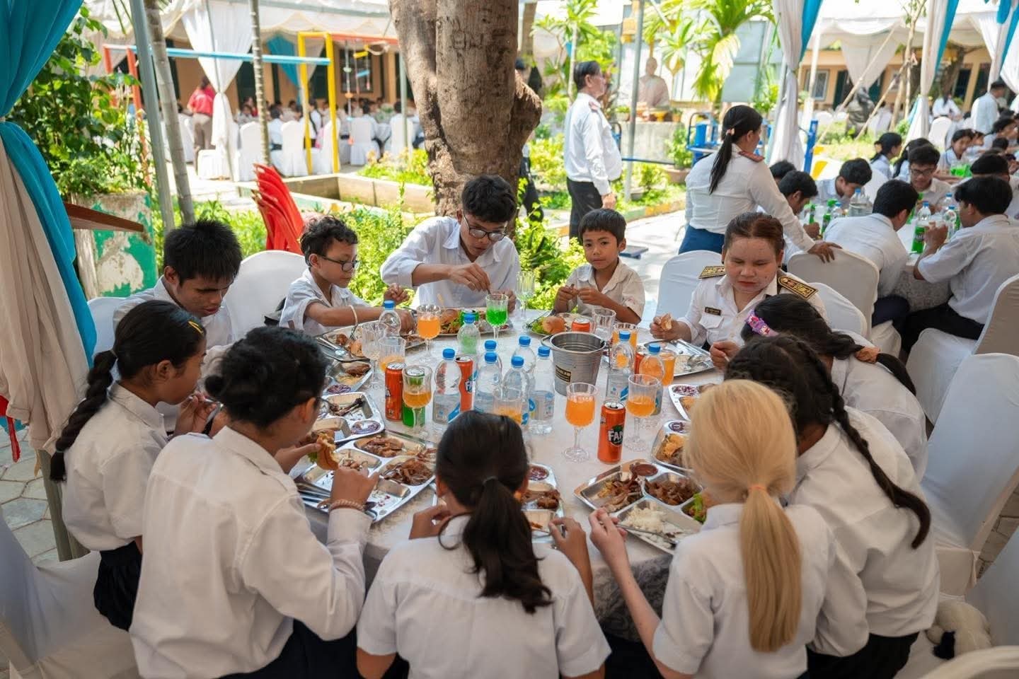 ក្នុងឱកាសនោះក៏មានរៀបចំ ជួបជុំពិសារអាហារថ្ងៃត្រង់ជូនដល់ក្មួយៗពិការ កុមាកំព្រា ដោយឯកឧត្តម លោកជំទាវ អស់លោក លោកស្រី បានធ្វើការបញ្ចុកអាហារដល់ក្មួយៗកុមារគថ្លង់ និងពិការភ្នែក ក្នុងភាពទឹកចិត្ត ជាម្តាយឳពុករបស់ក្មួយៗ ប្រកបដោយភាពស្និតស្នាល ក្នុងការអាណិតអាសូរដល់ក្មួយៗកុមារពិការបំផុត ៕